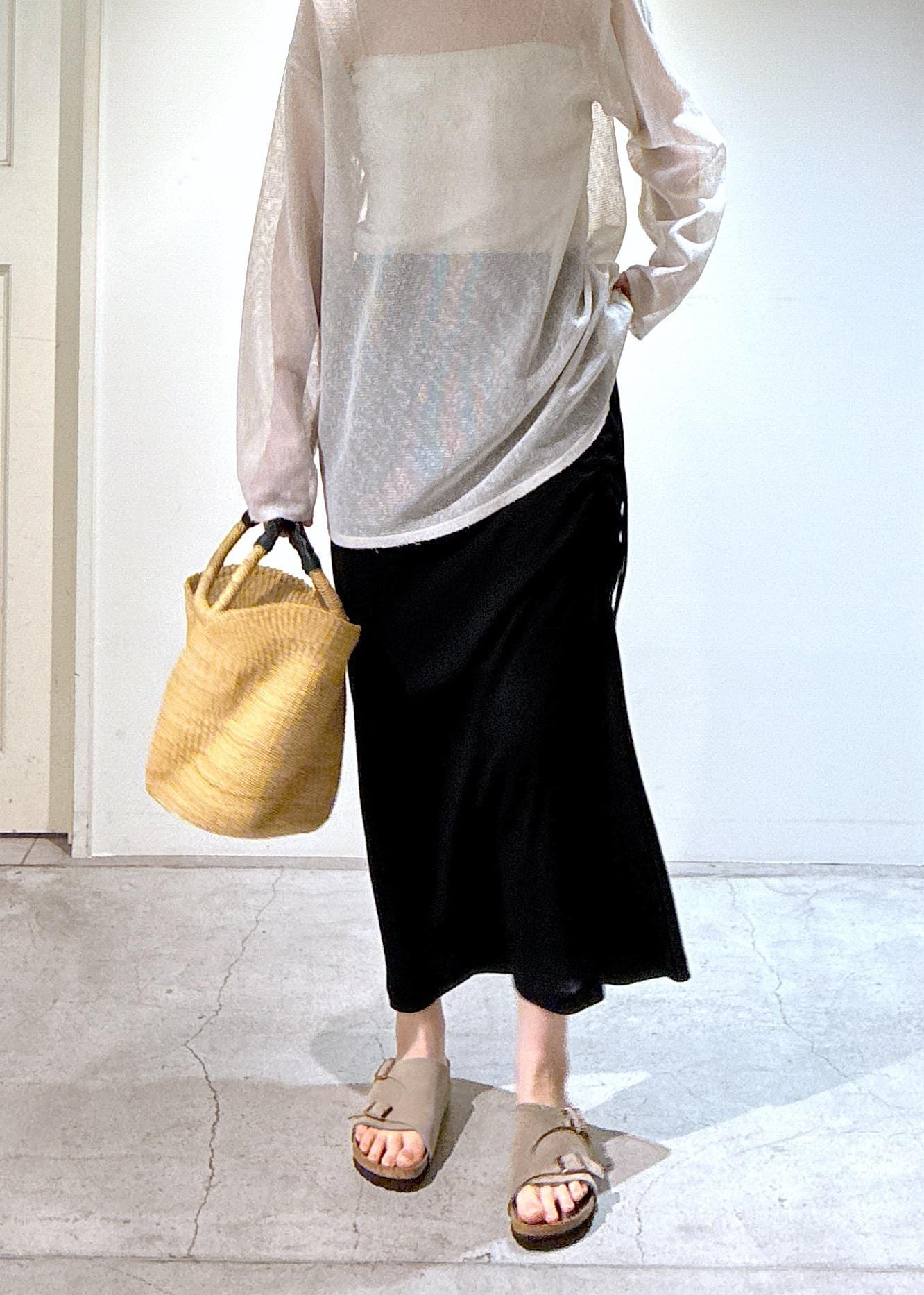 SALON adam et ropénu=layerアシンメトリーシャーリングスカートブラック / F¥9,900レビュー紐を縛るとアシンメトリーになるデザインスカート。