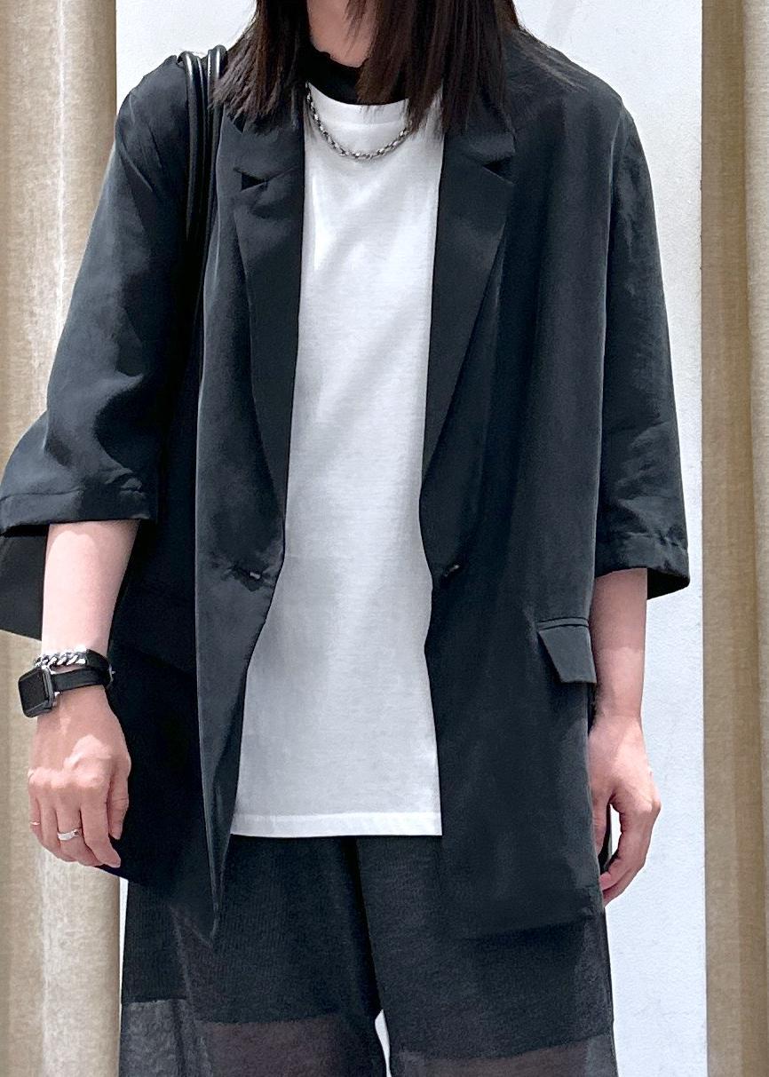 SALON adam et ropé[25SS]GENTLE SILK ハーフスリーブジャケット【セットアップ対応・洗える】ブラック / F¥38,610レビュー袖の長さは肘より下の長さで七分袖ぐらい。