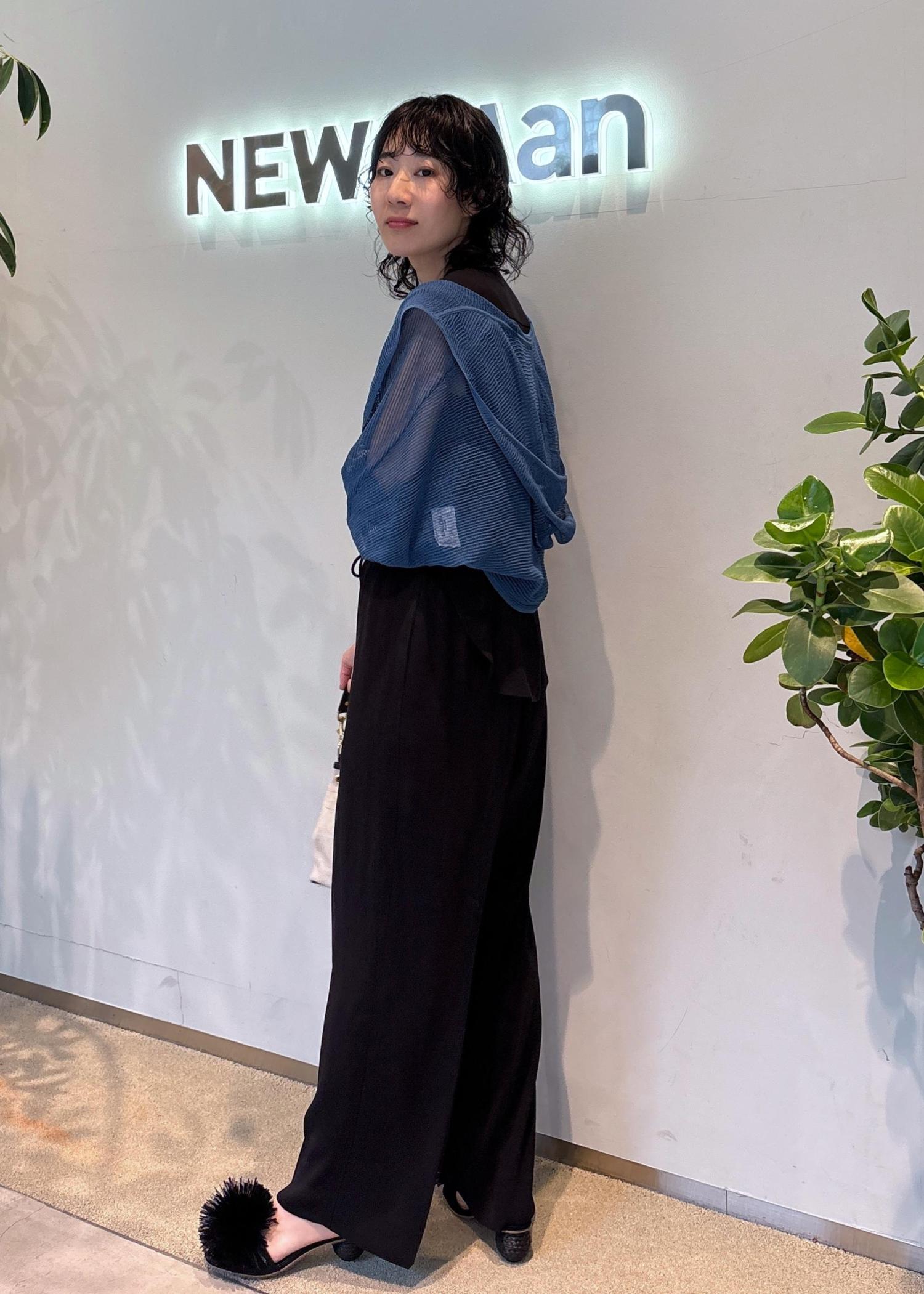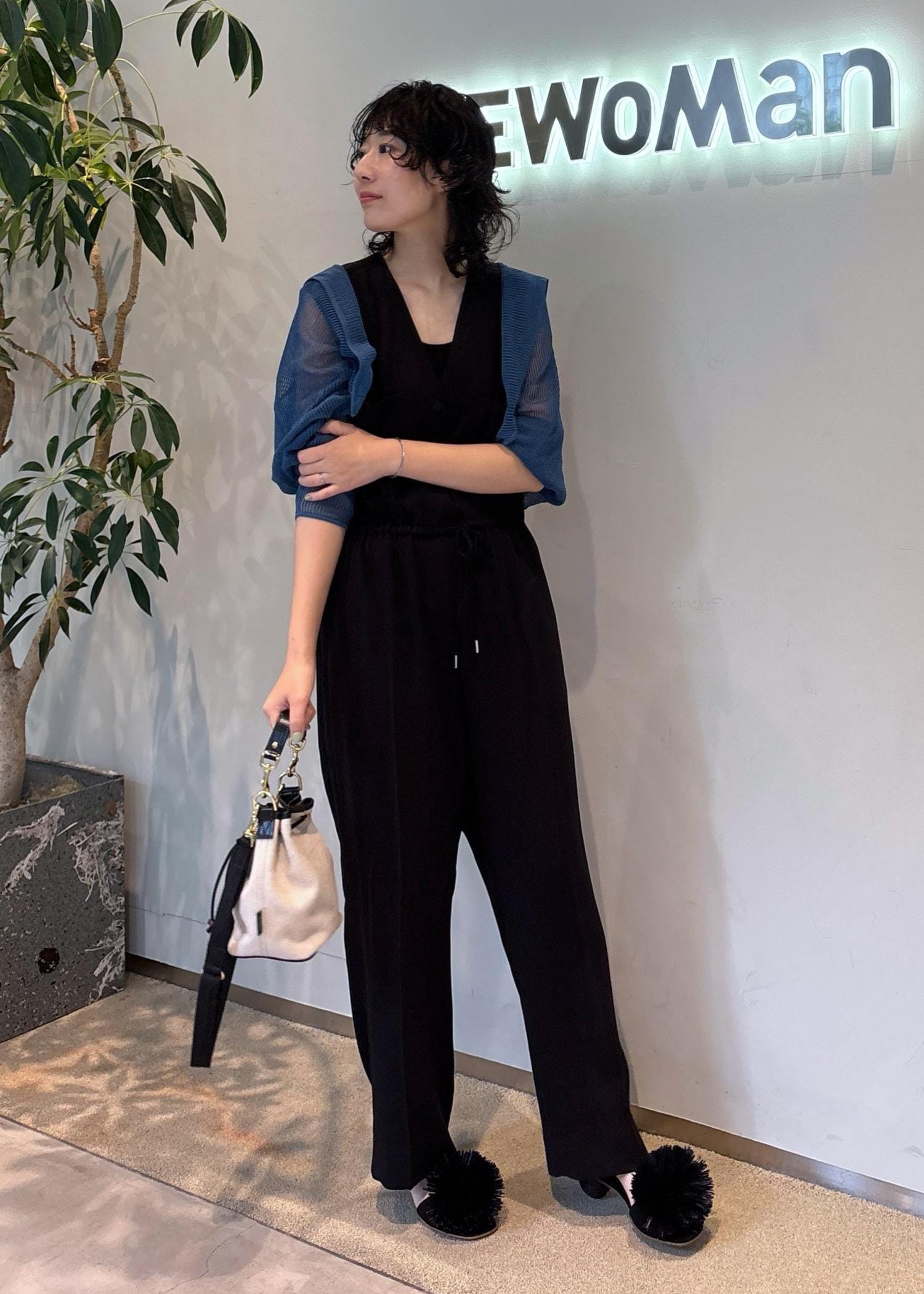 大人な雰囲気のオールインワンにフード付きメッシュカーディガンのコーディネート。フードは甘くなりすぎず抜け感のあるサイジングと丈感です。シンプルなコーディネートなので足元にヒールやインパクトのあるサンダル合わせなどが◎!