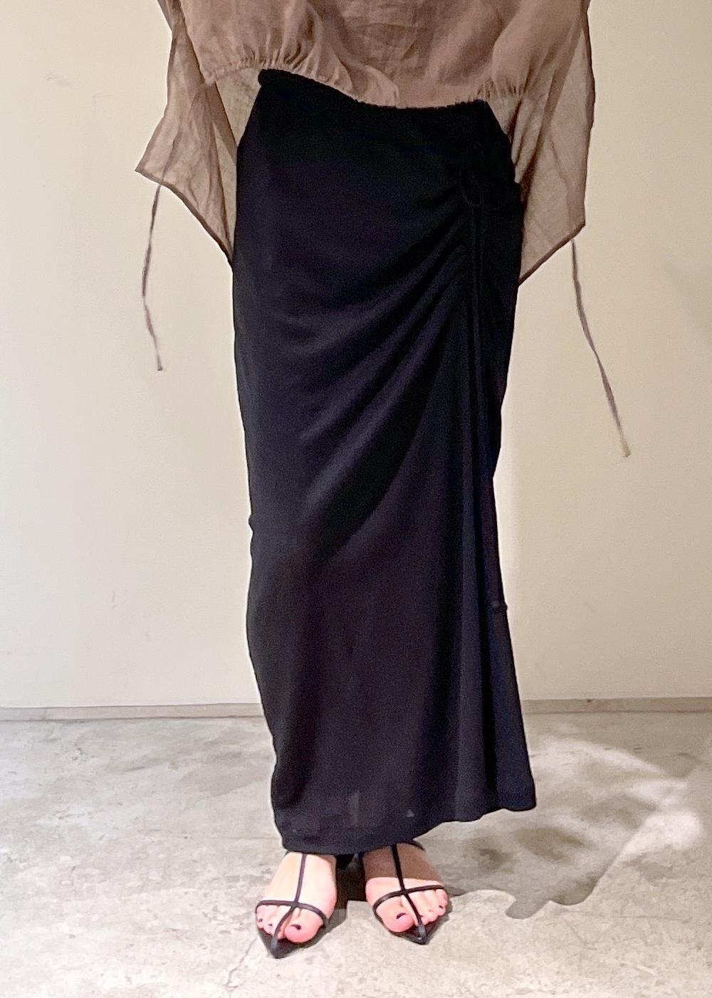 さらっとした肌触りの良い着心地。左側のギャザーを寄せてシルエットの変化も楽しめます◎シアー素材ですが、ヒップ周りは二重で透けません。 -