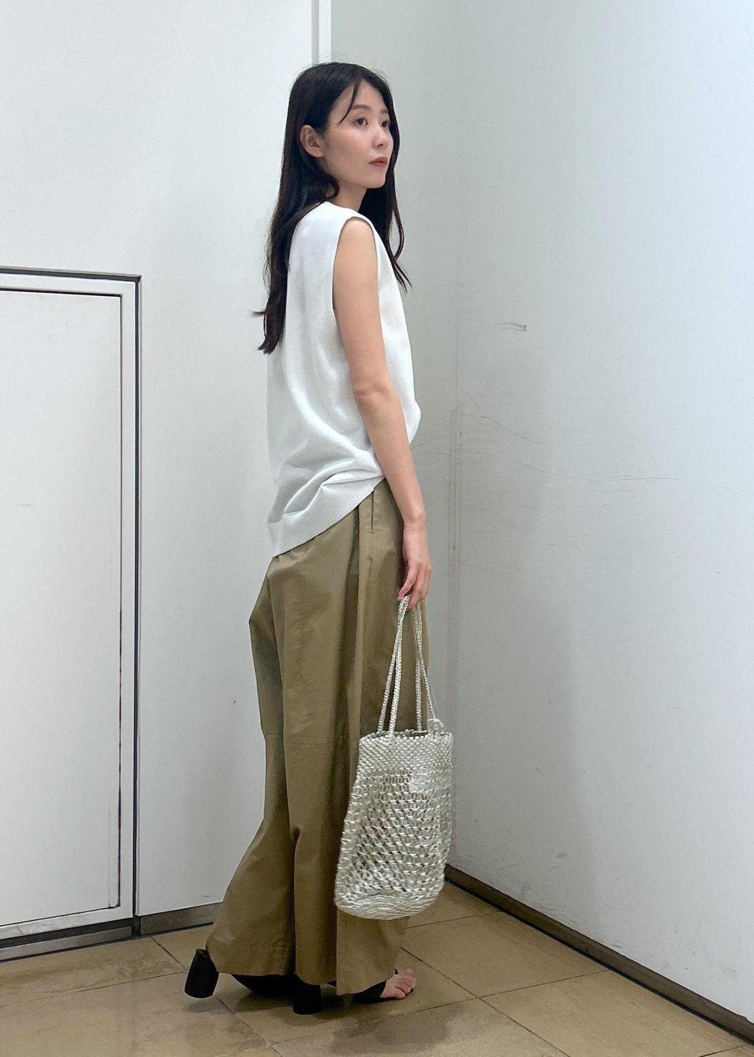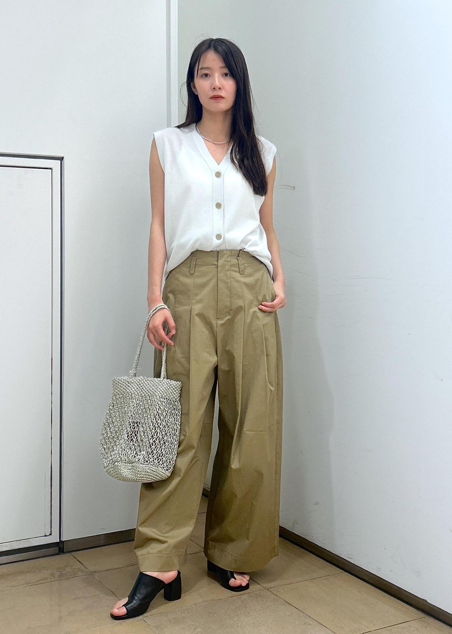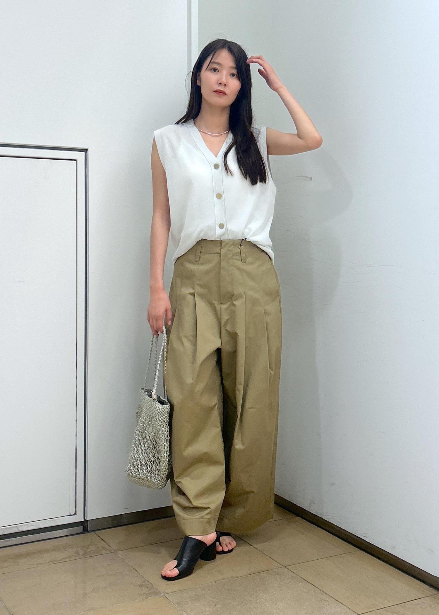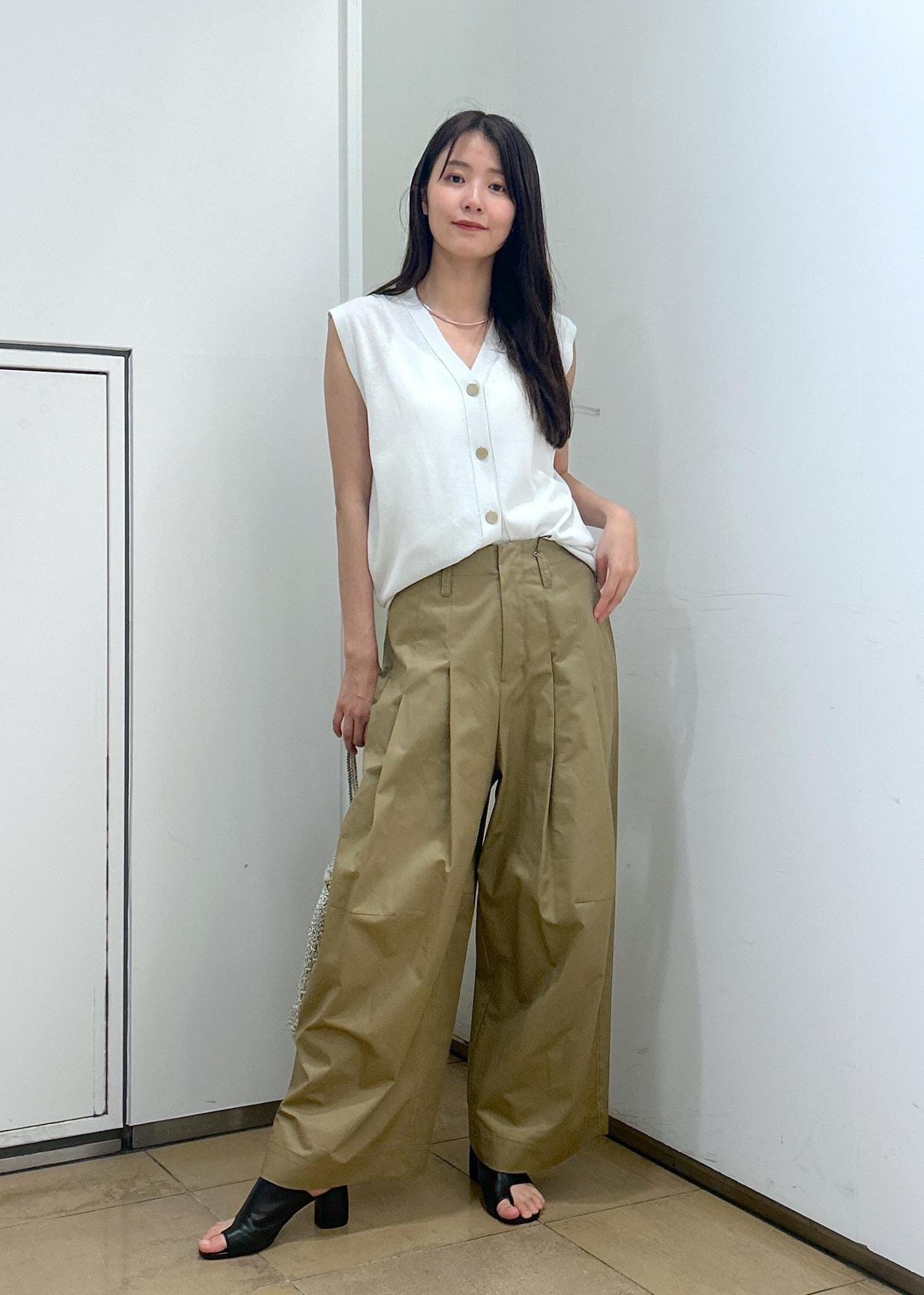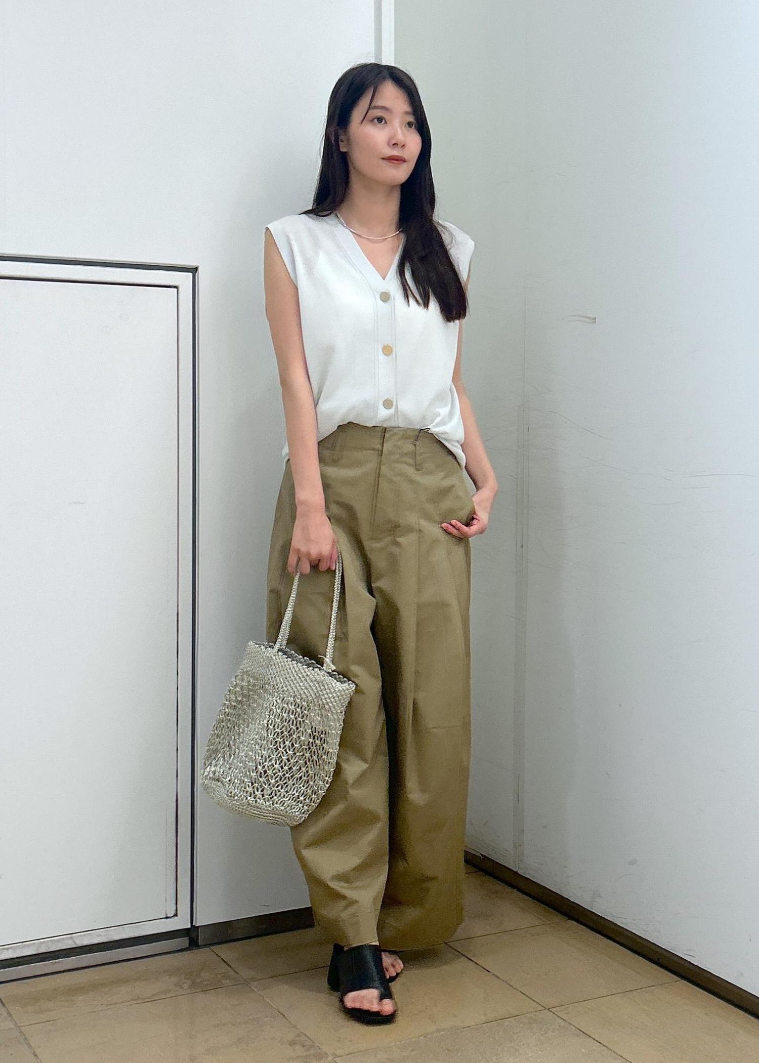 深すぎないVネックでデコルテをすっきりみせてくれます。