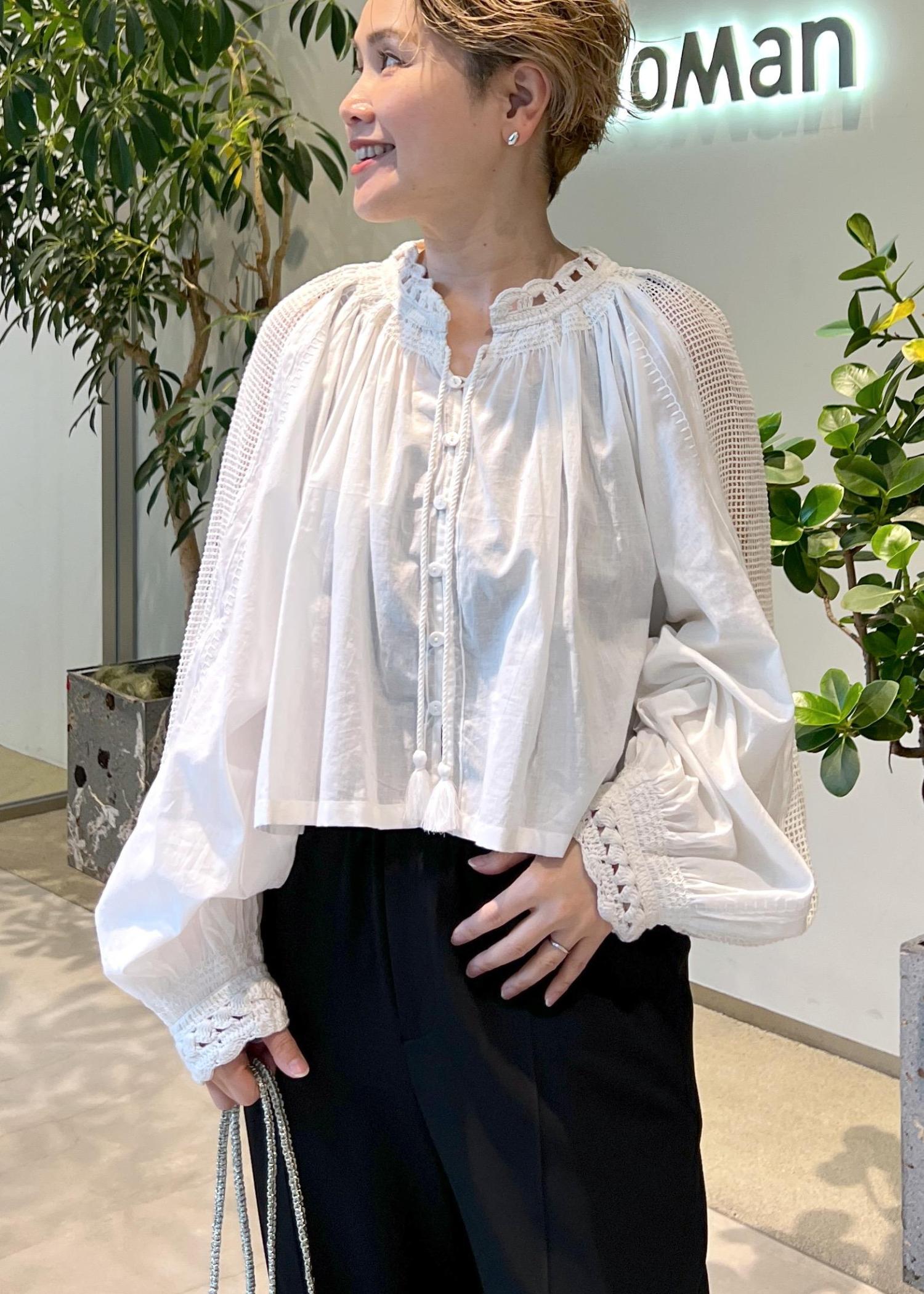【WEB限定】レースアクセントボリュームスリーブブラウス