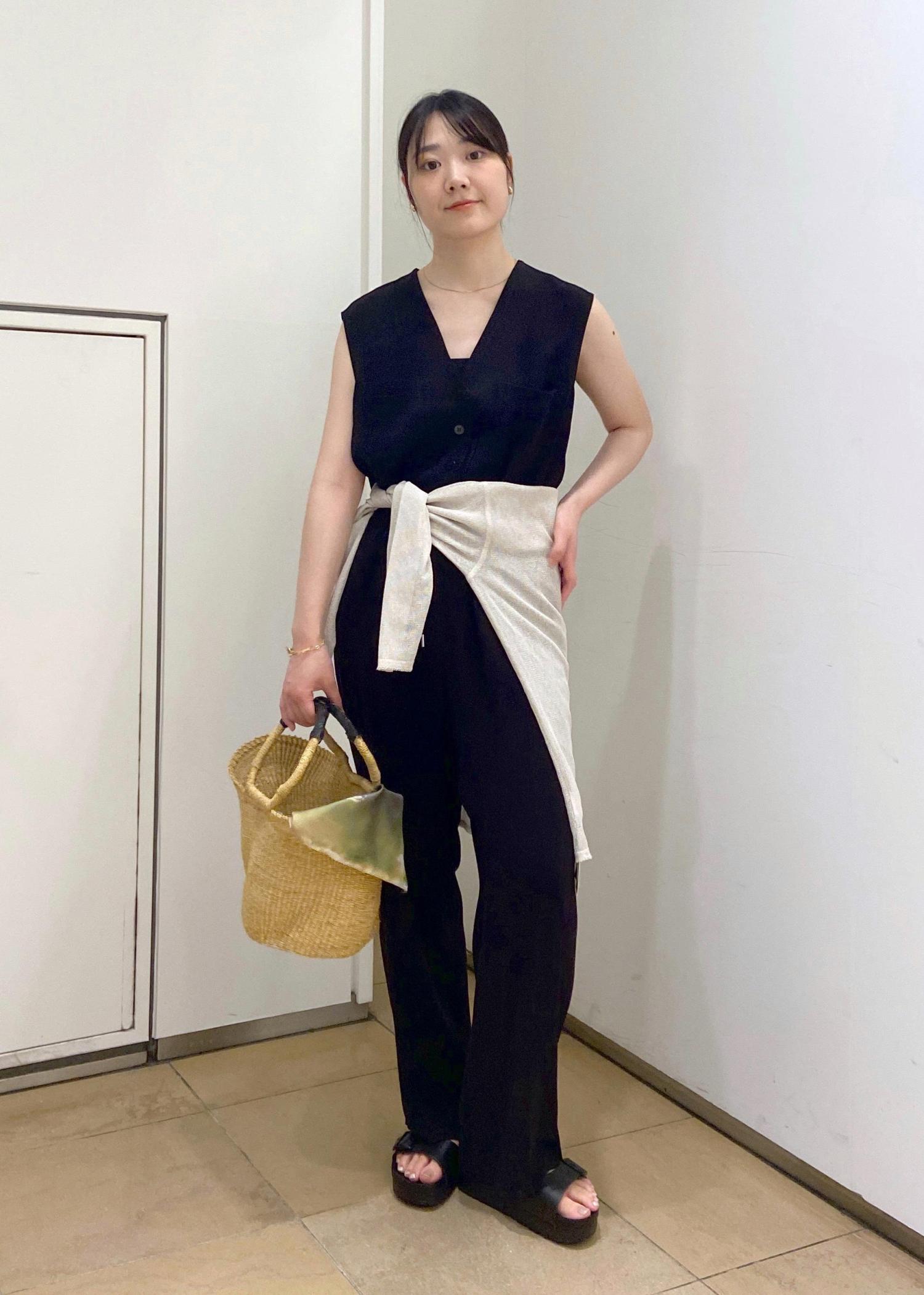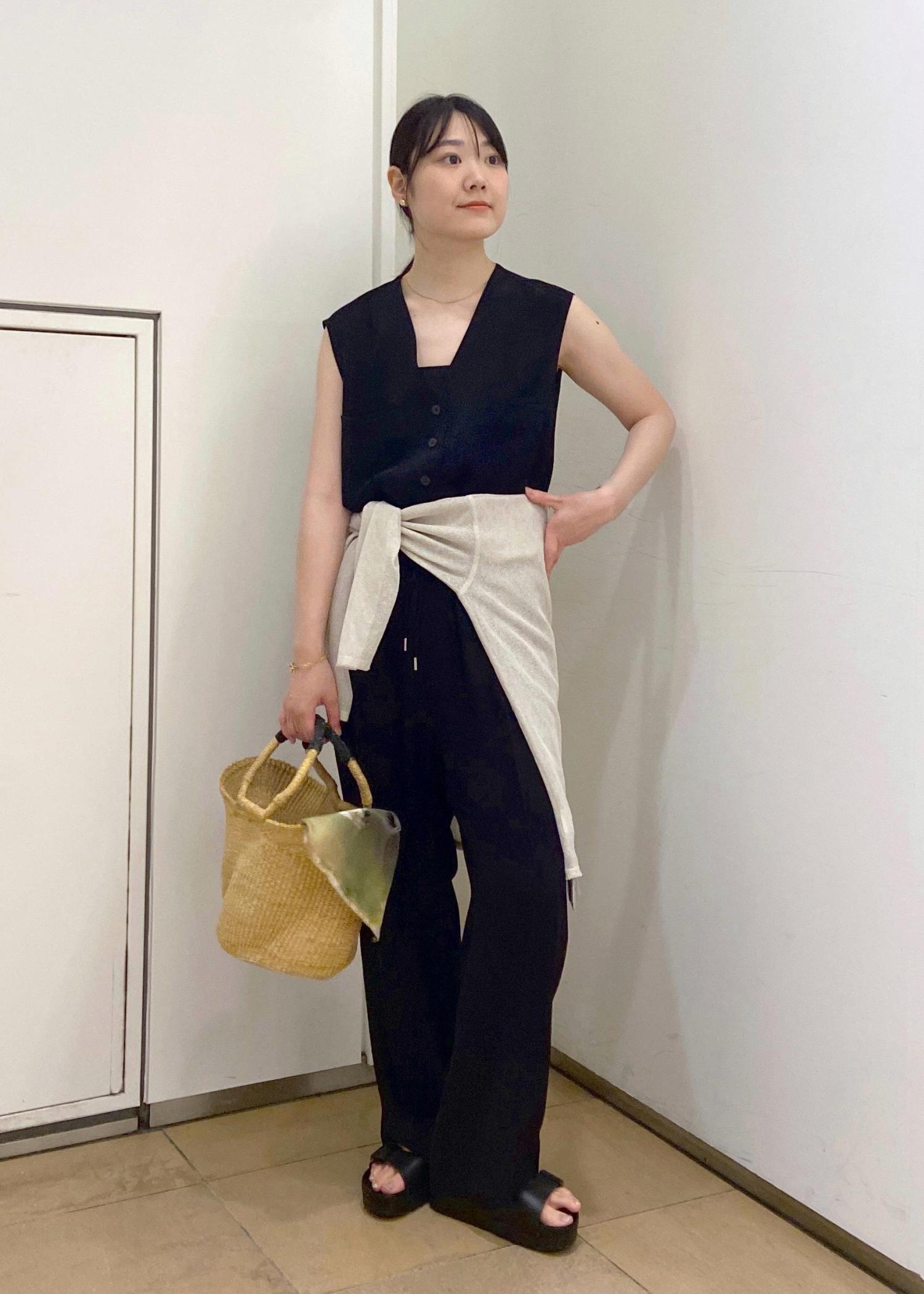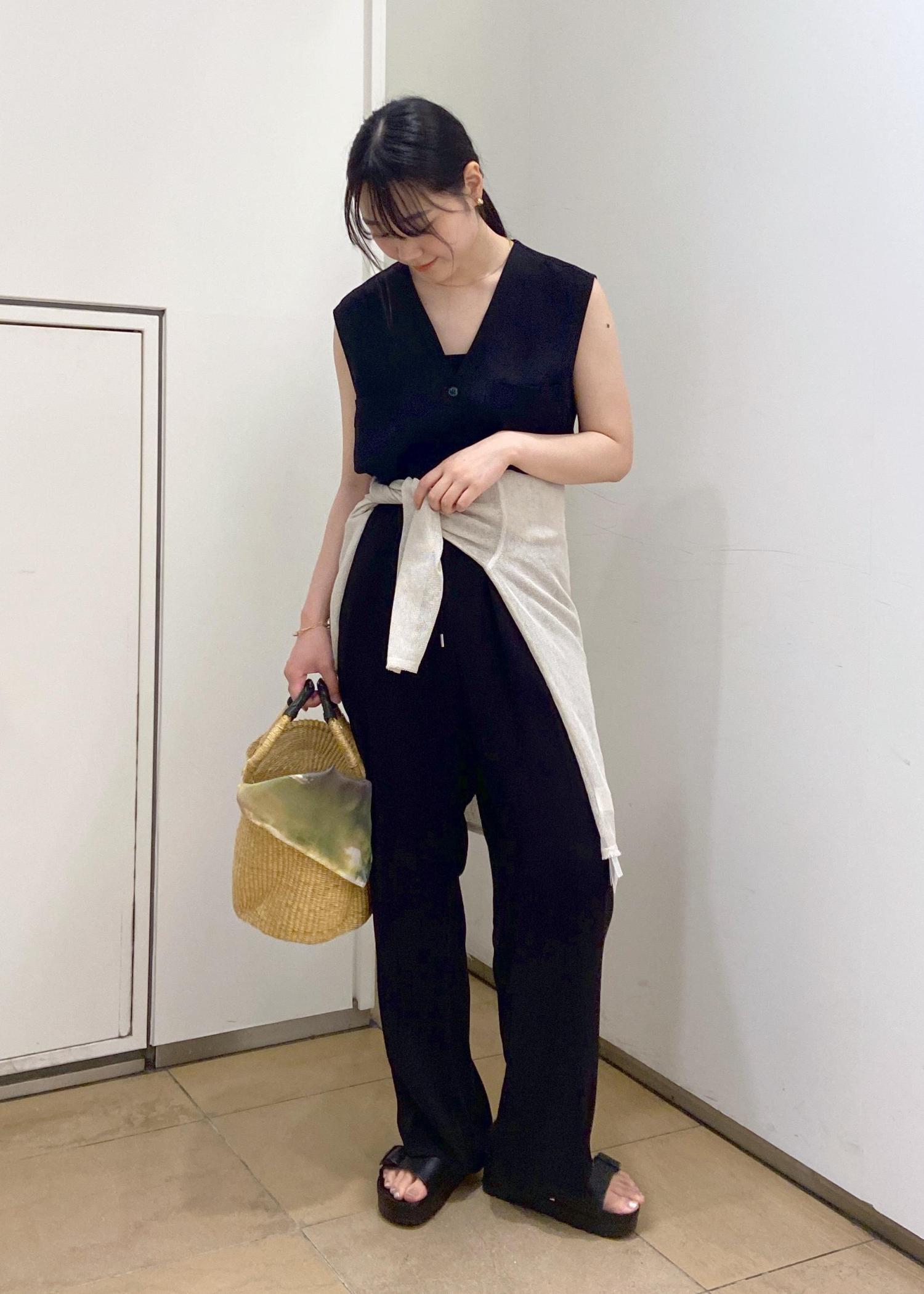 落ち感のあるシルエットがきれいで、シワになりにくいお素材です。