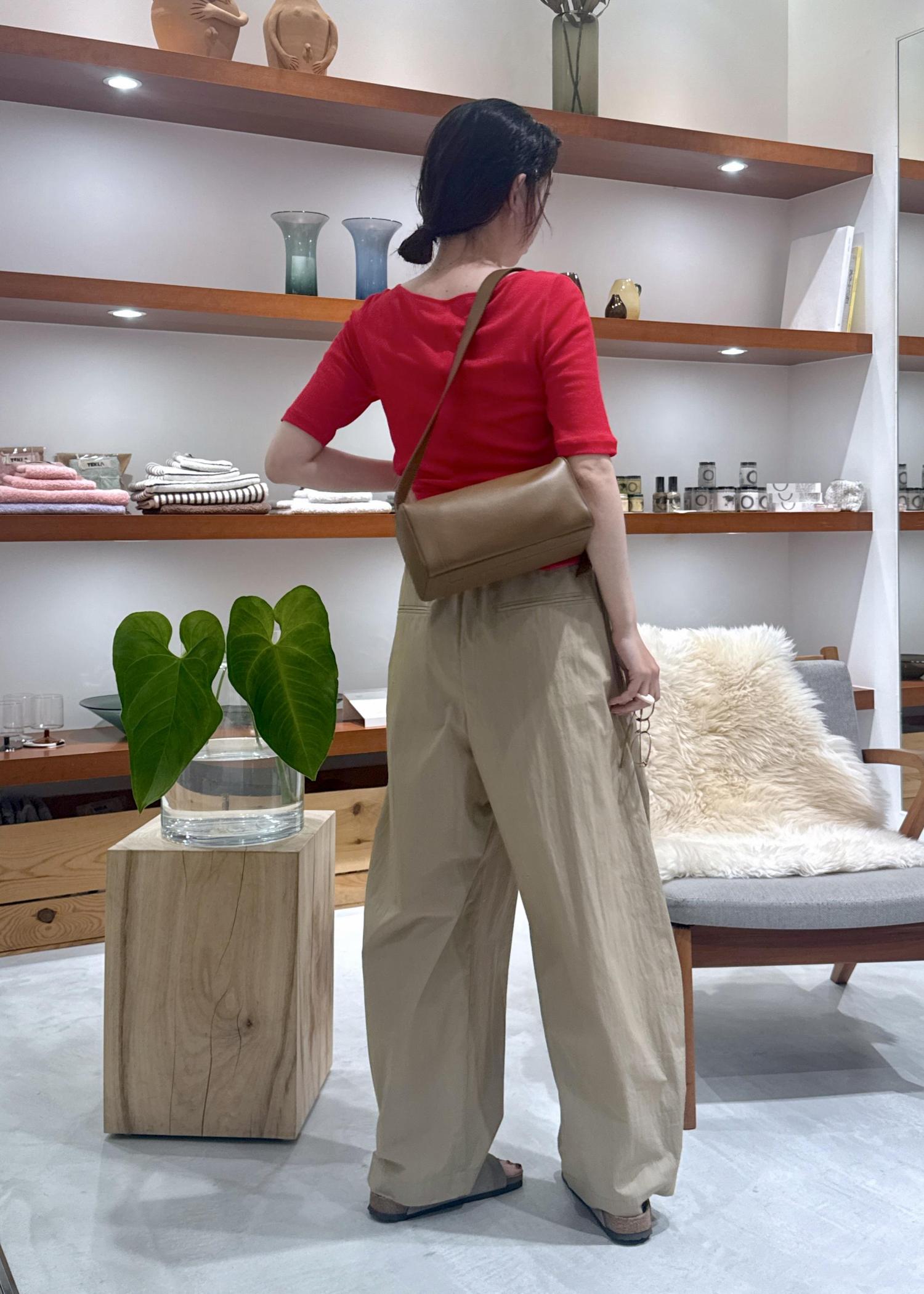 黒や白ではなくベージュと合わせると程よくカジュアルダウン、派手すぎない印象になるのでおすすめです!