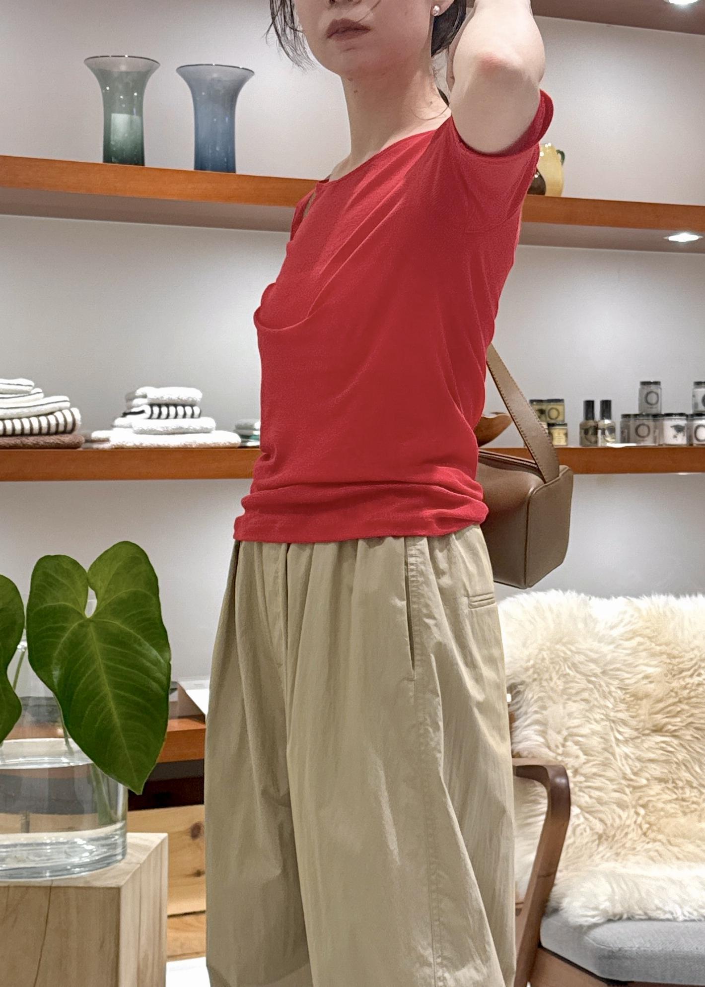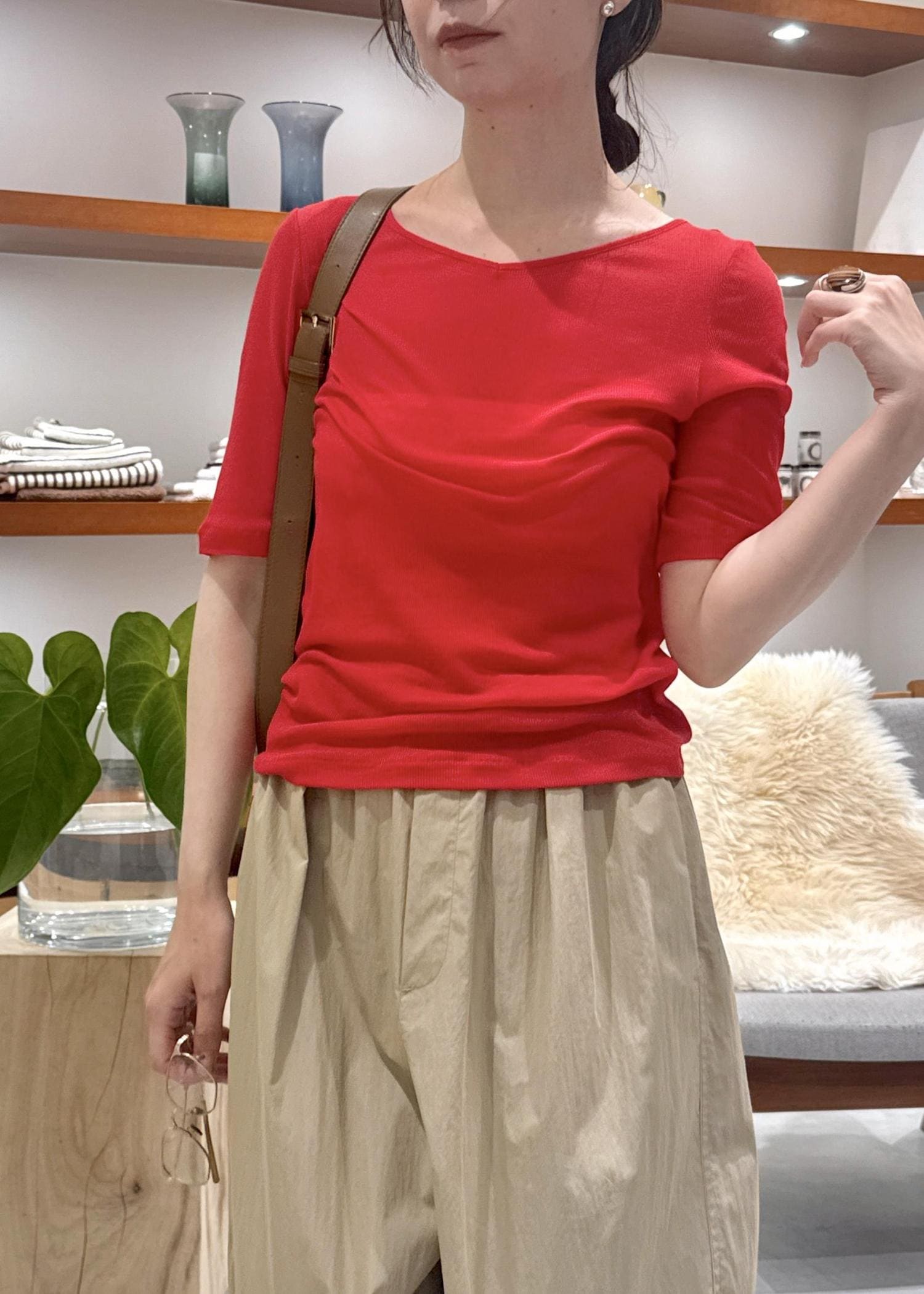 アウトレットSALON adam et ropénu=layerジェントルVネックシアーTシャツレッド / F¥4,950レビューぴちぴちし過ぎずほどよくゆとりがあるシルエット。