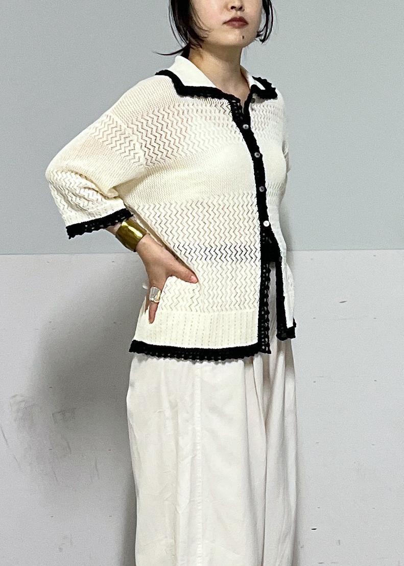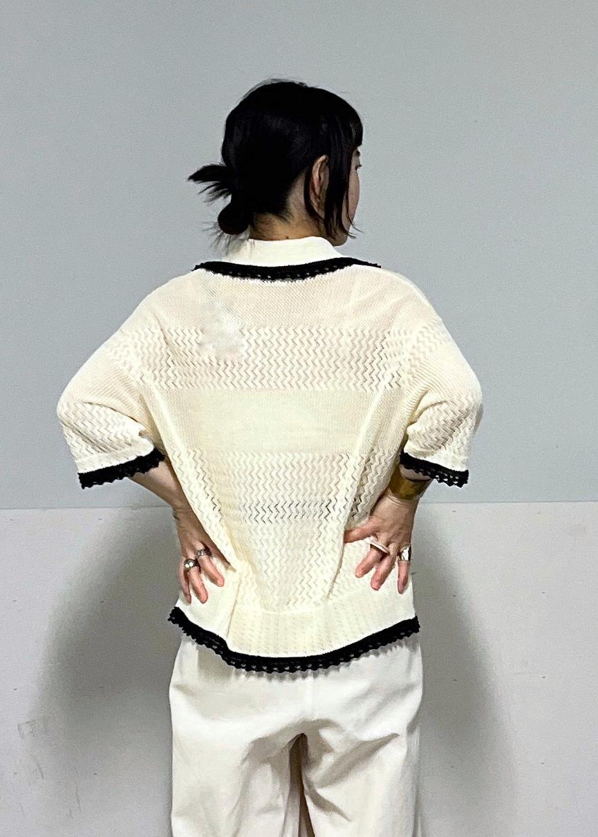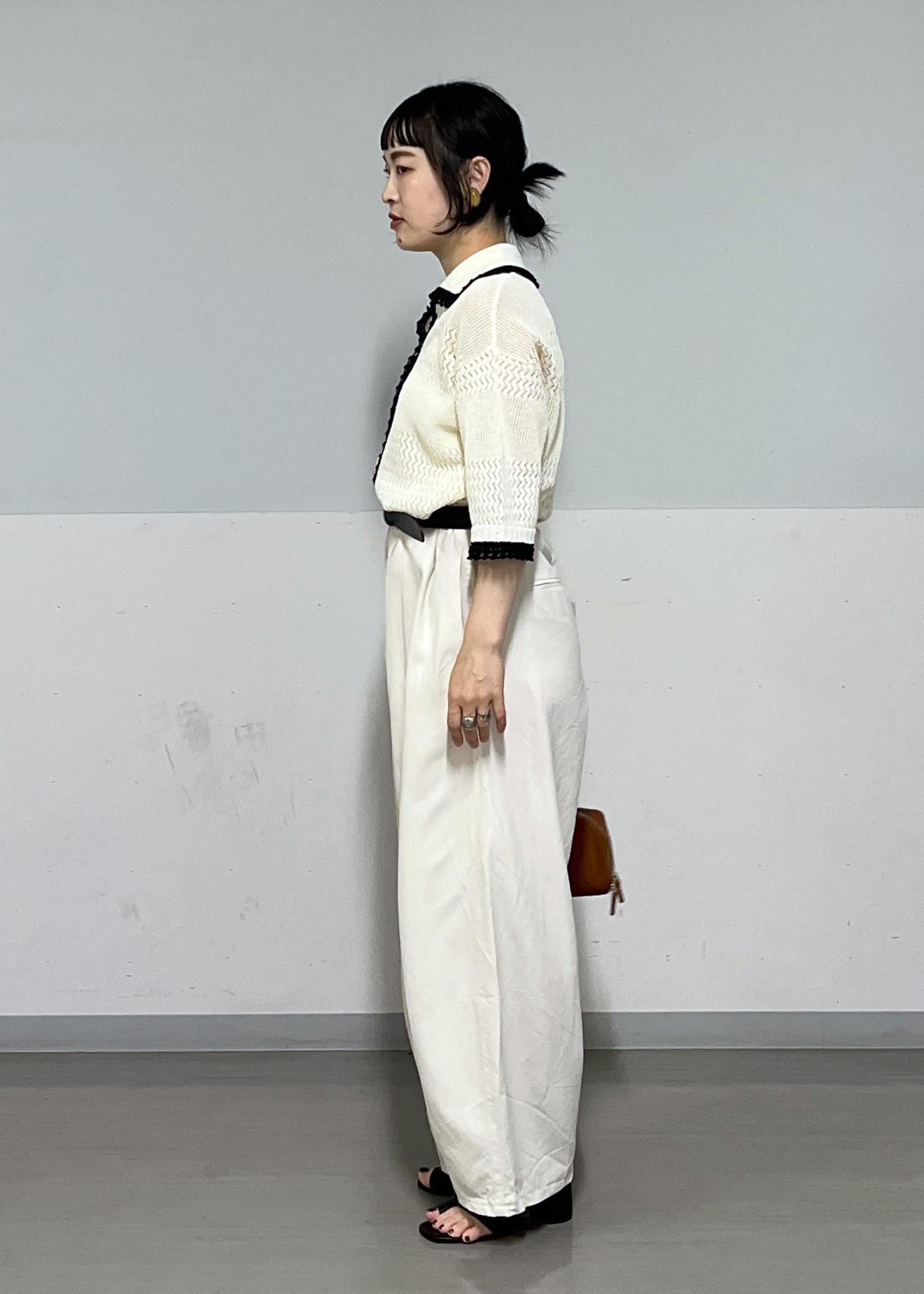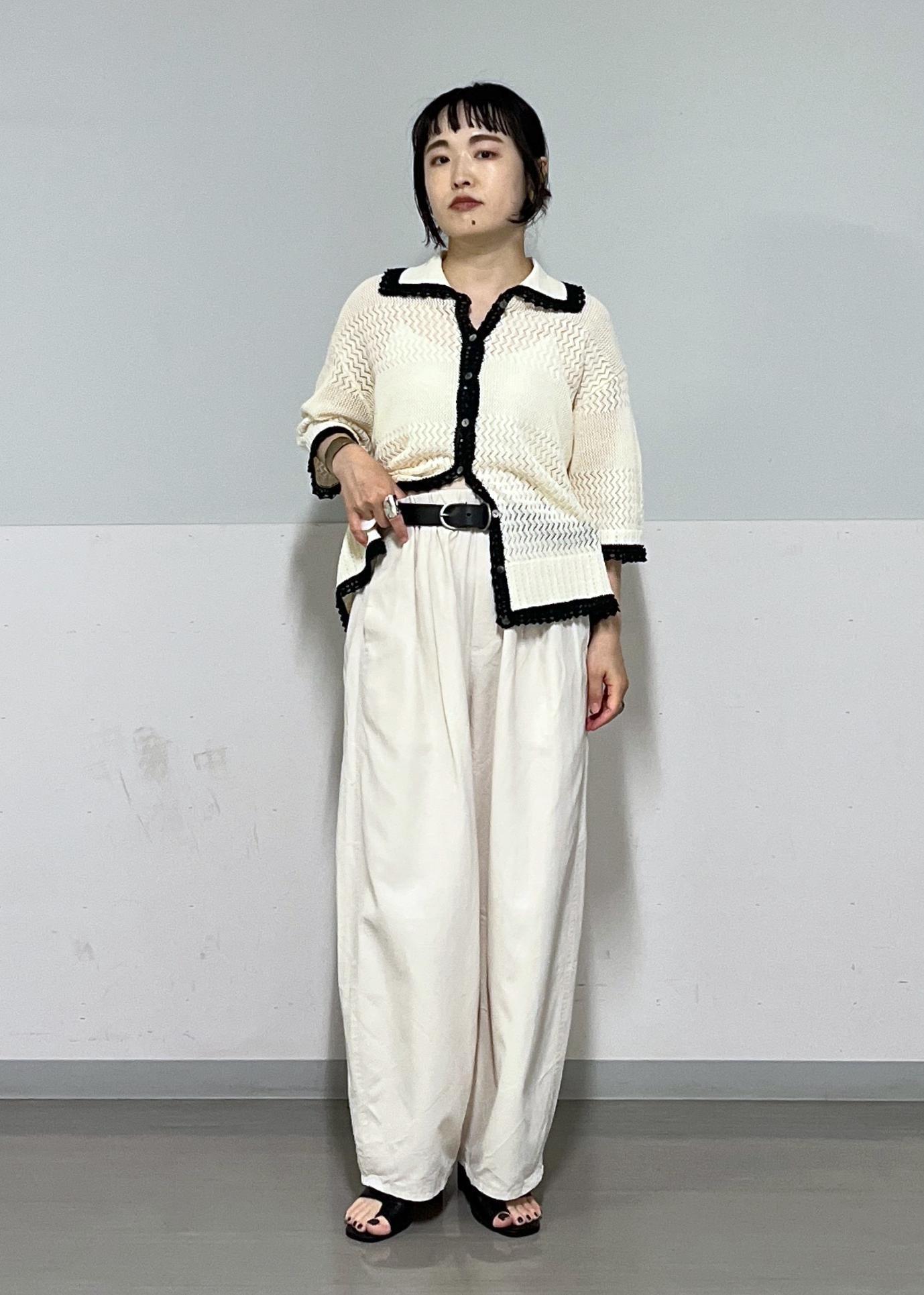 アウトレットSALON adam et ropéクロシェハーフスリーブカーディガンオフホワイト / F¥9,240レビュー腰骨がしっかり隠れるくらいの丈で、小柄さんはインしてコンパクトに着るか、下のボタンを2、3個開けてスリット風にするのがおススメ。