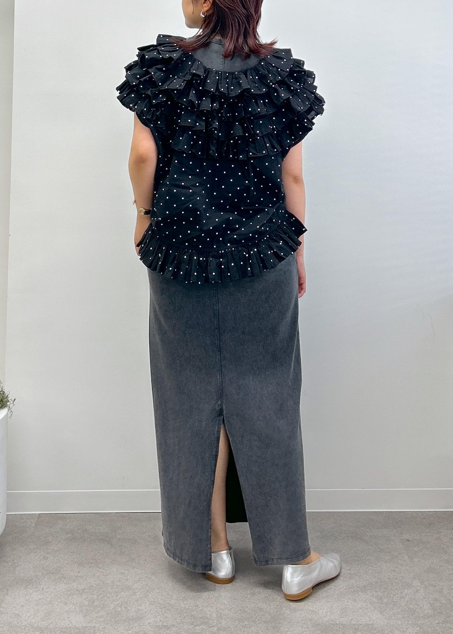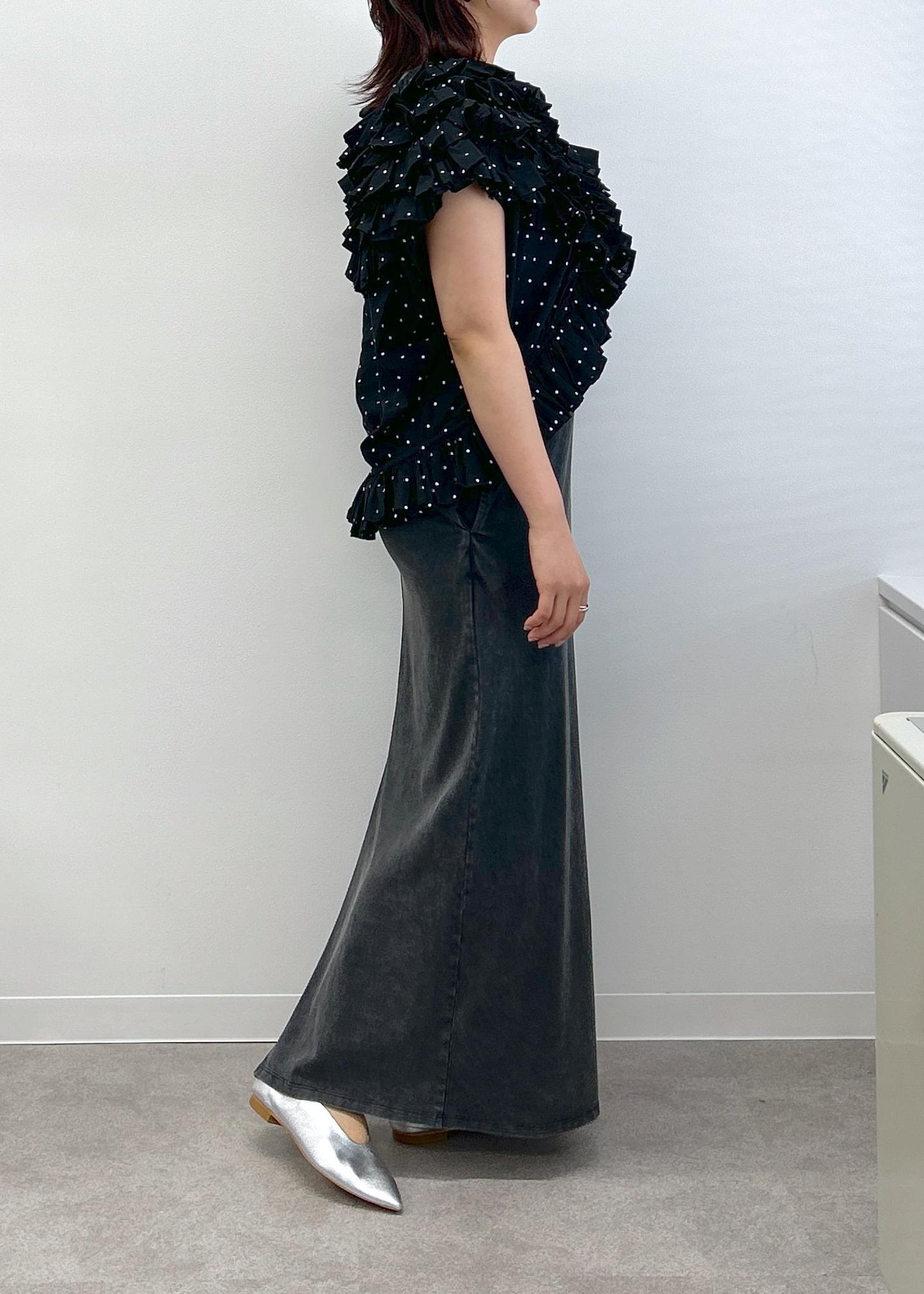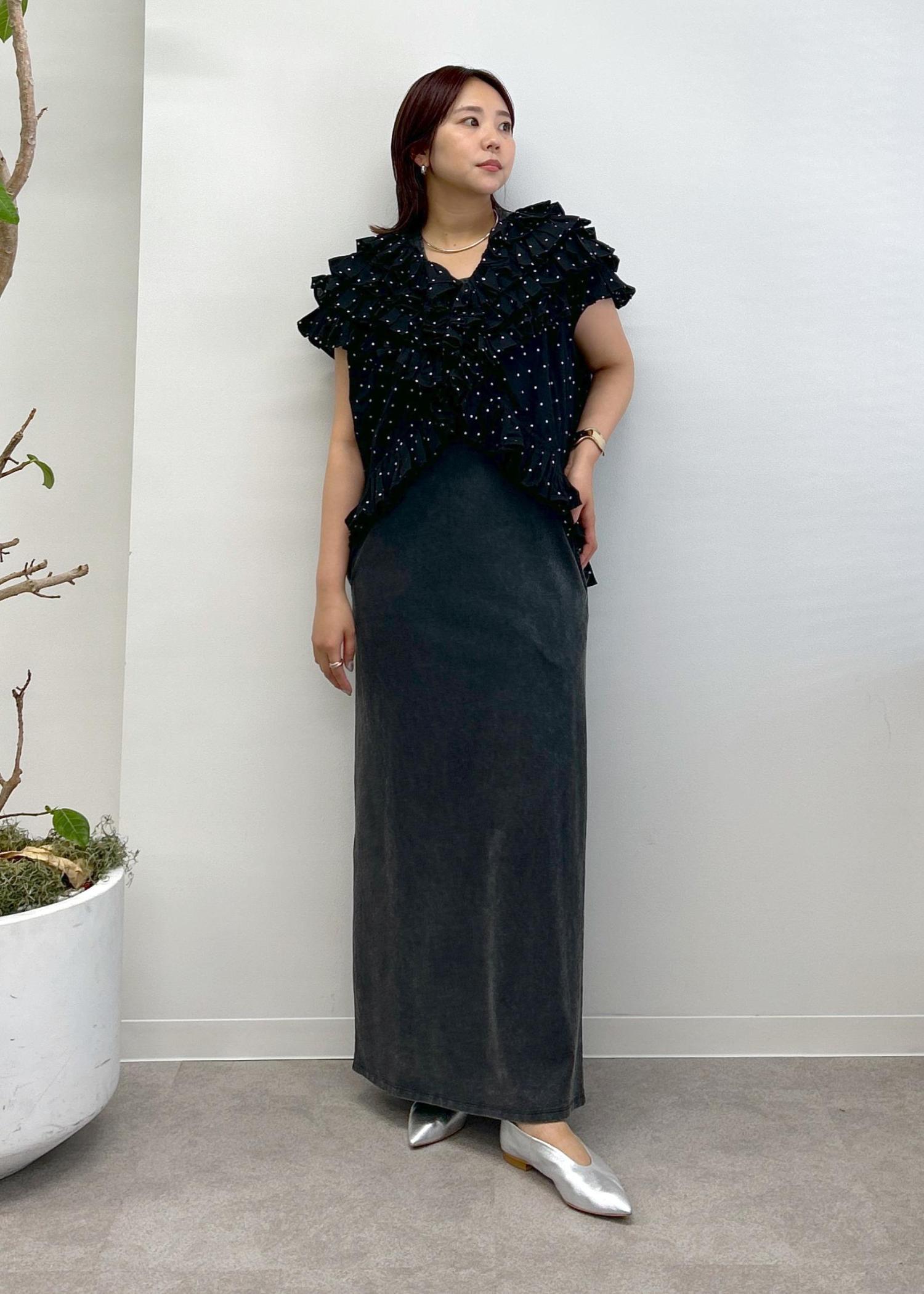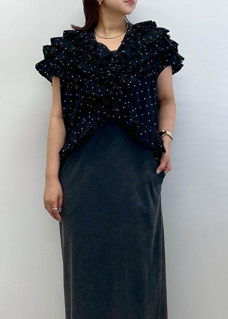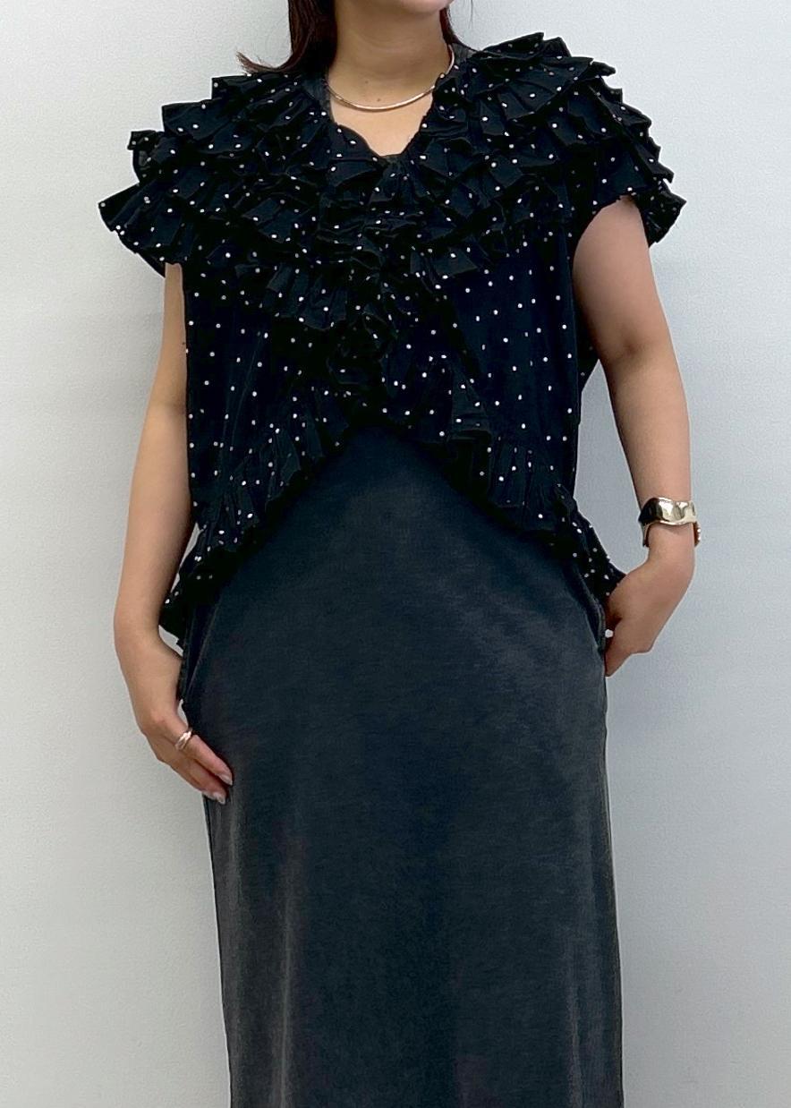 SALON adam et ropé【crinkle crinkle crinkle】別注フリルポンチョノースリーブブラウスブラック系 / F¥22,000レビュー肩周りにかけてのフリルがたっぷり入っていて存在感のあるトップス。