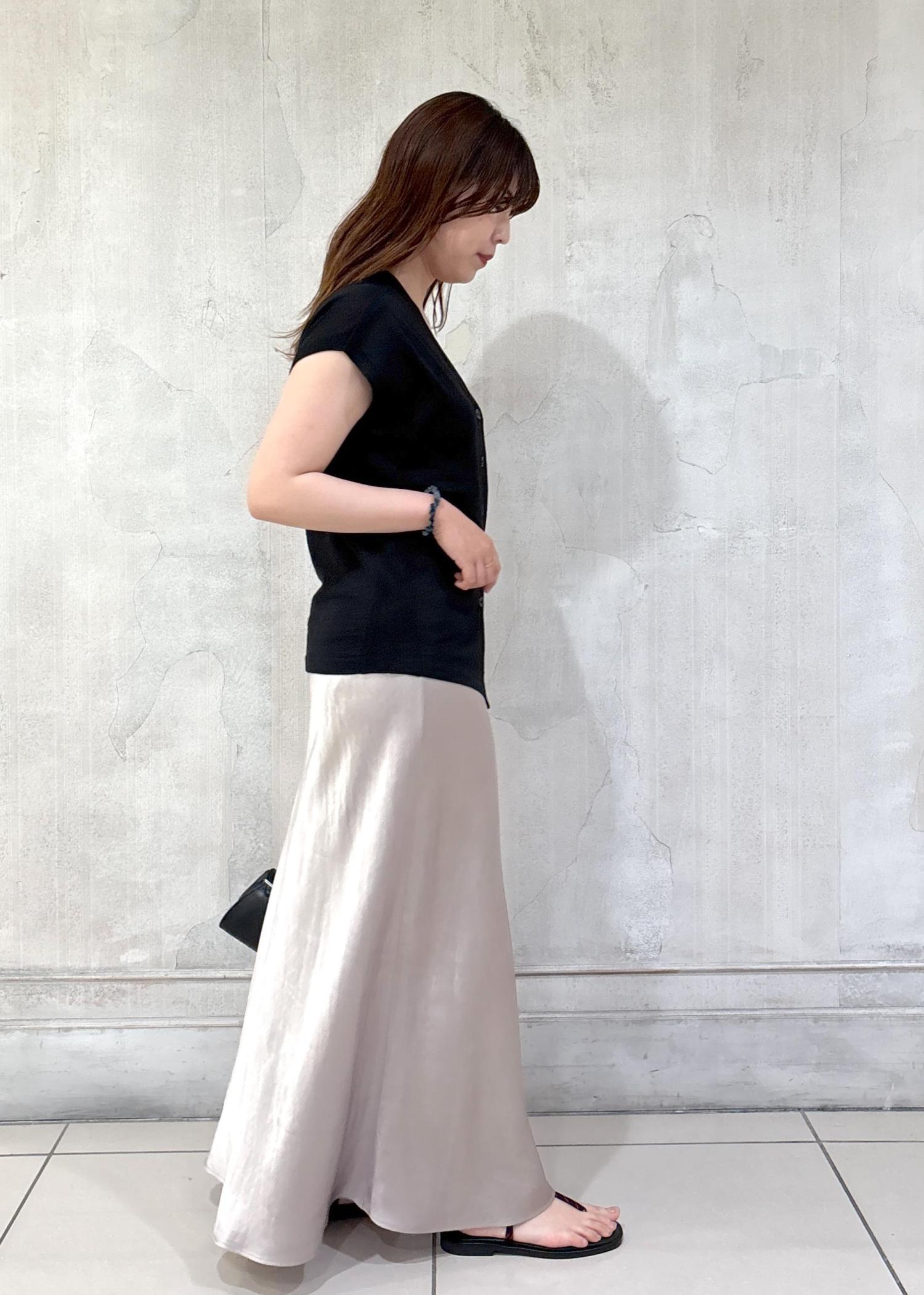 程よいゆるさとレディさのあるトップスです。レイヤードしやすいのも今年は嬉しいポイントで、さらっとしたインナーと合わせて夏、快適に着用できそうです!