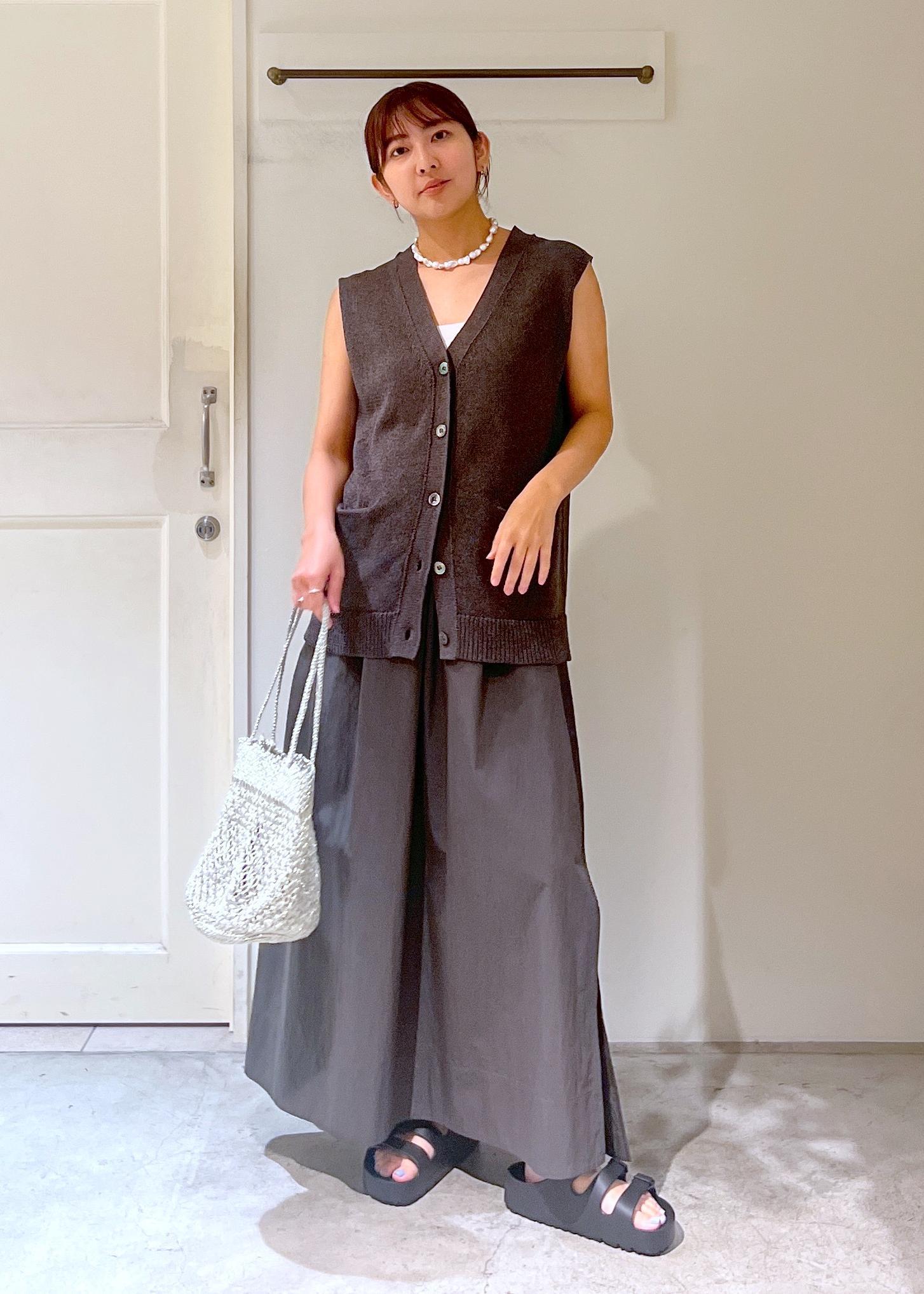 グレーのワントーンでまとめてみました。撥水のスカートとEVA素材のサンダルで不安定なお天気でも安心です。