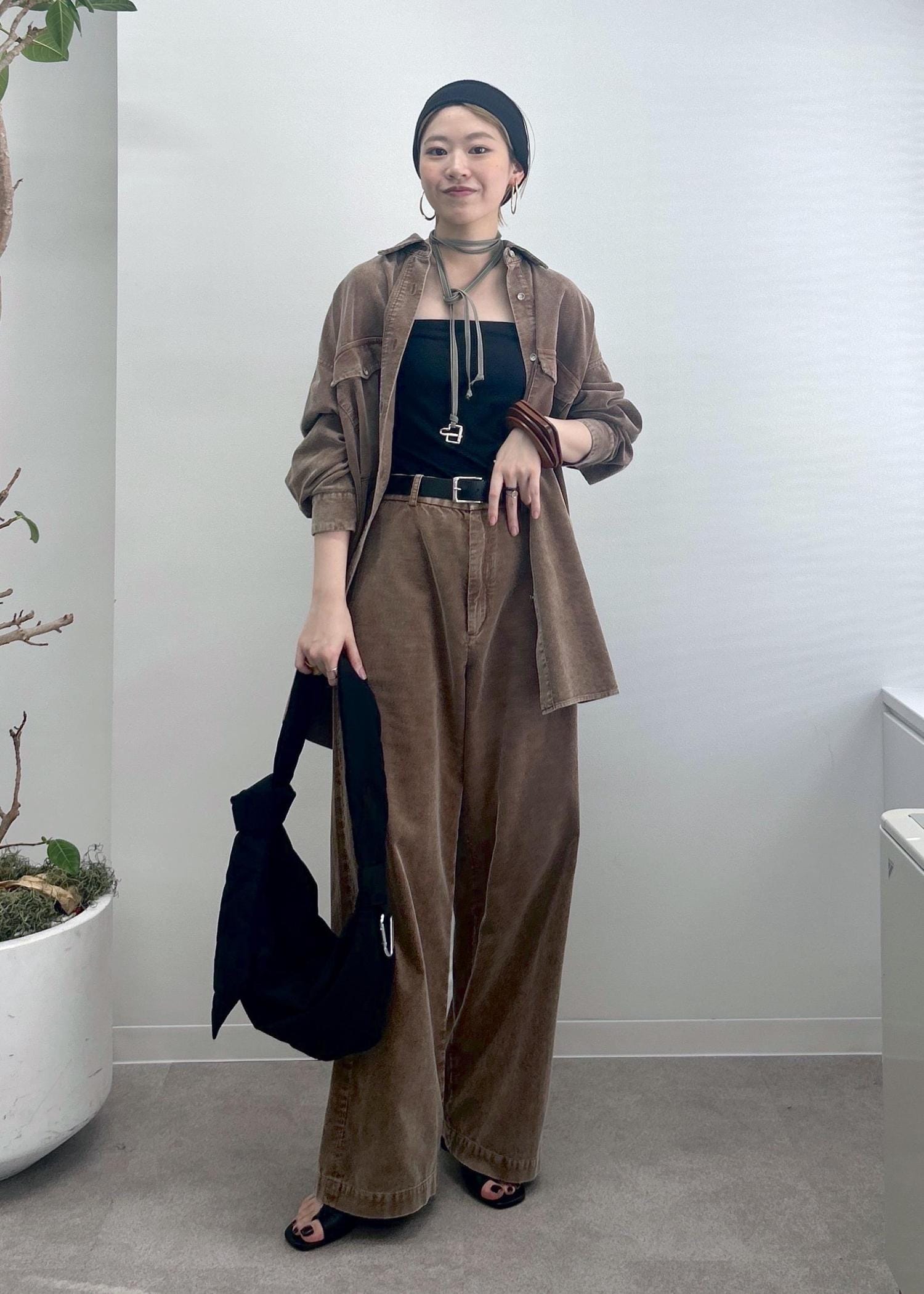 柔らかくてやや薄地のコーデュロイなので、身体のラインを拾い女性らしい落ち感を出してくれます◎