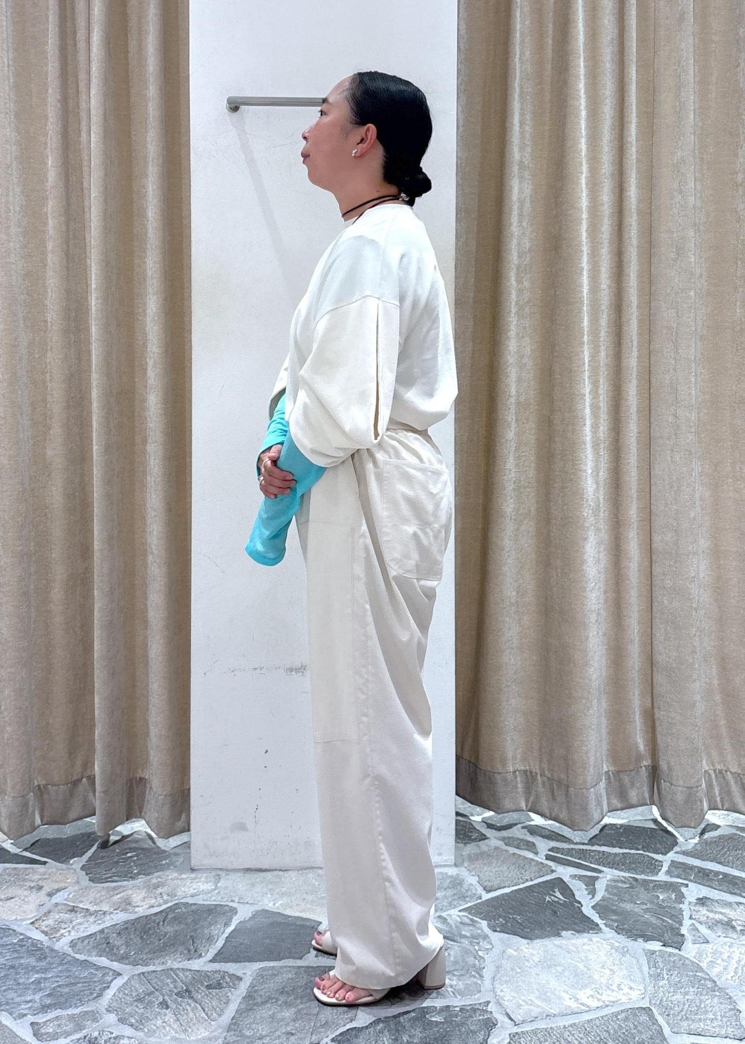 袖の通し方でシルエットを変えられて、レイヤードもしやすいので1年中楽しめそうです。 -