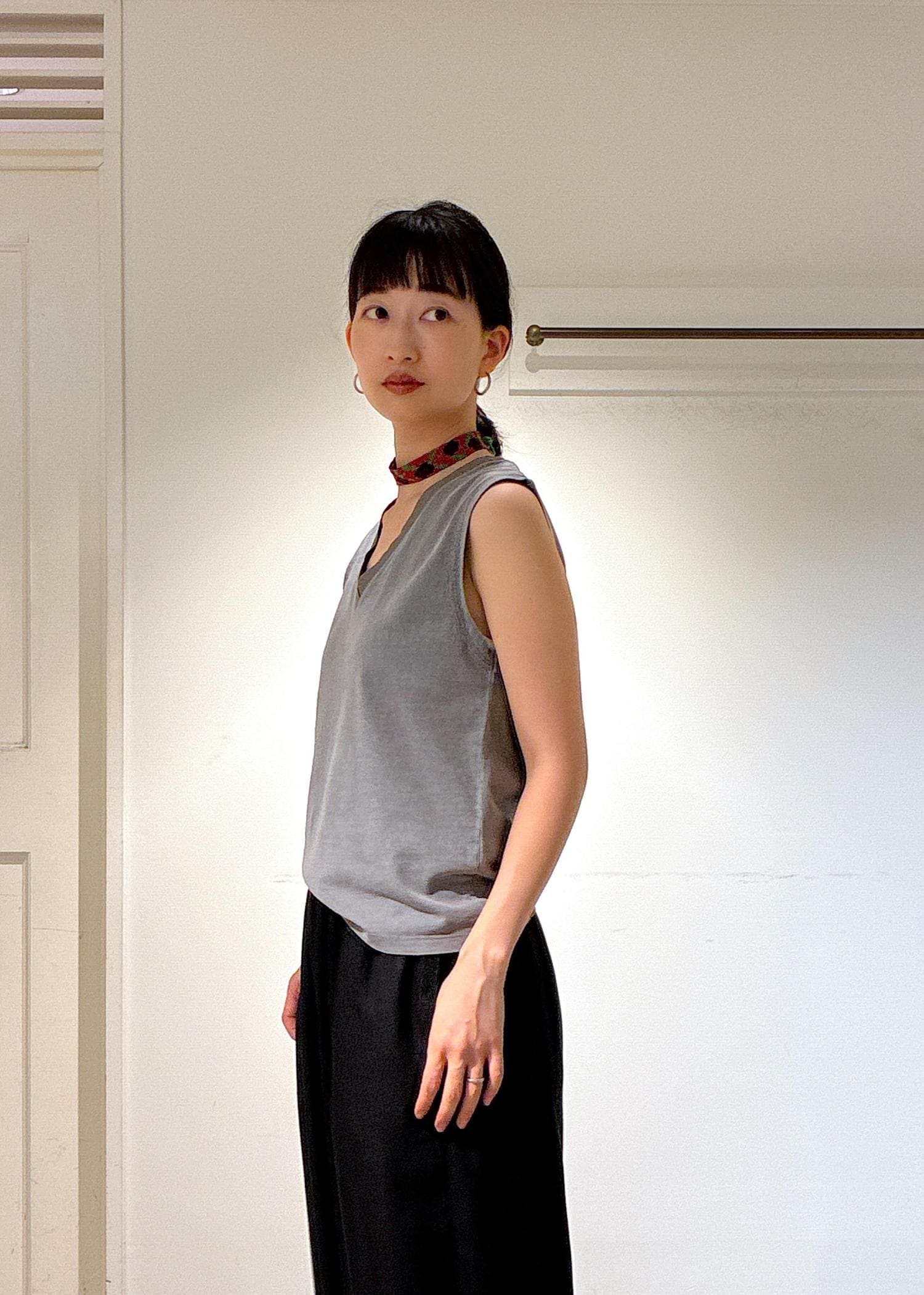 SALON adam et ropéビンテージライクオーバーダイプランジネックプルーバーグレー / F¥3,960レビューVネックがヘルシーなノースリーブトップス。