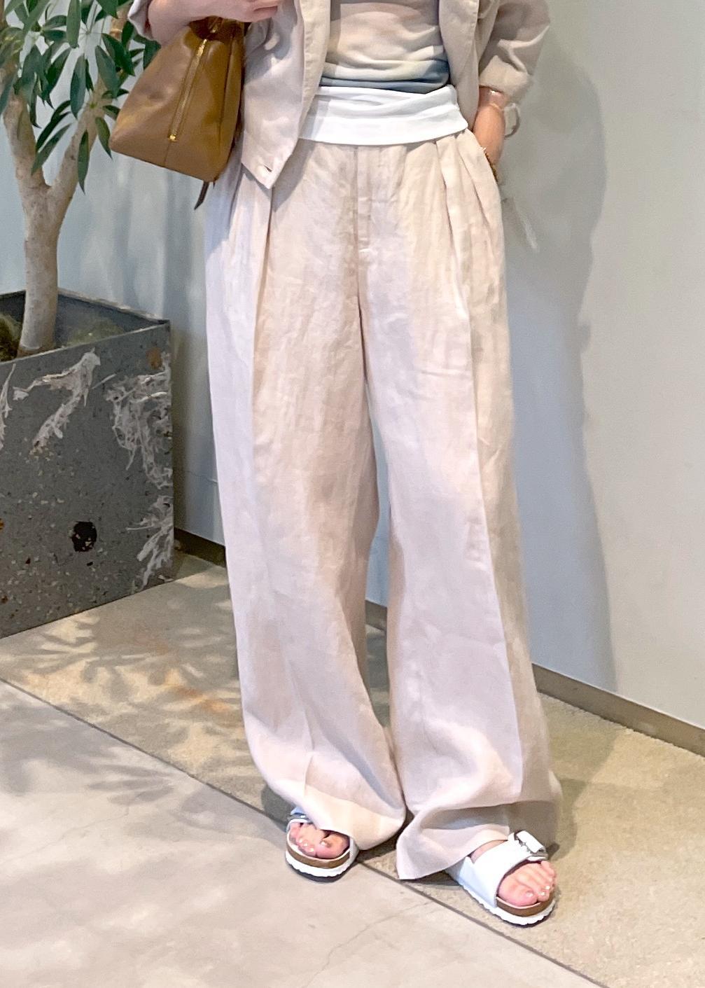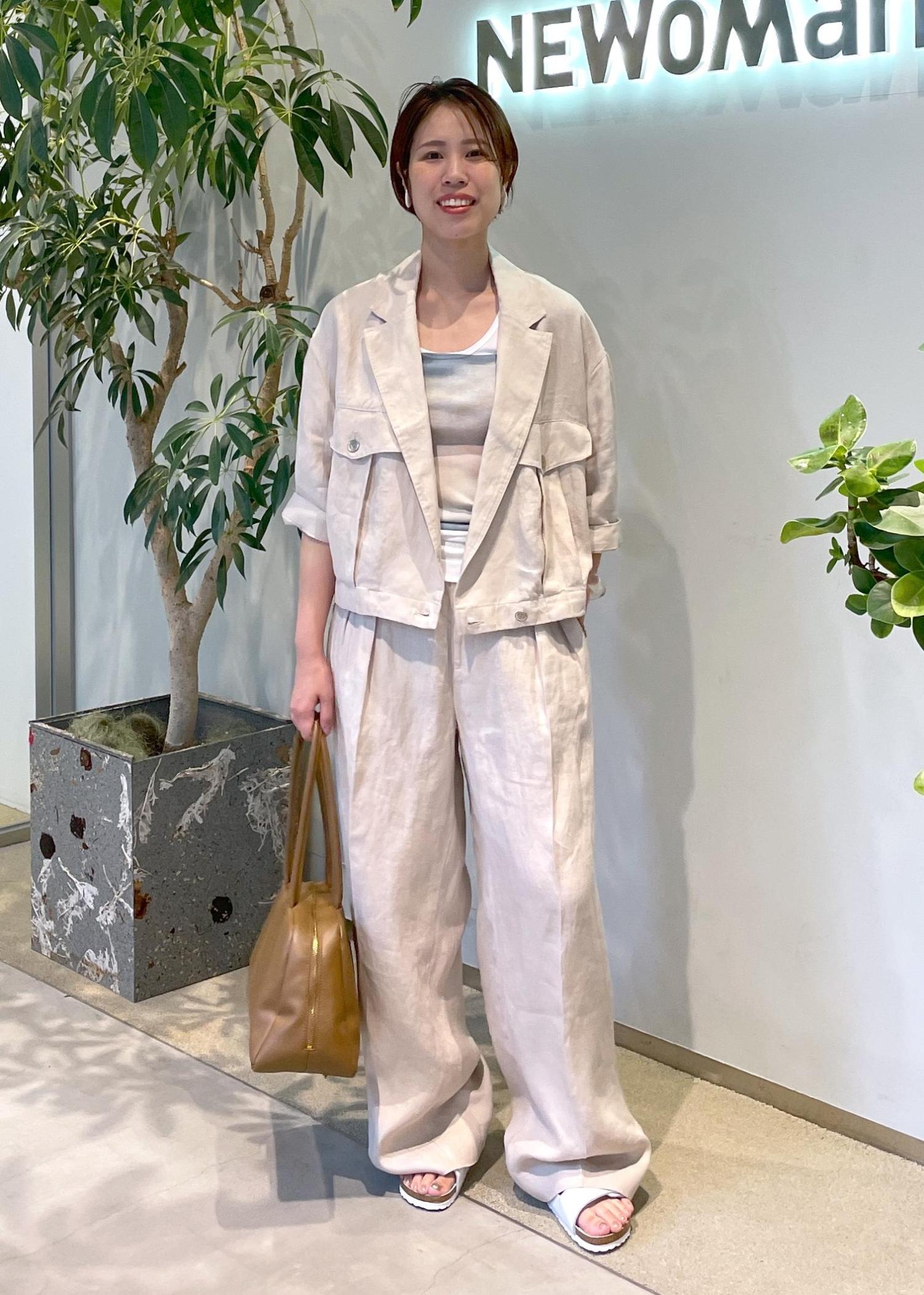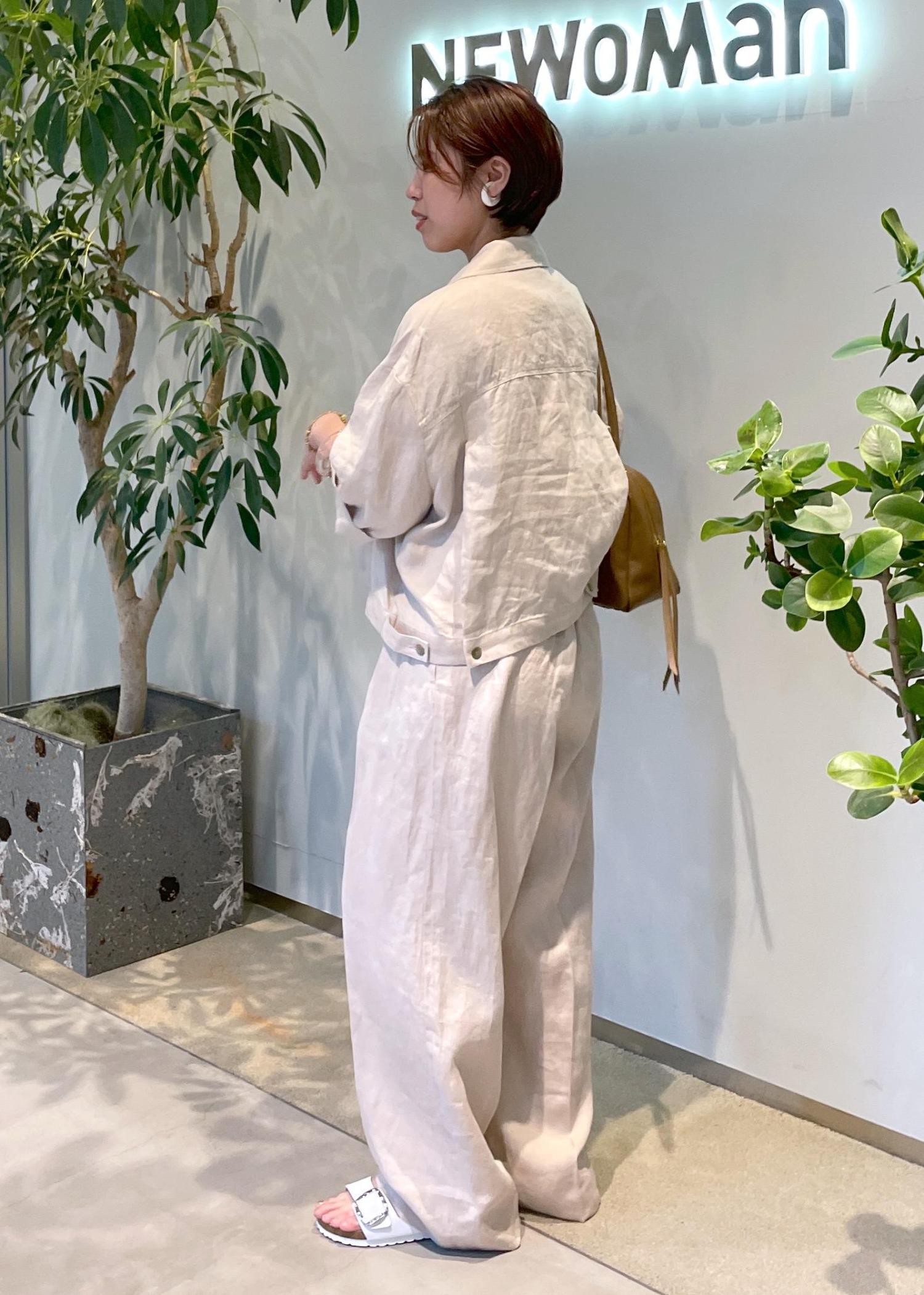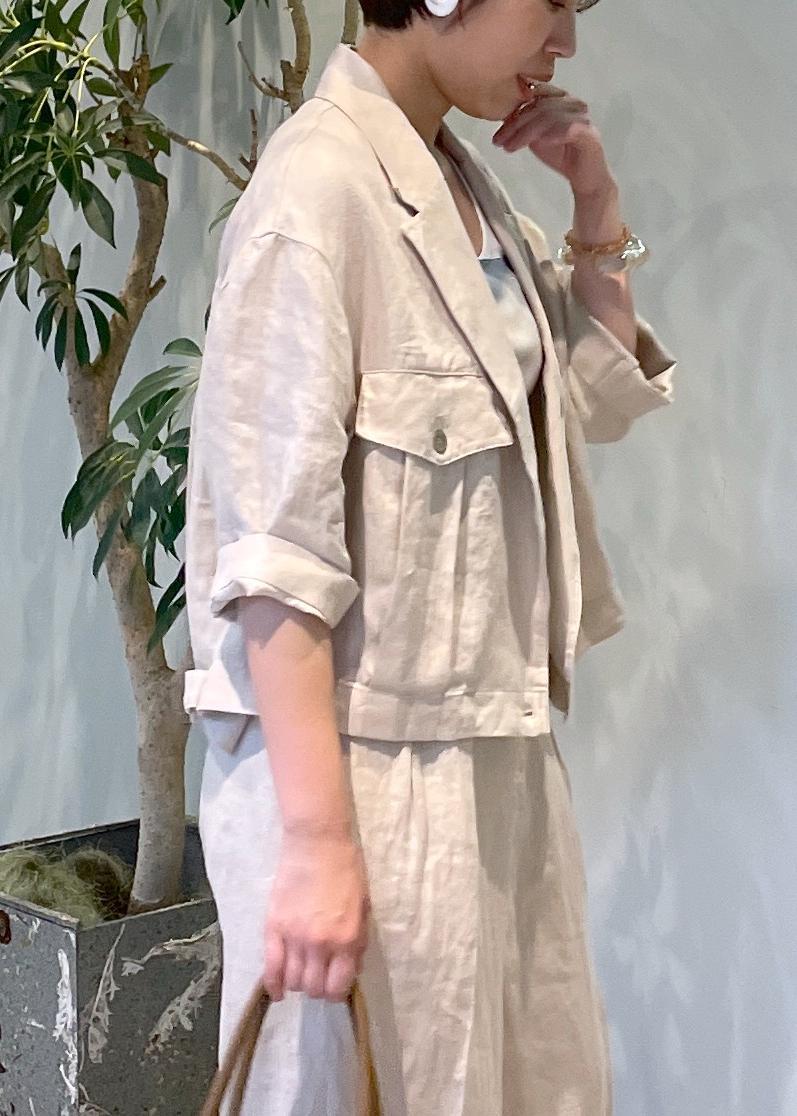 あれこれ着るのも暑くて面倒くさい!っていう夏にぴったりなリネンのセットアップが入荷しています。