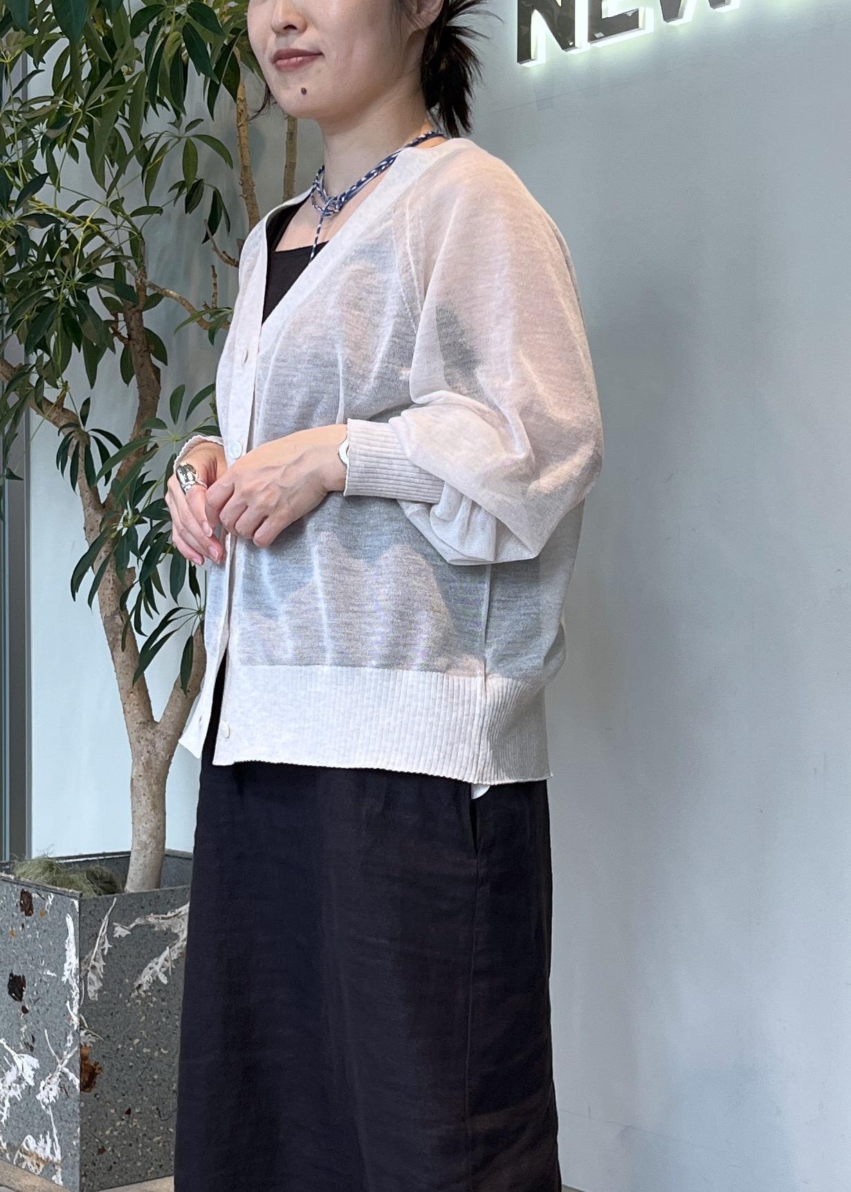 シアートップスとして一枚着でも、羽織りとしても、何にでも合いやすく、真夏まで欠かせないカーディガンです。