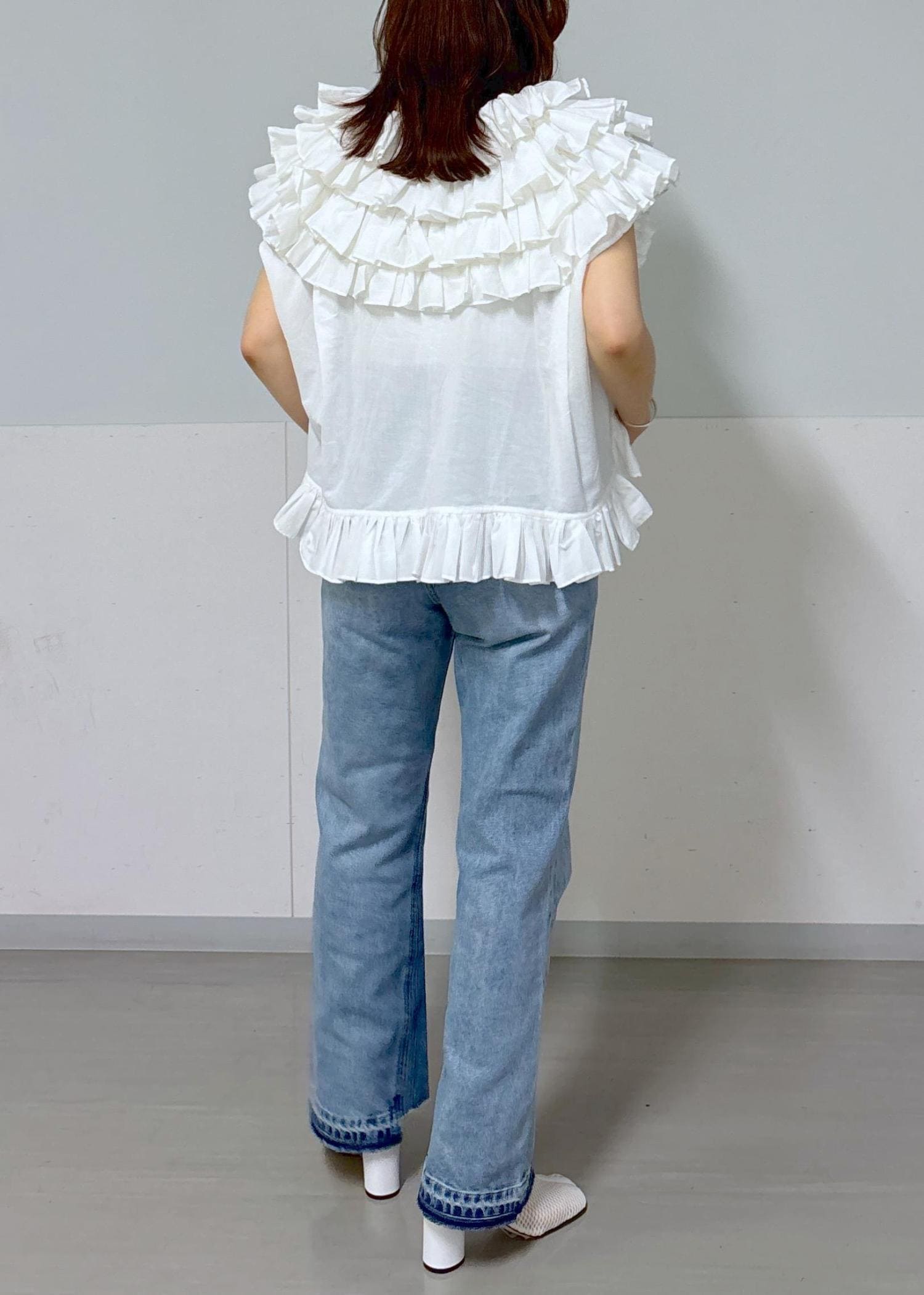 SALON adam et ropé【crinkle crinkle crinkle】別注フリルポンチョノースリーブブラウスホワイト / F¥22,000レビュー【サイズ感】