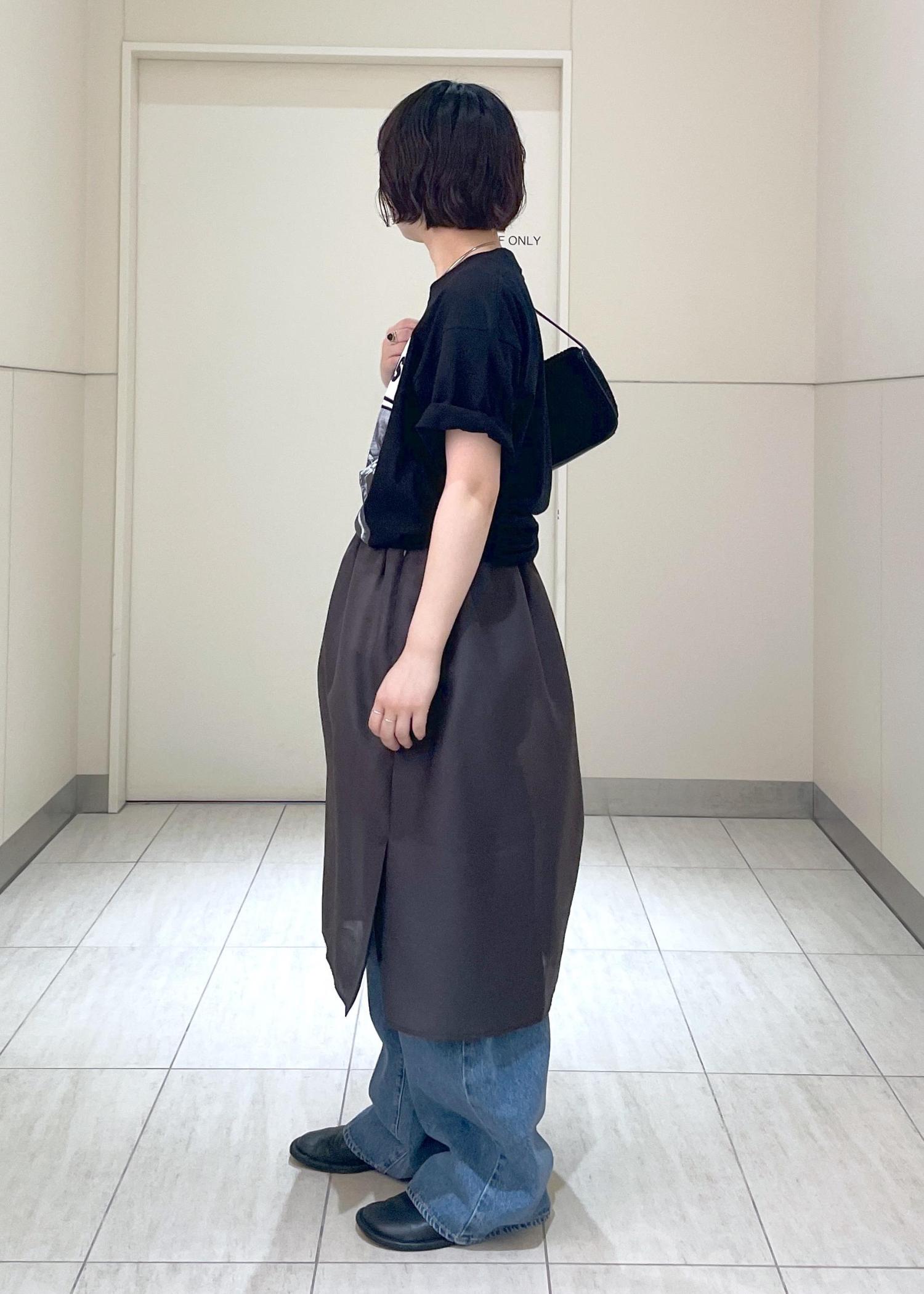 毎回大好評のこちらのコラボTシャツですが、柔らかなコットン生地で着心地も抜群です◎カジュアルにシンプルなボトムで合わせるのはもちろんですが、今回シアーのスカートをデニムにレイヤードしてみました。