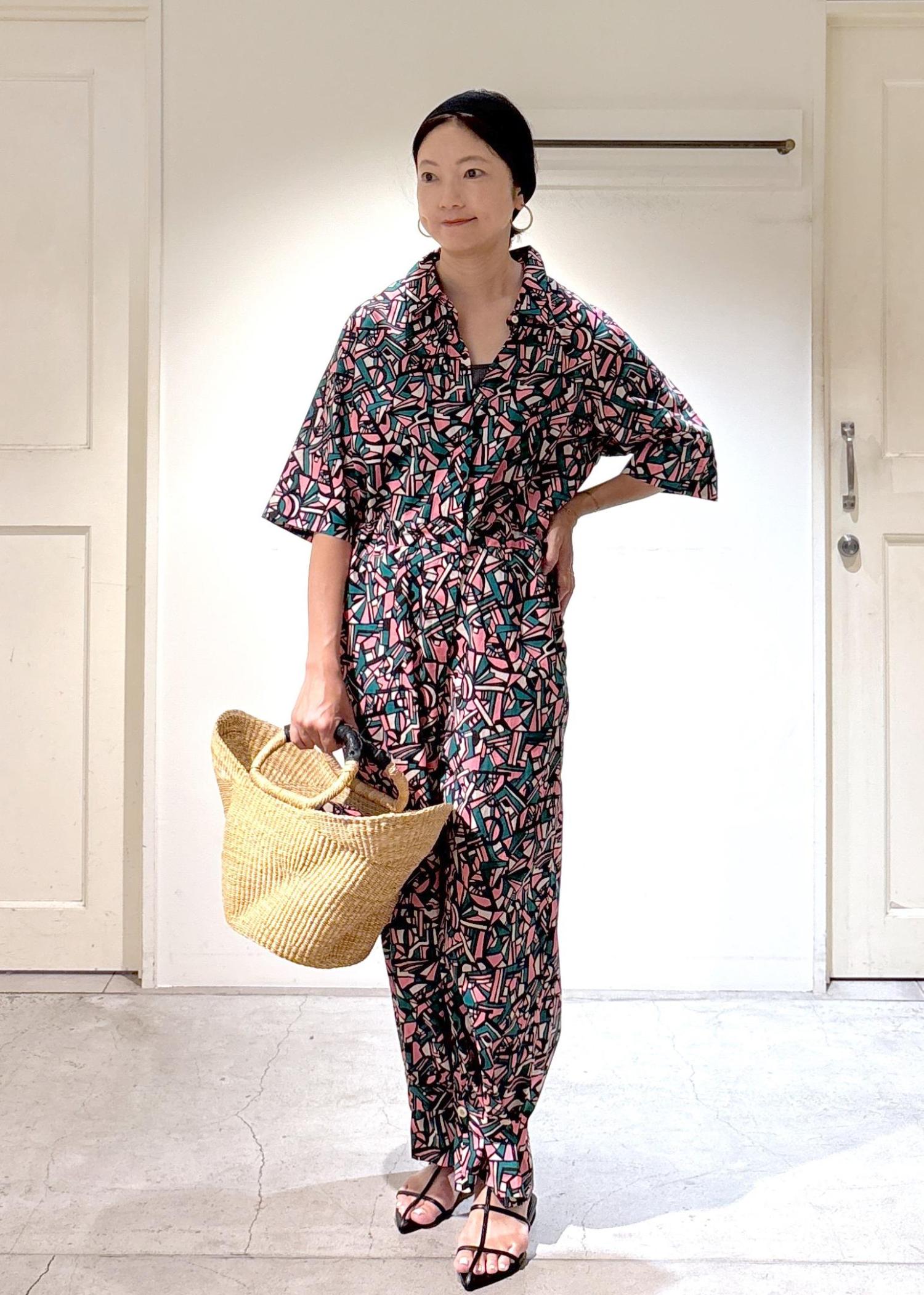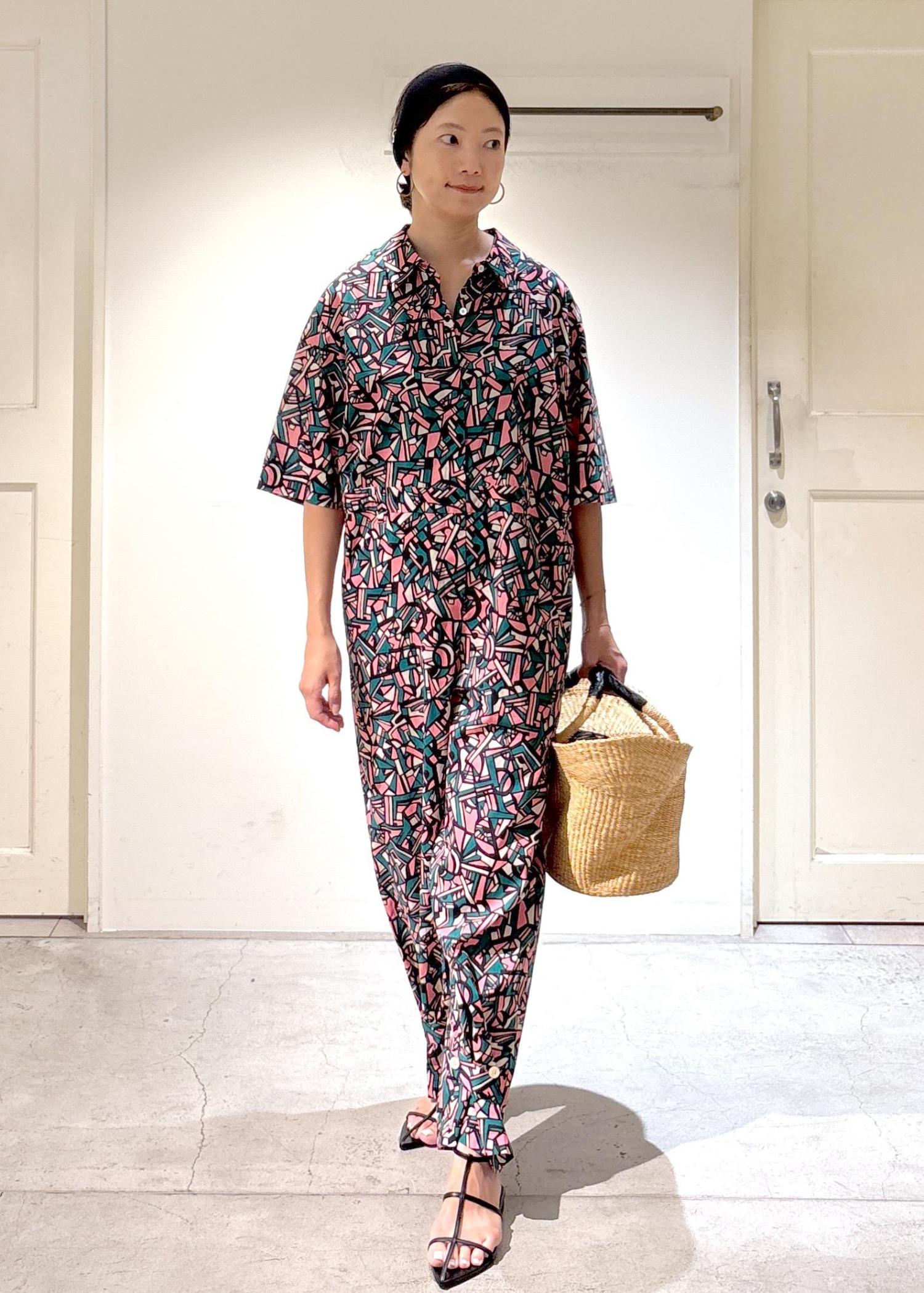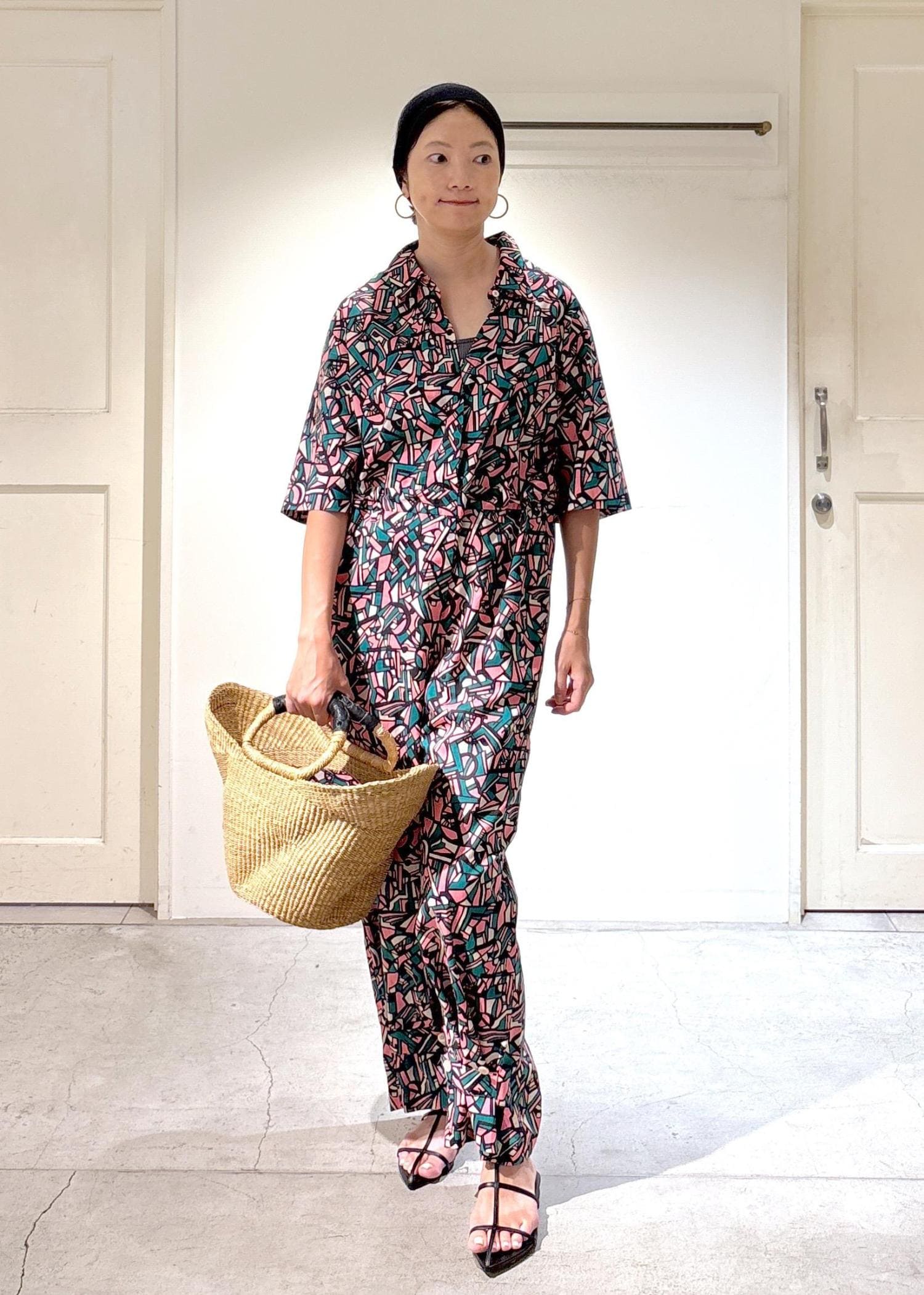 SALON adam et ropéリバティオールインワン / ロンパースグリーン / F¥29,040レビュー163cm、フラットシューズを履いても引きずる事なく、ちょうど良い丈。ただ、ウエストの紐で丈は調節できます。足元にはフラップがついており、ワイドにも少しだけキュッと絞ったシルエットにしても可愛いです。身幅はゆったりとしており、体に張り付く事なく快適にご着用いただけます。