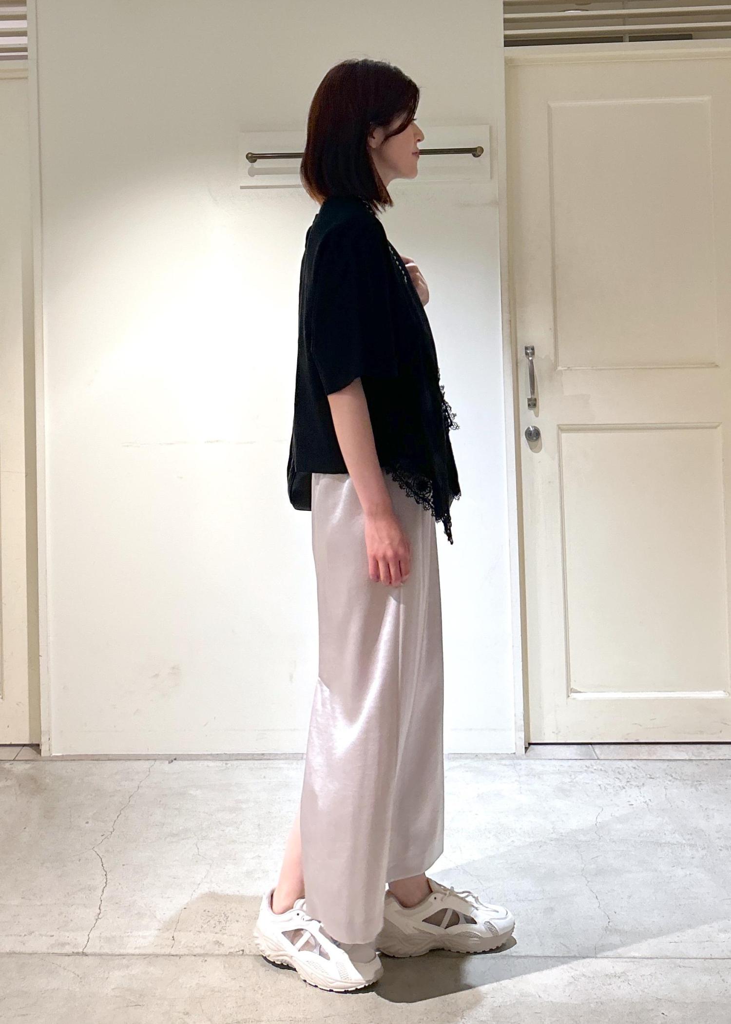 トップスの裾がレースになっているので、ボトムスの合わせ方で雰囲気が変わります!柄パンツなどもオススメ◎