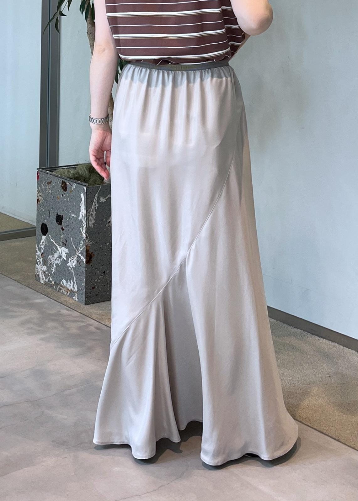 アウトレットSALON adam et ropéキュプラツイルバックフレアースカート[セットアップ対応]ベージュ / F¥8,360レビュー152cm、5cmヒールを履いて地面スレスレの丈。