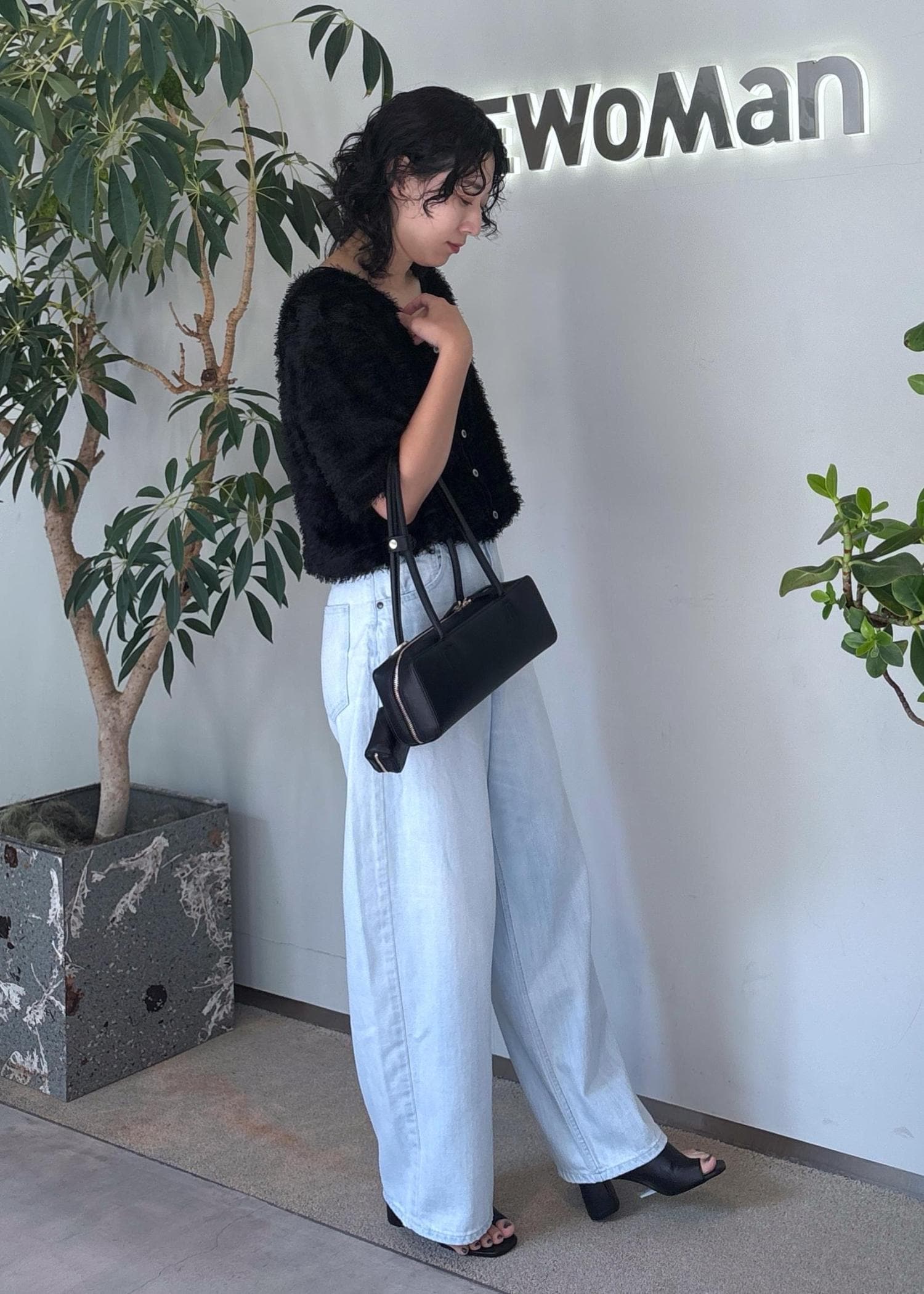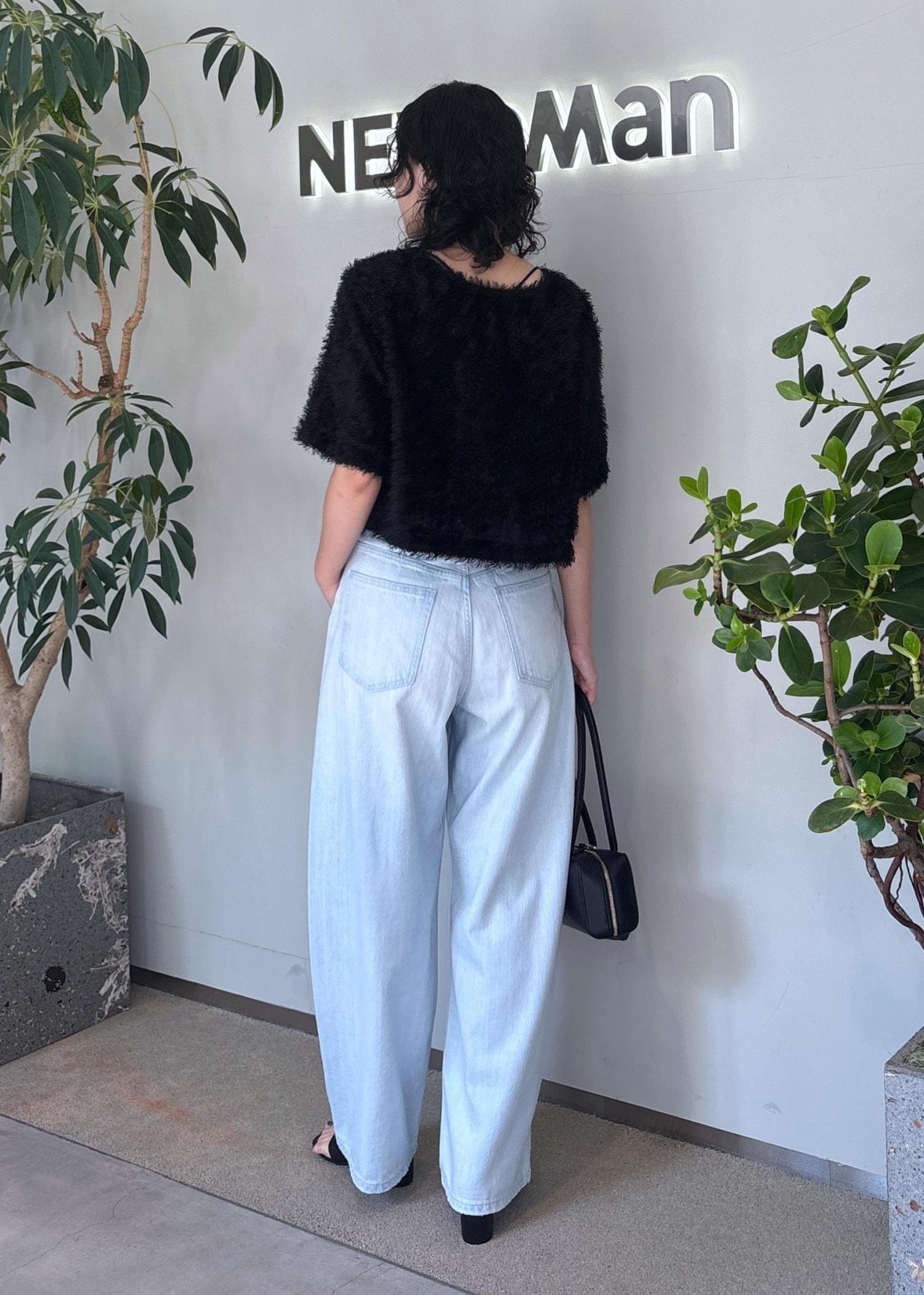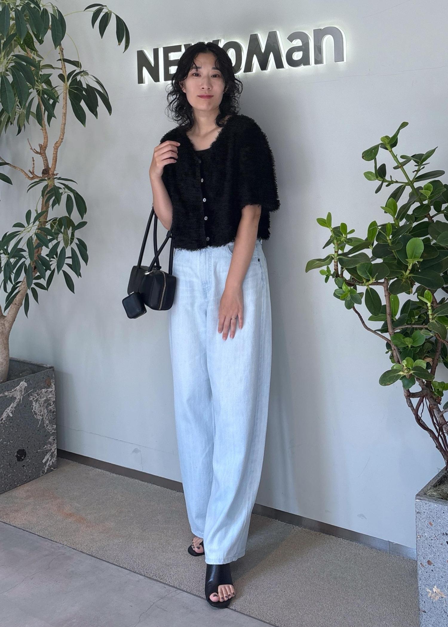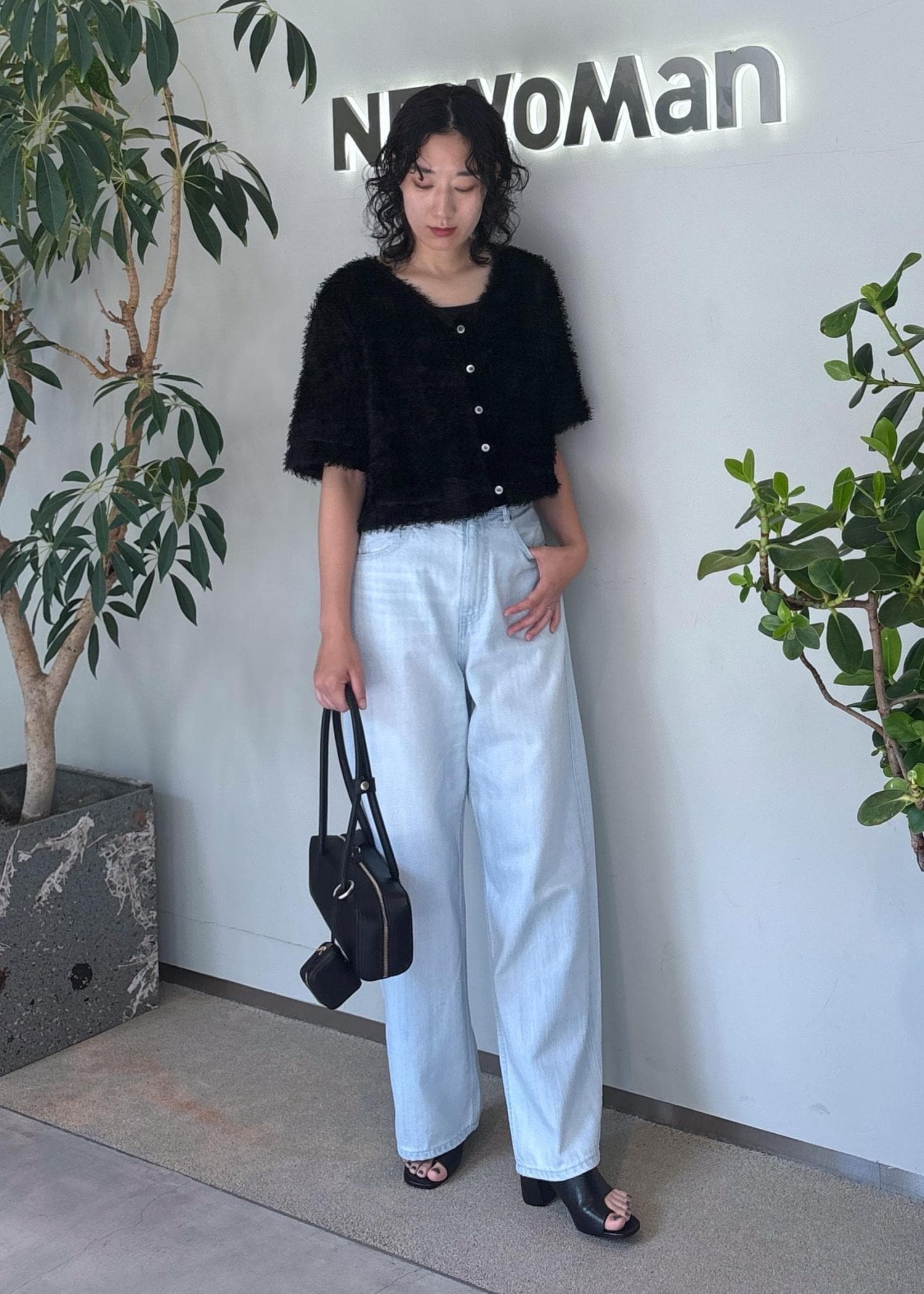 最近入荷したRED CARDを同じく新作のフェザージャガードプルオーバーと合わせました。デニムにちょっとガーリー感のあるアイテムの合わせ、だいすきです〜。