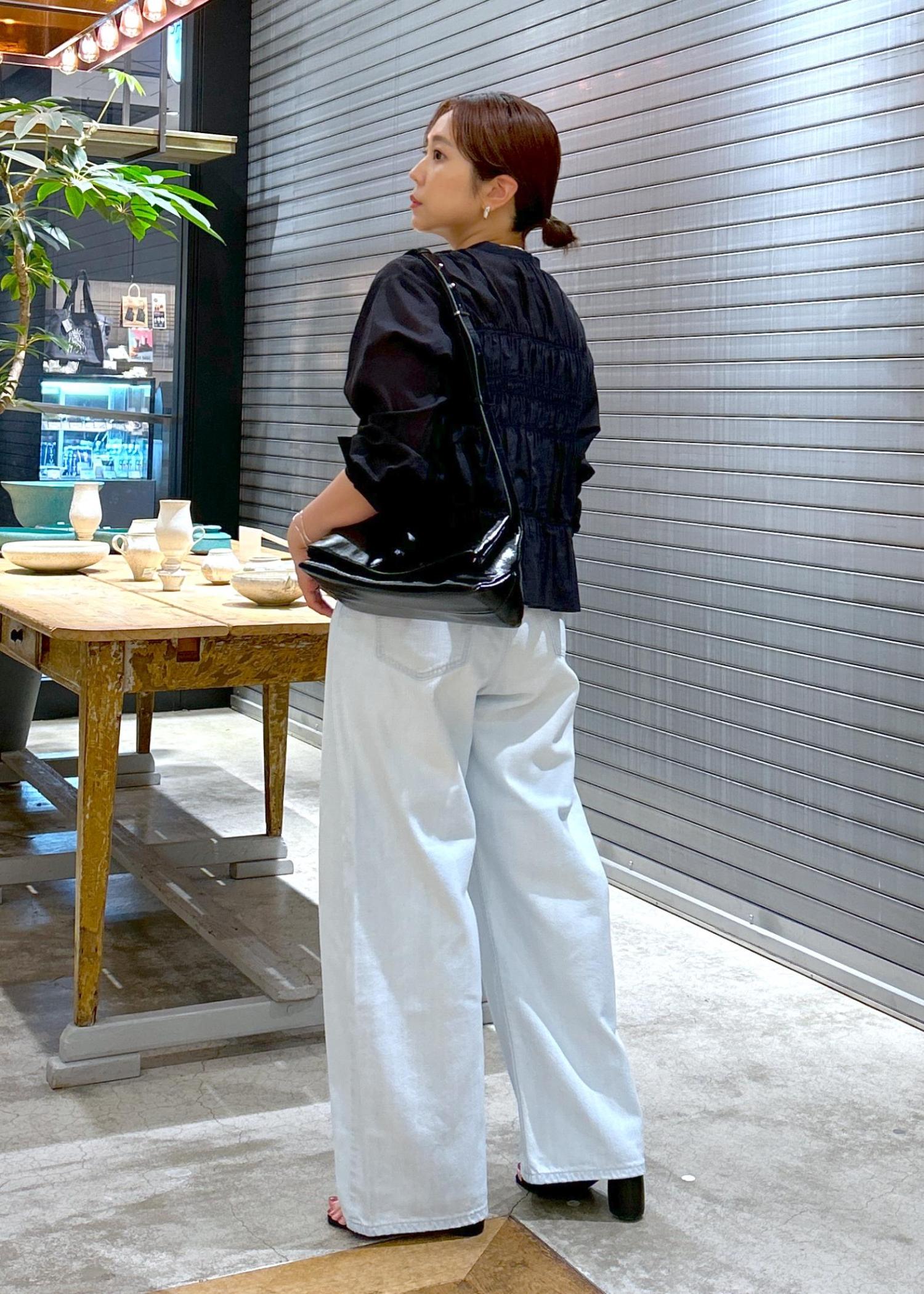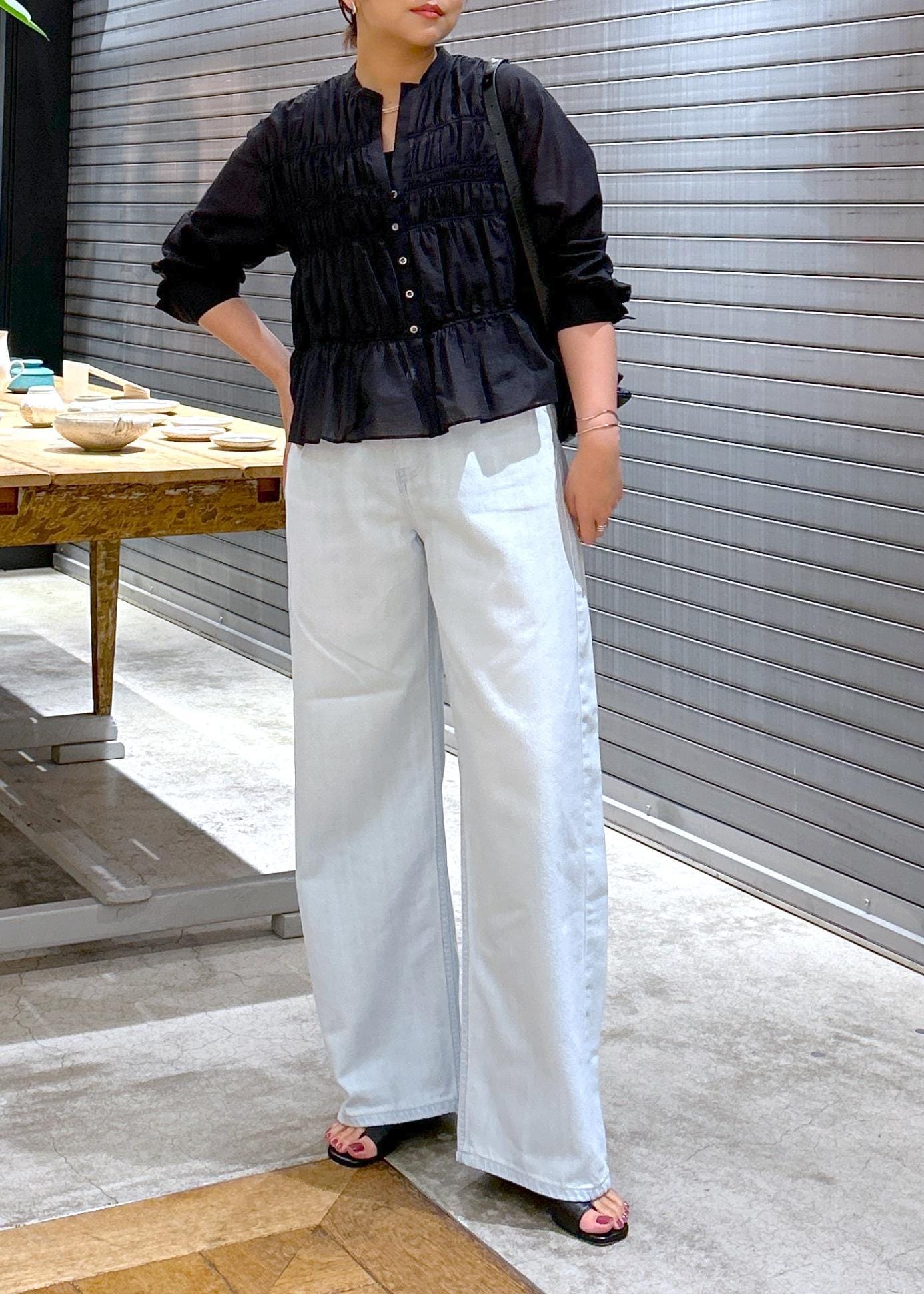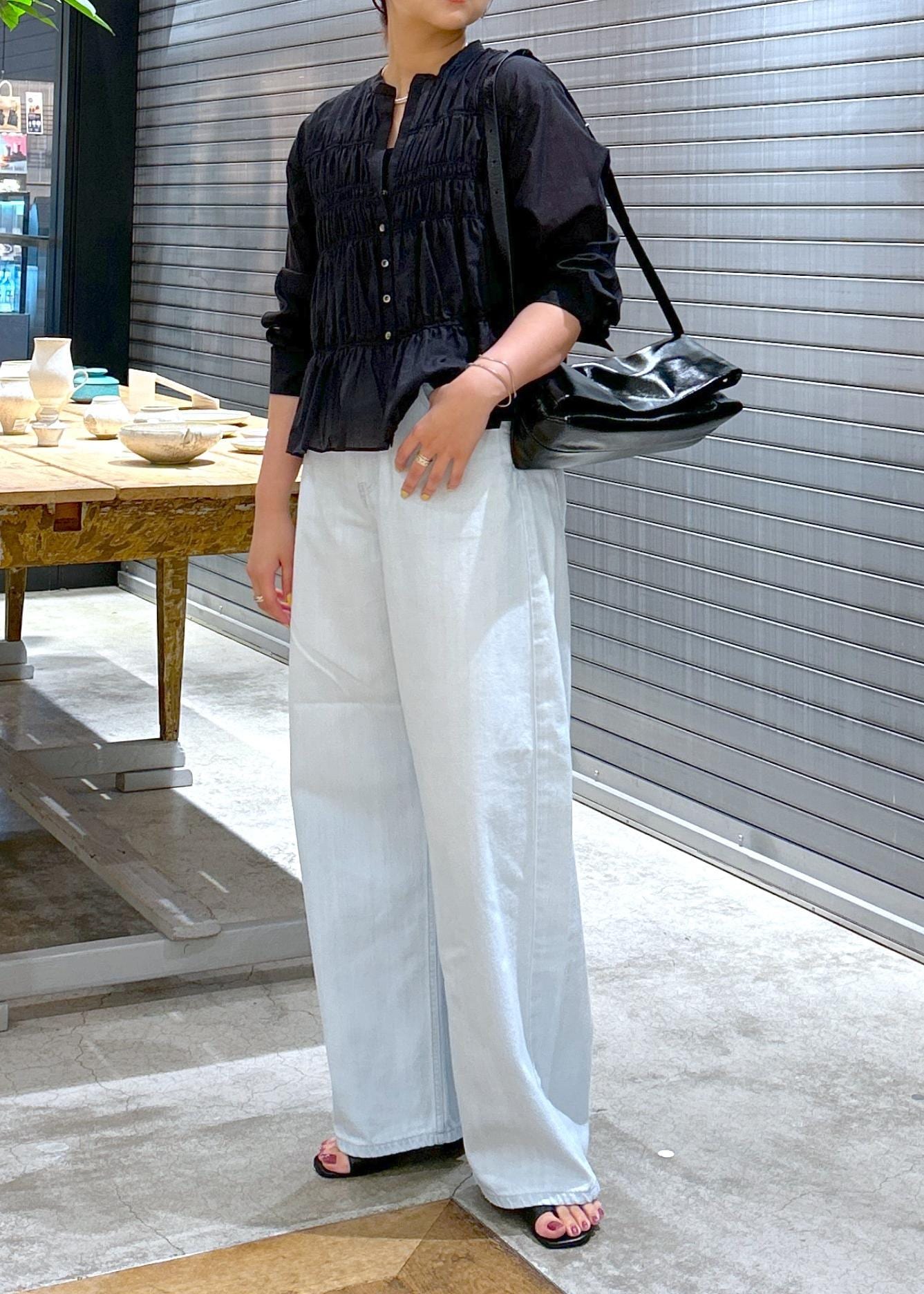 サラサラとしたコットンの素材でかなり薄手なので透け感があり、晩夏頃から着用できます。 -