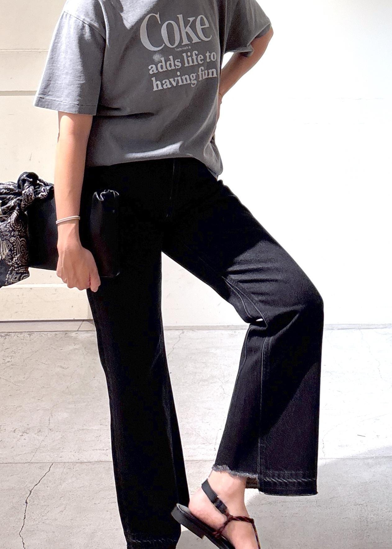 セミフレアーシルエットは、足をほっそりスッキリと見せてくれます。SALONオリジナルのデニム生地は、とても柔らかくラクな履き心地です。