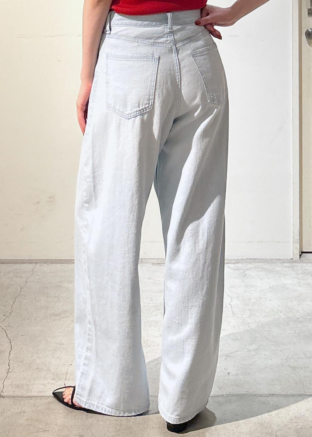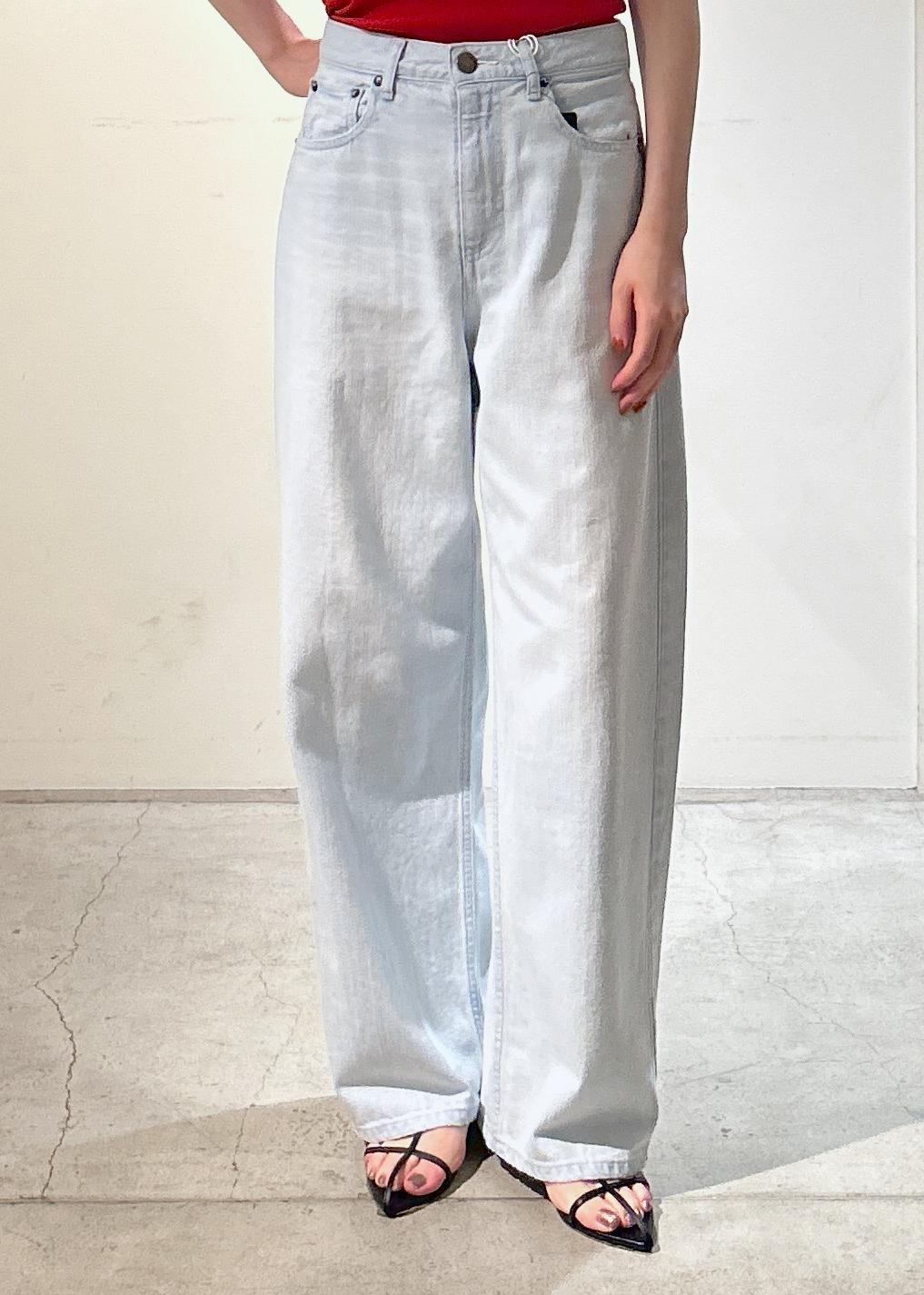 柔らかいデニムです。生地も程よい厚みで軽く履けます。淡いブルーのカラーは夏にぴったり! -