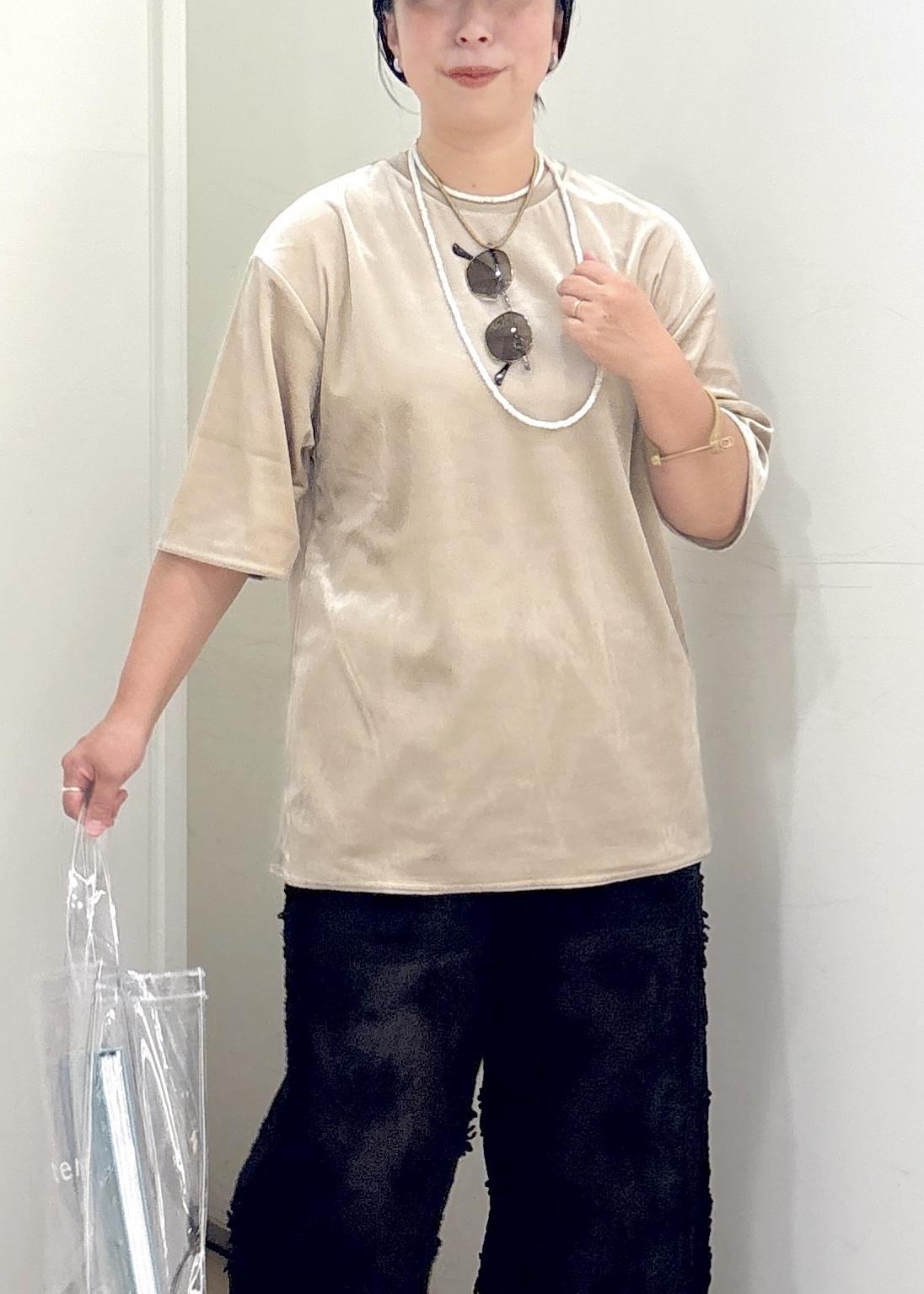 SALON adam et ropéトリアセベロアボックスTシャツ[セットアップ対応]ベージュ / F¥6,160レビュー身頃、アーム共にかなりゆったり目ですが、とろみのあるベロア素材で女性らしく楽しめる1枚です。