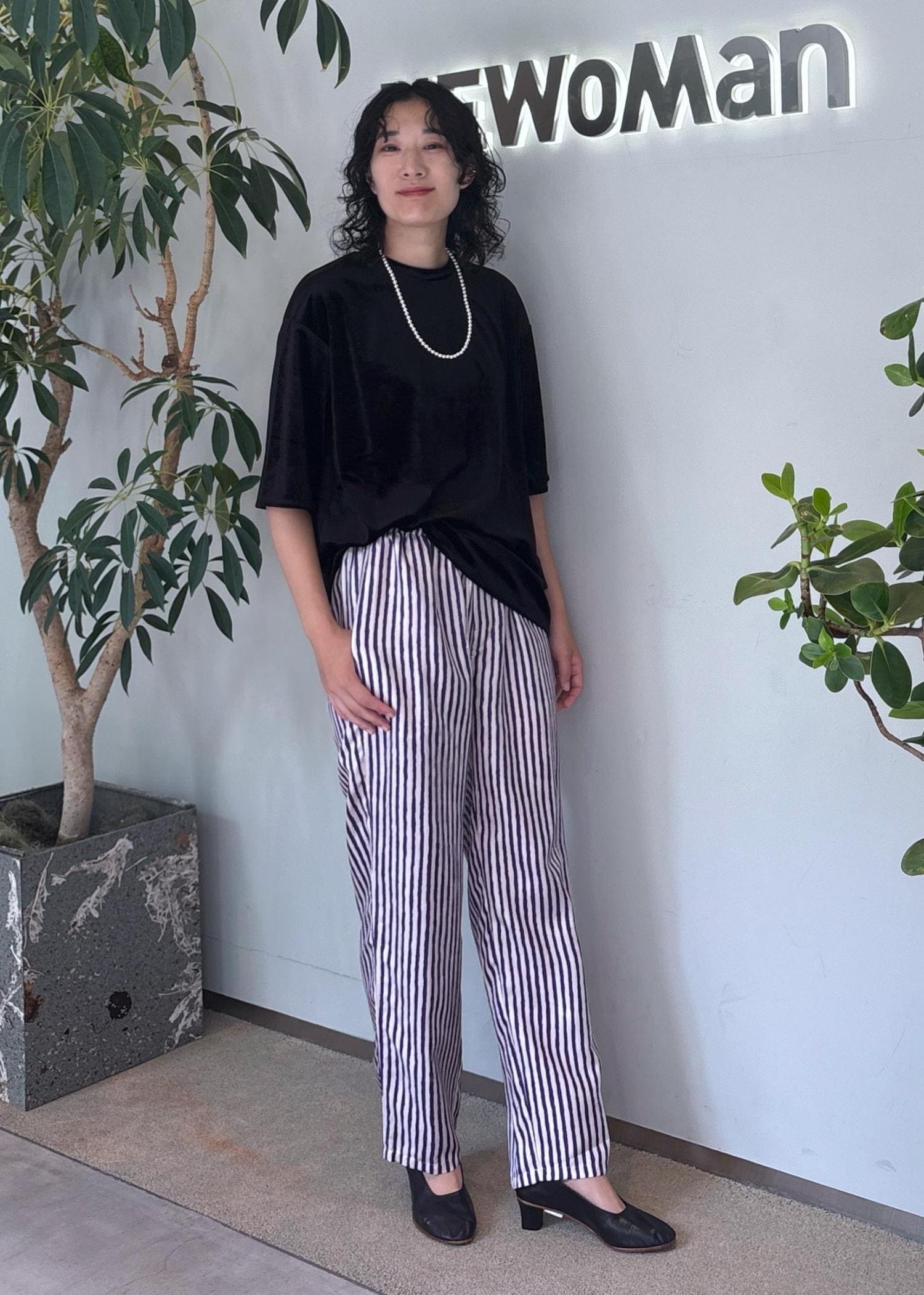 SALON adam et ropé【BANANATIME(バナナタイム)】EASY PANTS / イージーパンツピンク系 / XS¥54,450レビューさらりとしたシルクの肌触りと緩めのシルエットがとても履き心地が良いパンツです。光沢感とシンプルなデザインが大人っぽく、秋に向けてジャケット、ジャストではTシャツ一枚で決まります!
