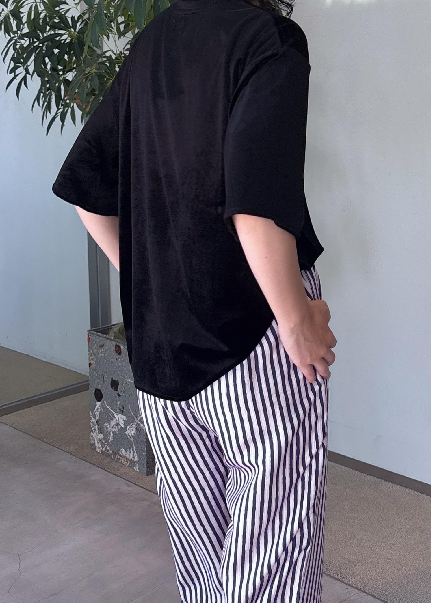 まだまだ暑い日が続きますがベロア素材で少しだけ秋を意識したコーディネート。