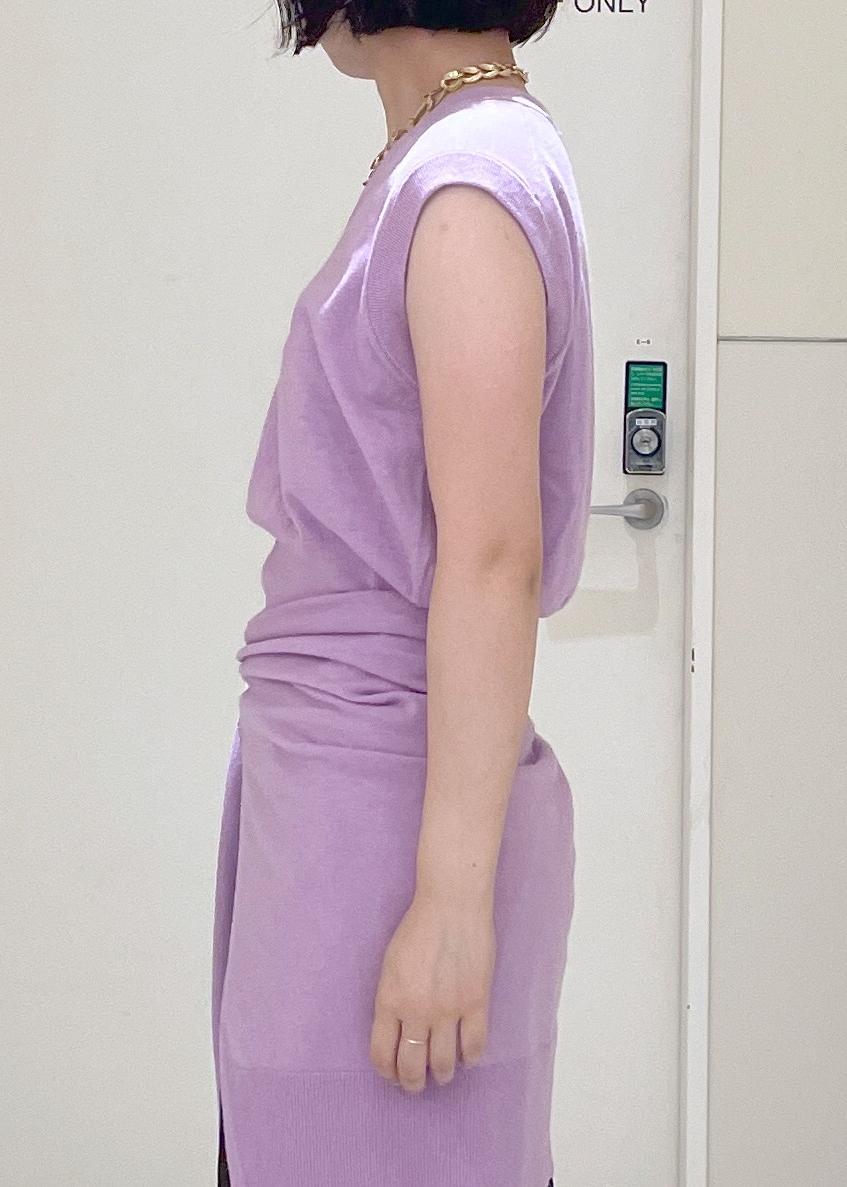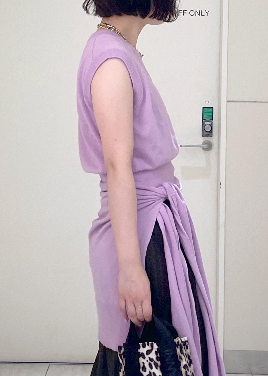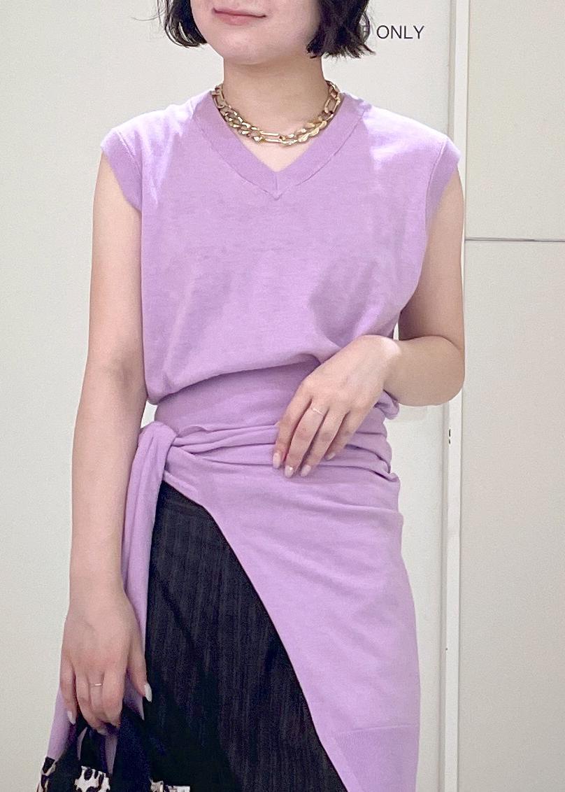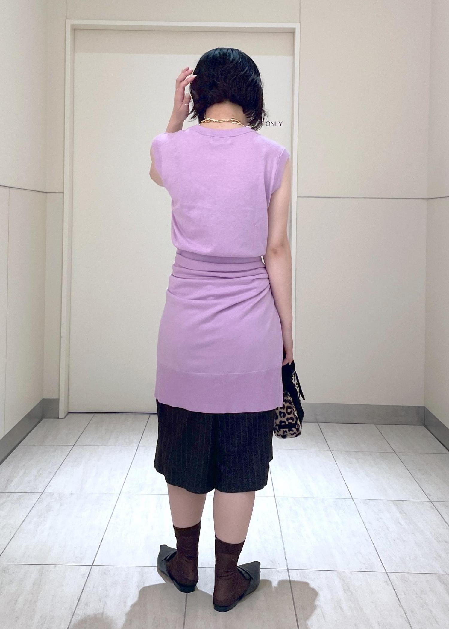 アウトレットADAM ET ROPÉ FEMMEラップストールコンビノースリーブプルオーバーラベンダー / F¥12,551レビュー柔らかなコットンのニットです。