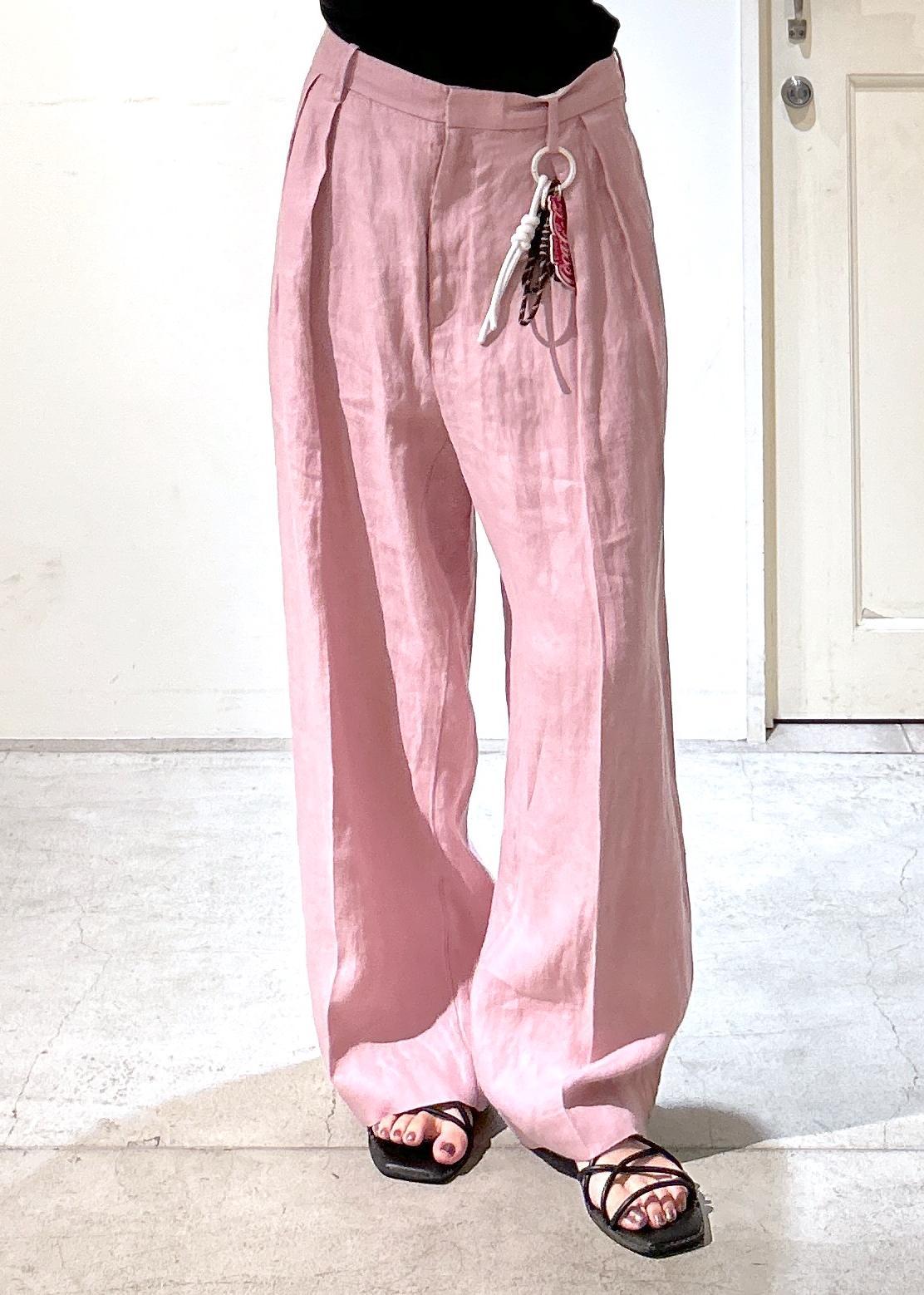 リネンを使用していて柔らかい、涼しく履けるパンツです。タックパンツなのでオンオフで履けて、一枚は持っていると便利なアイテムです! -