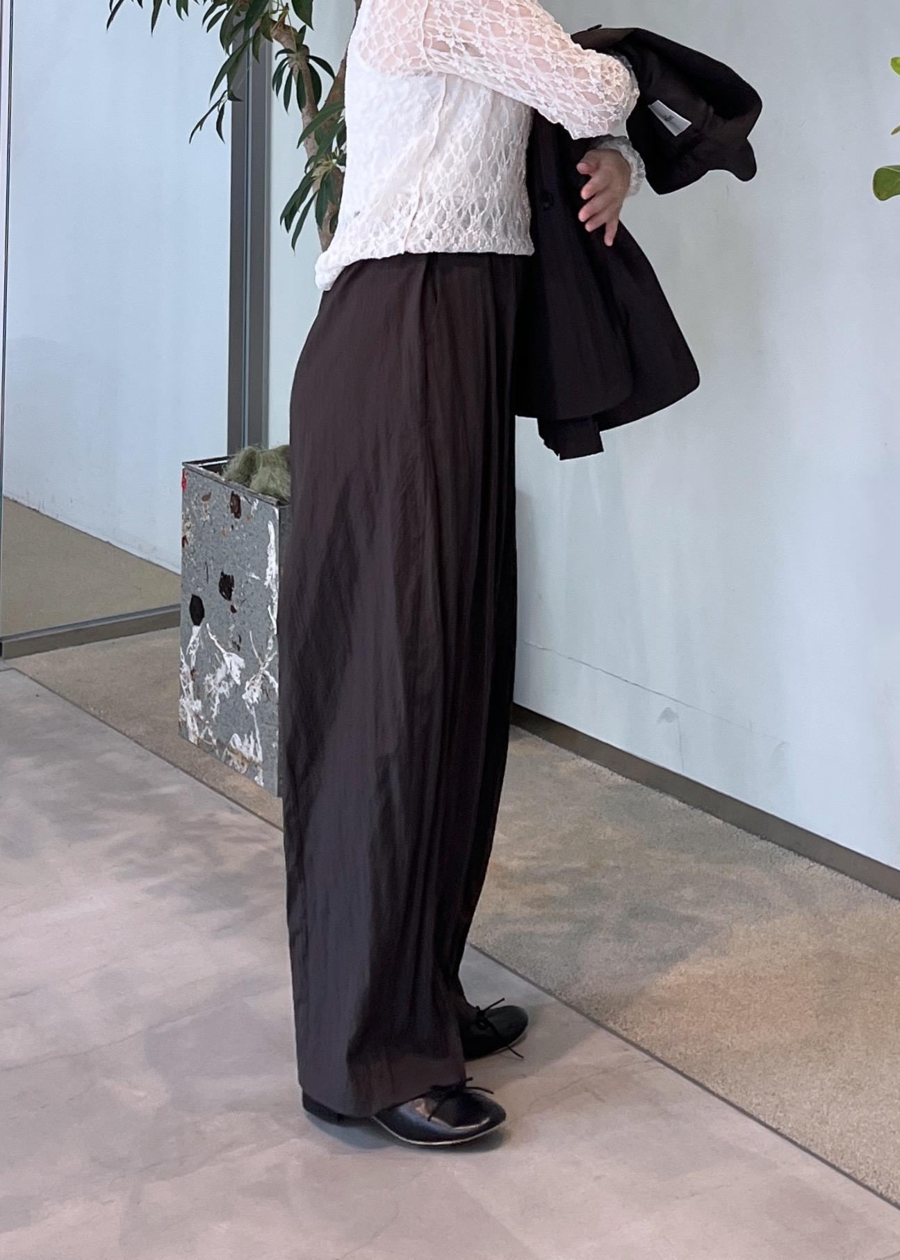 アウトレットSALON adam et ropéウールナイロンワッシャーパンツブラウン / F¥10,120レビューウエストで一折りすると履けるくらいの丈感。