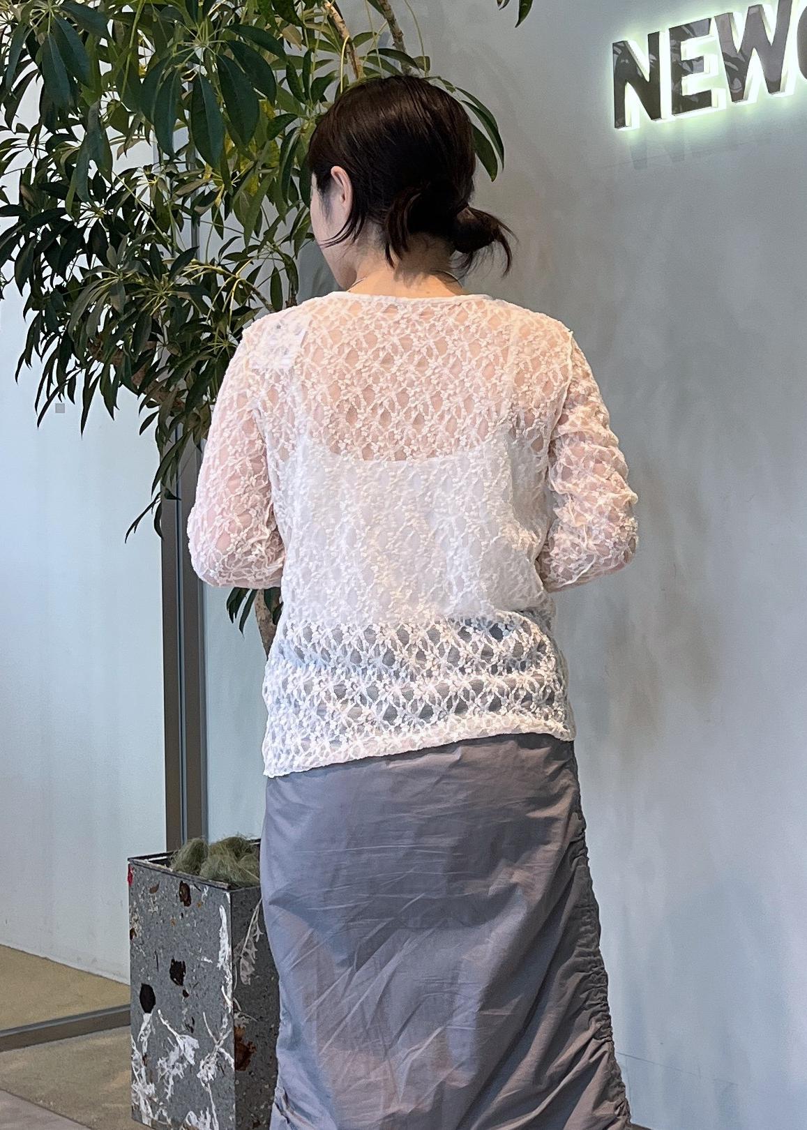 SALON adam et ropéレースシアートップス[ストレッチ]オフホワイト / F¥14,300レビュー優しいフィット感。かなり伸縮性があるのでキツさはないです。レース地も比較的丈夫に作られており、鋭利なもので引っかけない限り、ダメージになりづらいです。