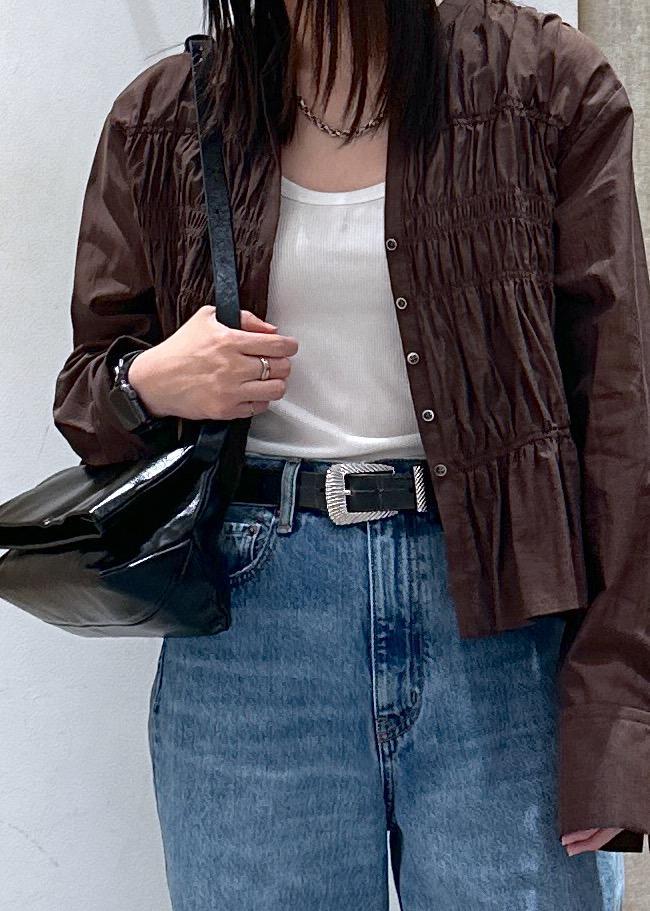 SALON adam et ropéShuttlenotesワッシャーローンシャーリングブラウス[洗える]ブラウン / F¥20,900レビューコットン素材で柔らかく着心地がいいです。