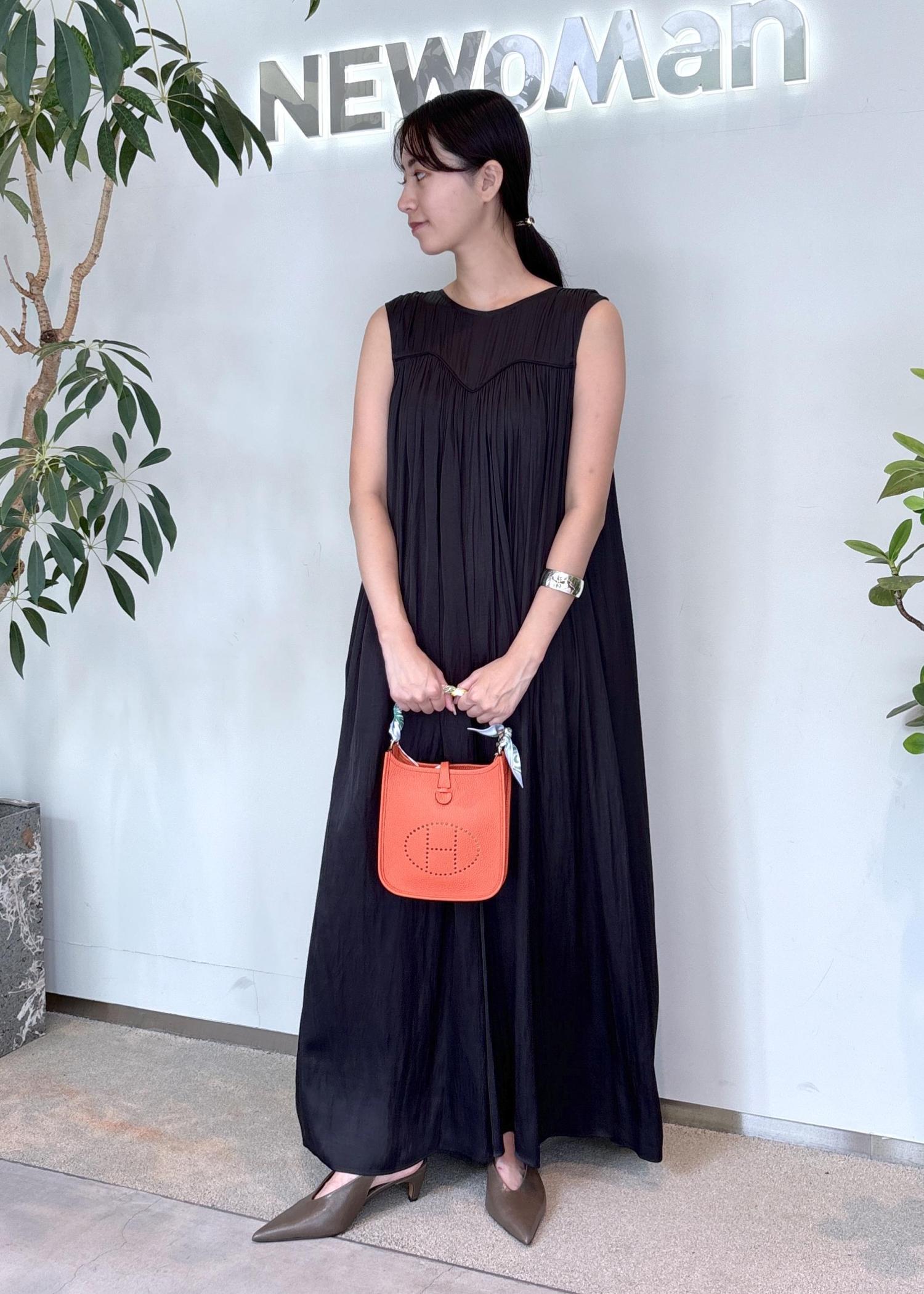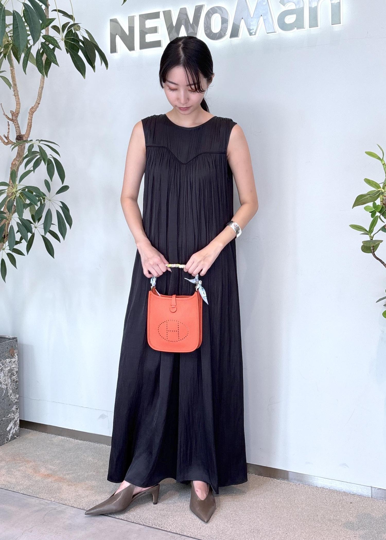 アクセントには鮮やかなオレンジのバッグを選び、夏らしい遊び心をプラス➕