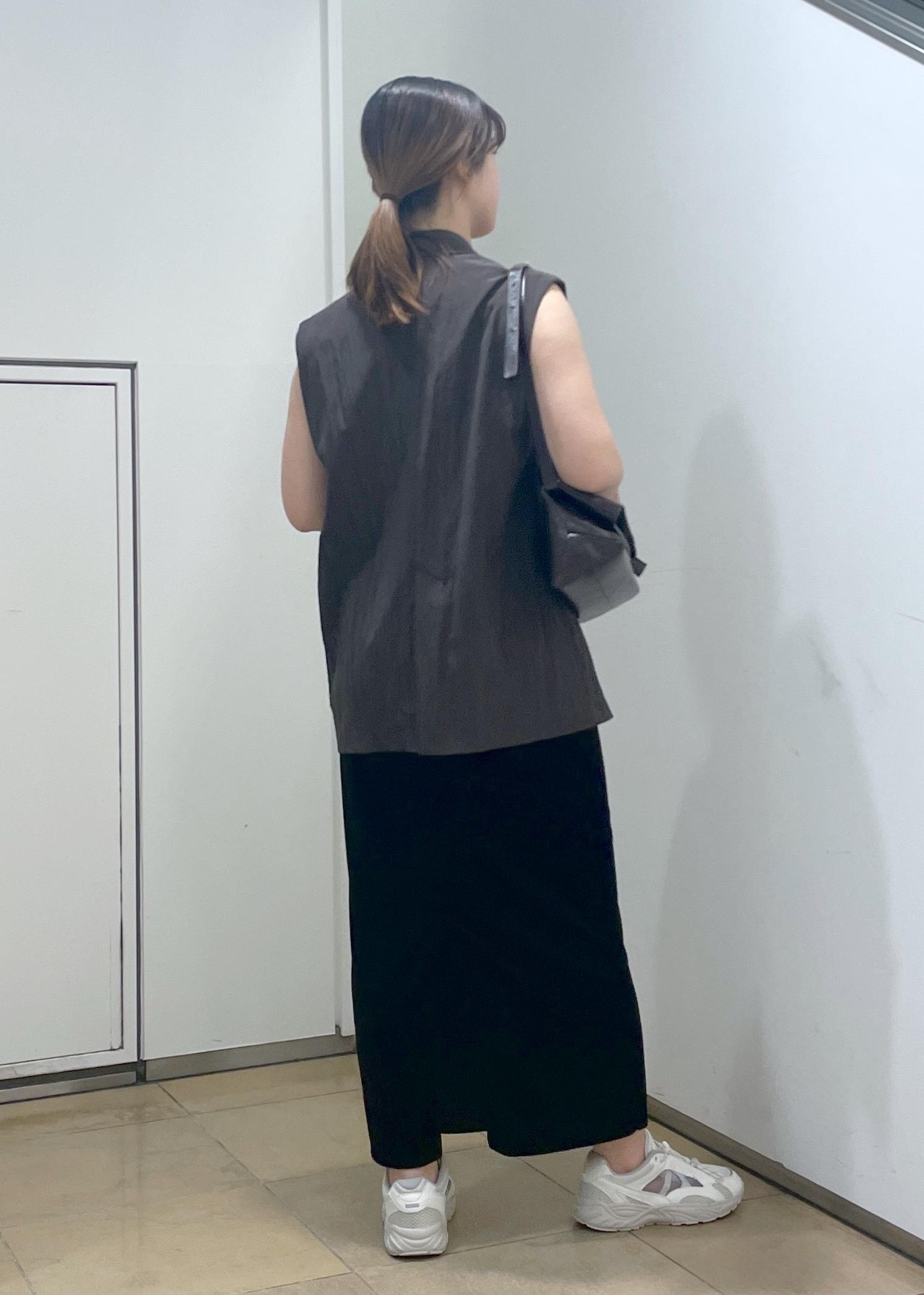 ジレとベロアのスカートで大人の綺麗めコーデを組みました。