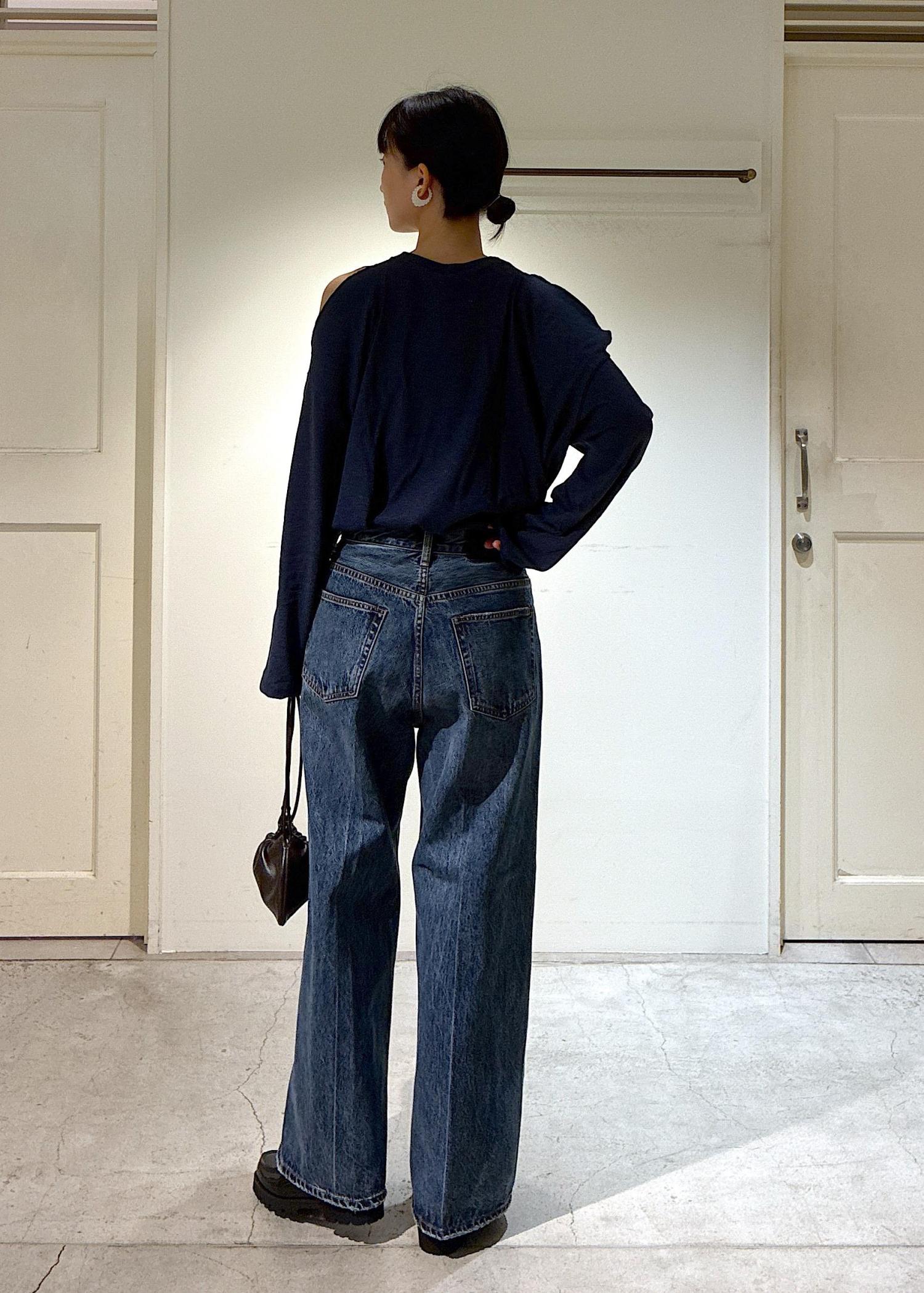 BaserangeのスリットロンTとオリジナルのバギーデニムを合わせました。