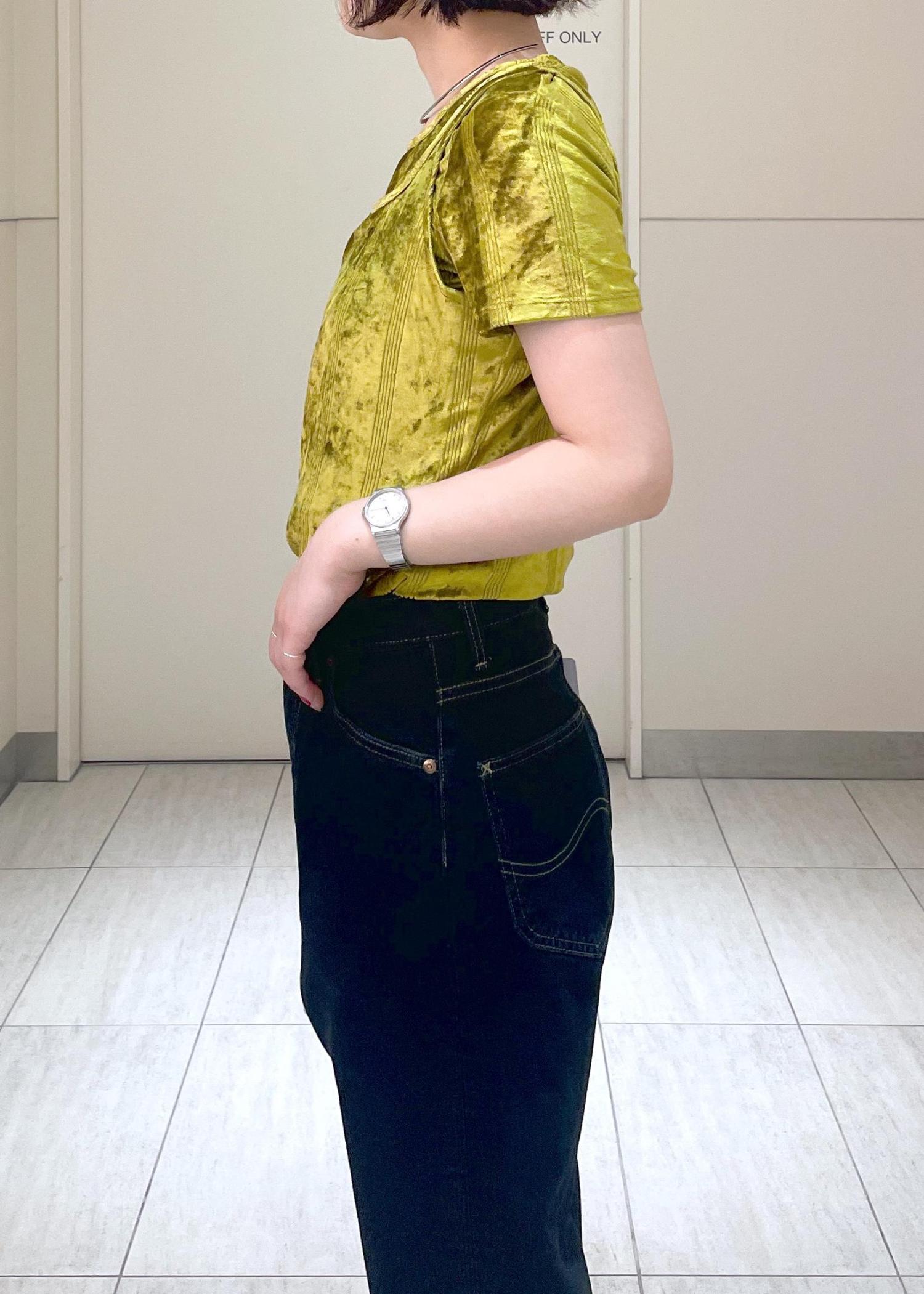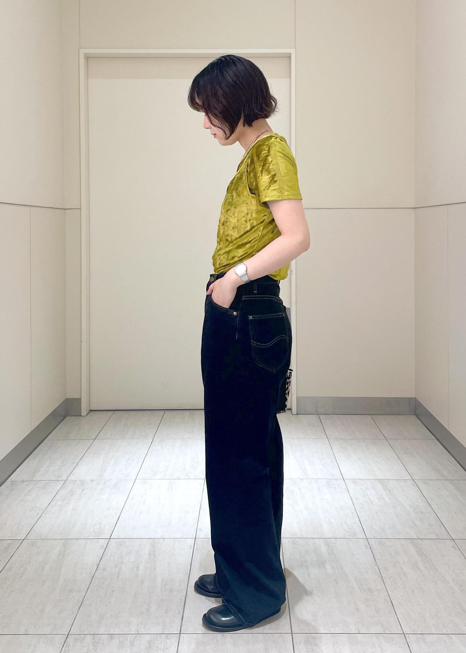 細身シルエットでスタイルアップにもなるこちらのデニムは柔らかな生地なので履き心地も抜群です。しっかり丈があるので高身長の方にもおすすめですか、あえてずるっとした丈で履くのも◎
