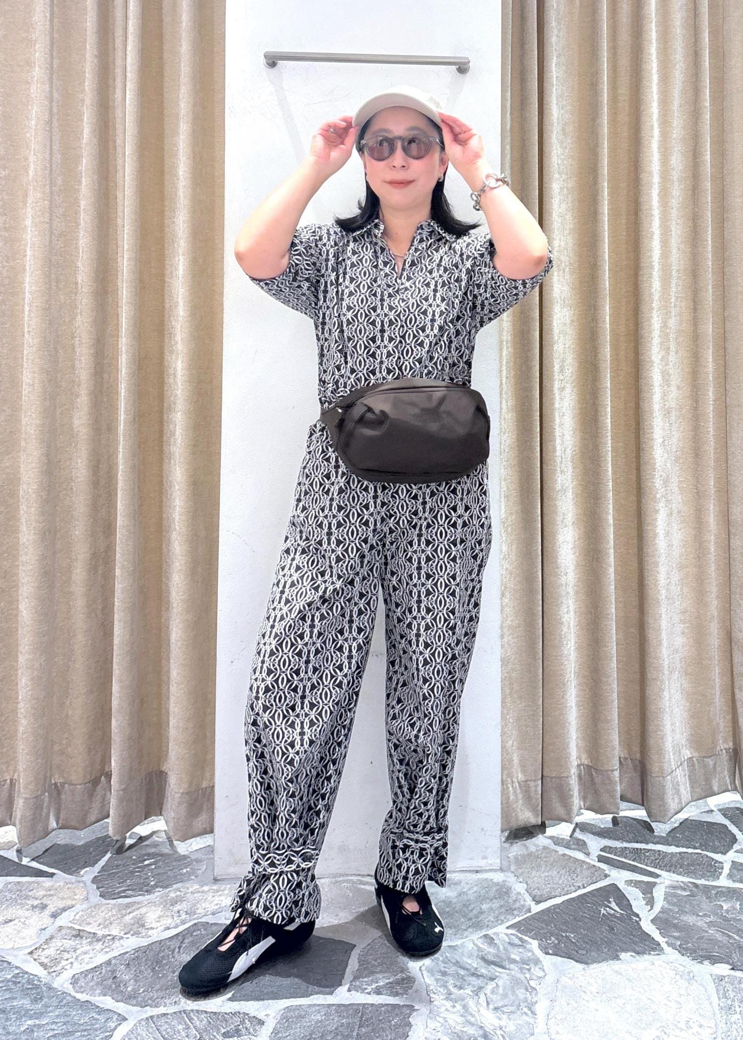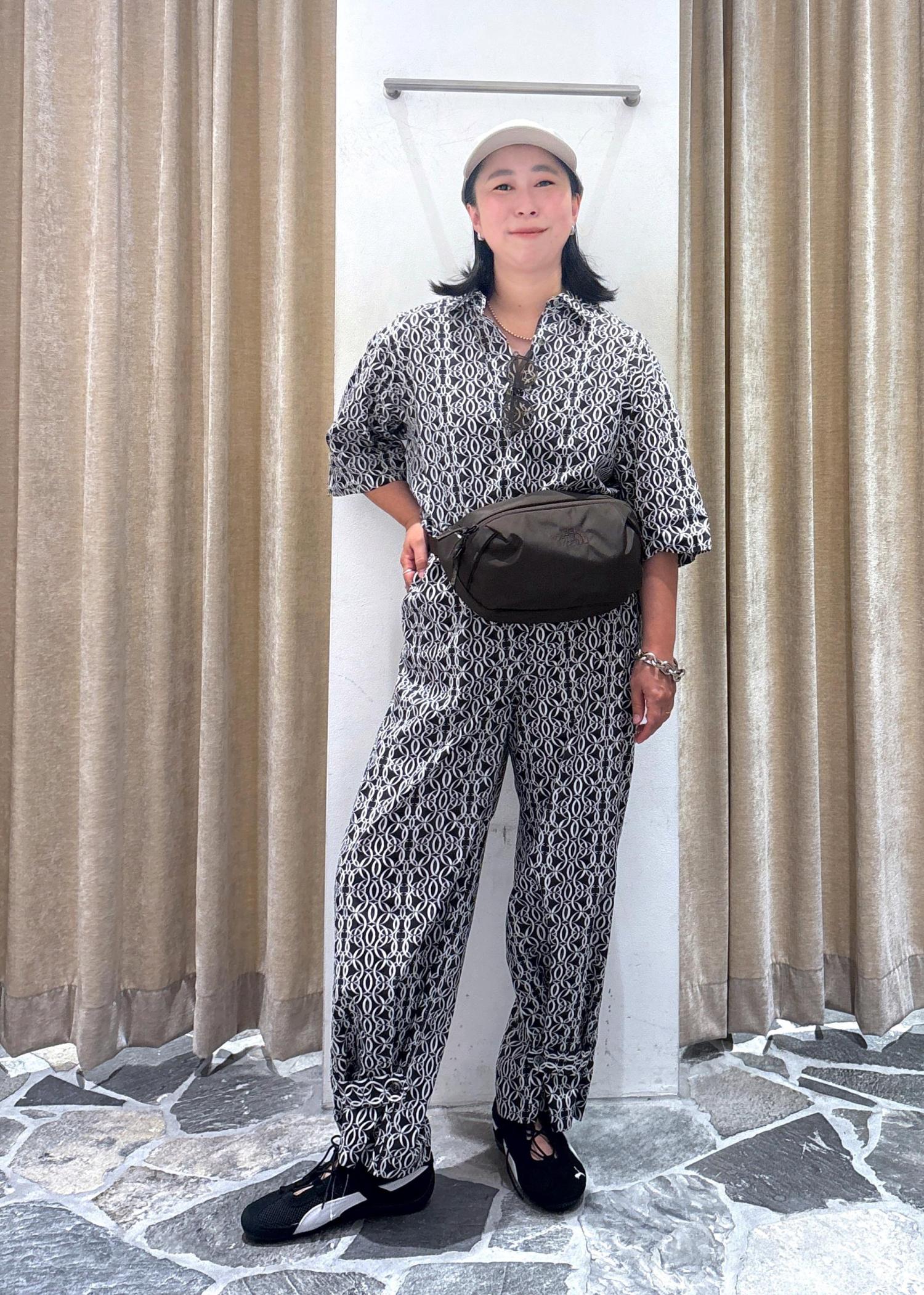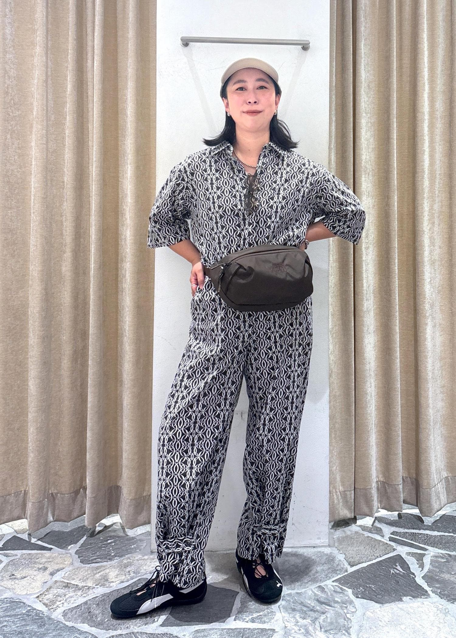 身頃はかなりゆったりめで、ウエスト内側のドロストでしっかりと着やシルエットの調整が可能。