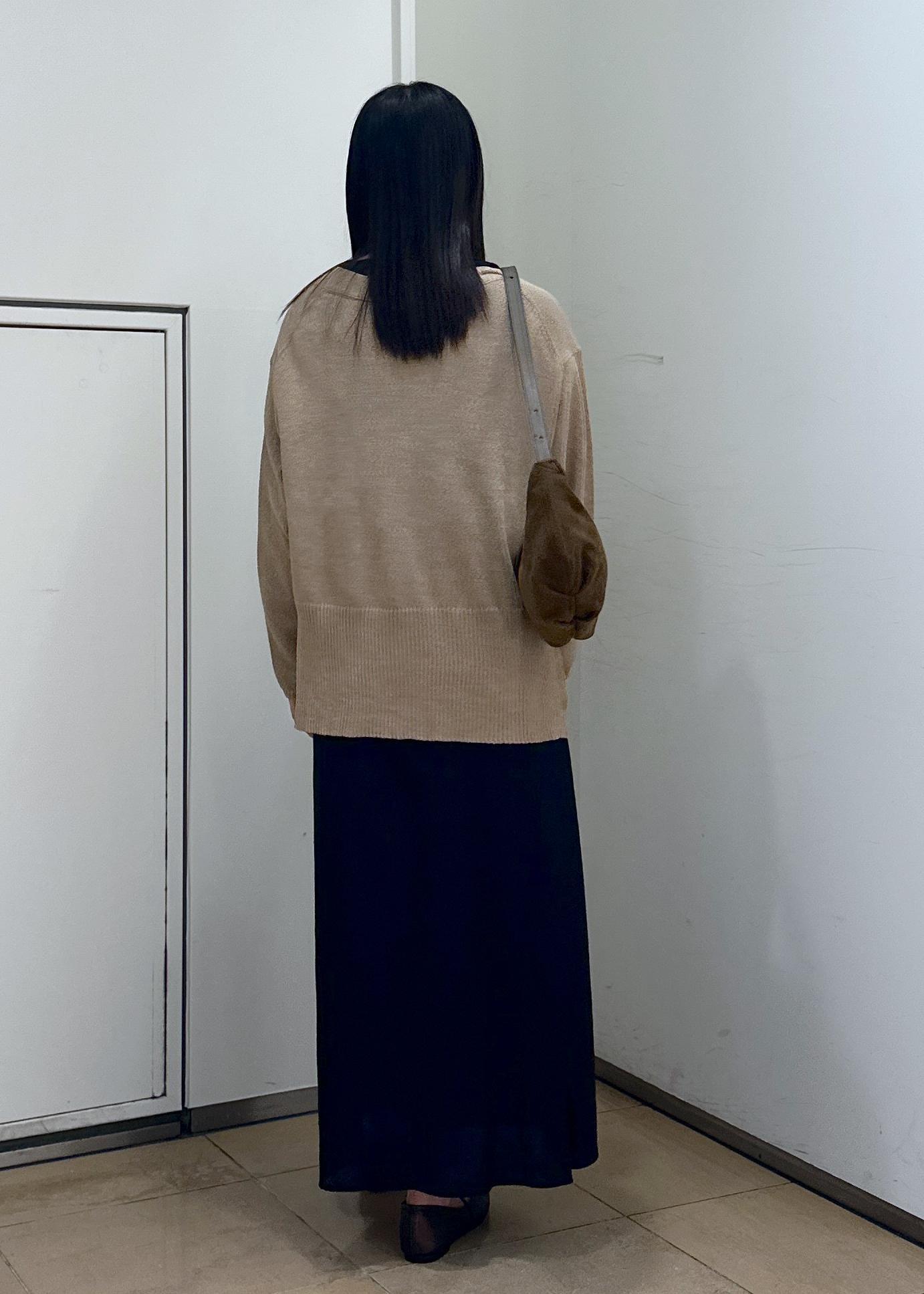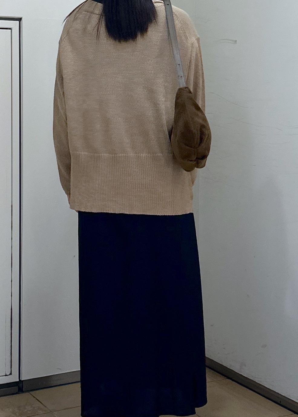 SALON adam et ropéペーパーヤーンVネックカーディガン[手洗い可/和紙素材]ベージュ / F¥14,960レビュー後が長めでお尻が隠れる長さです。