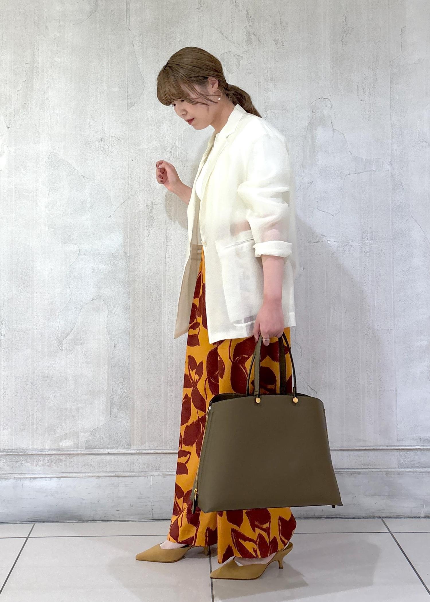 オフィスカジュアルなスタイリングに合うぴったりな、エポールのバッグ。