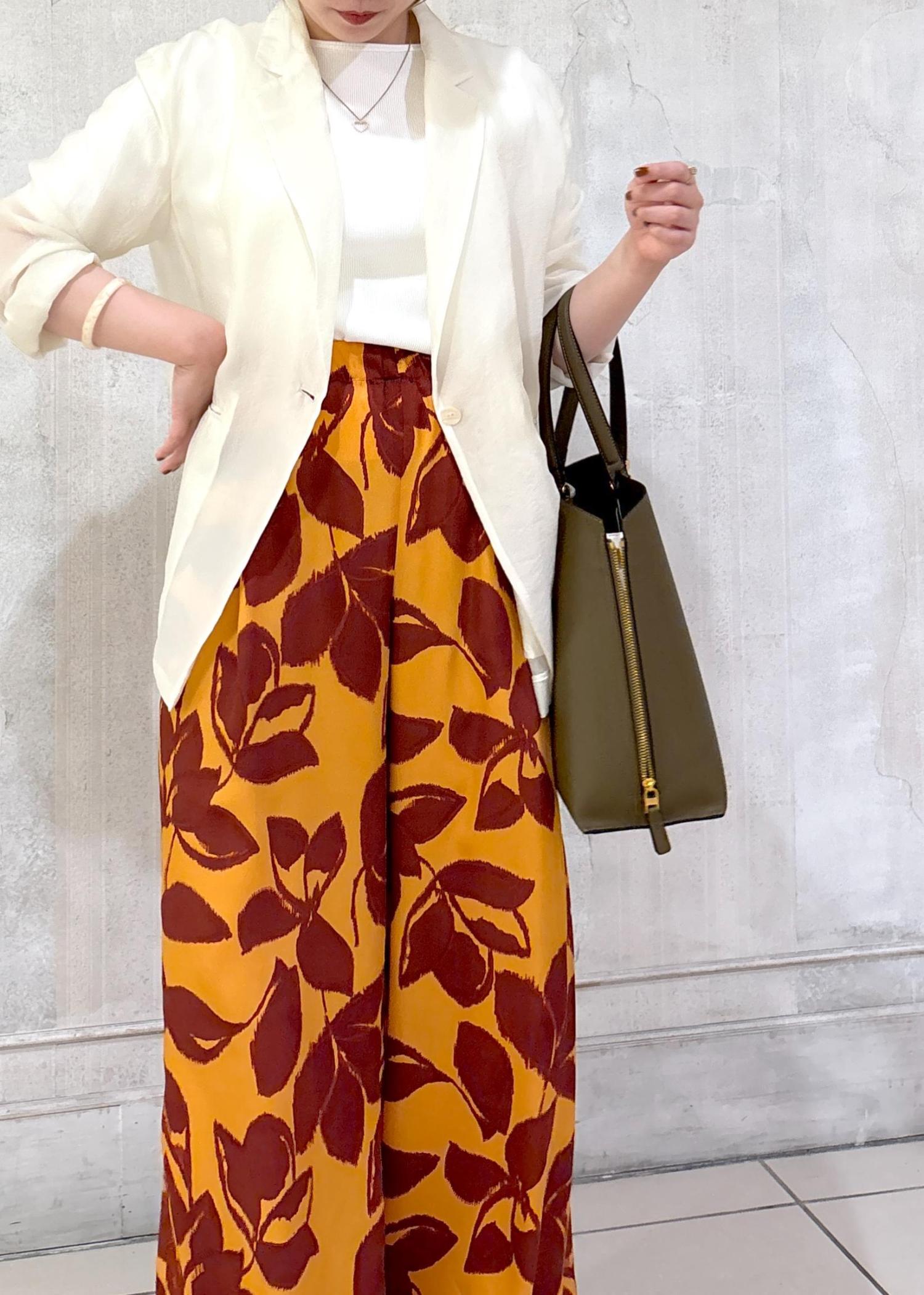 アウトレットROPÉDEVEAUXジオメトリックフラワーイージーワイドパンツオレンジ / 38¥13,750レビューつるっとした素材感で、ペチコートが付いているので透け感も気になりません。肌離れするのでとても快適に着用できます。38を着用しておりますが、身長160センチで36のサイズがおすすめです。