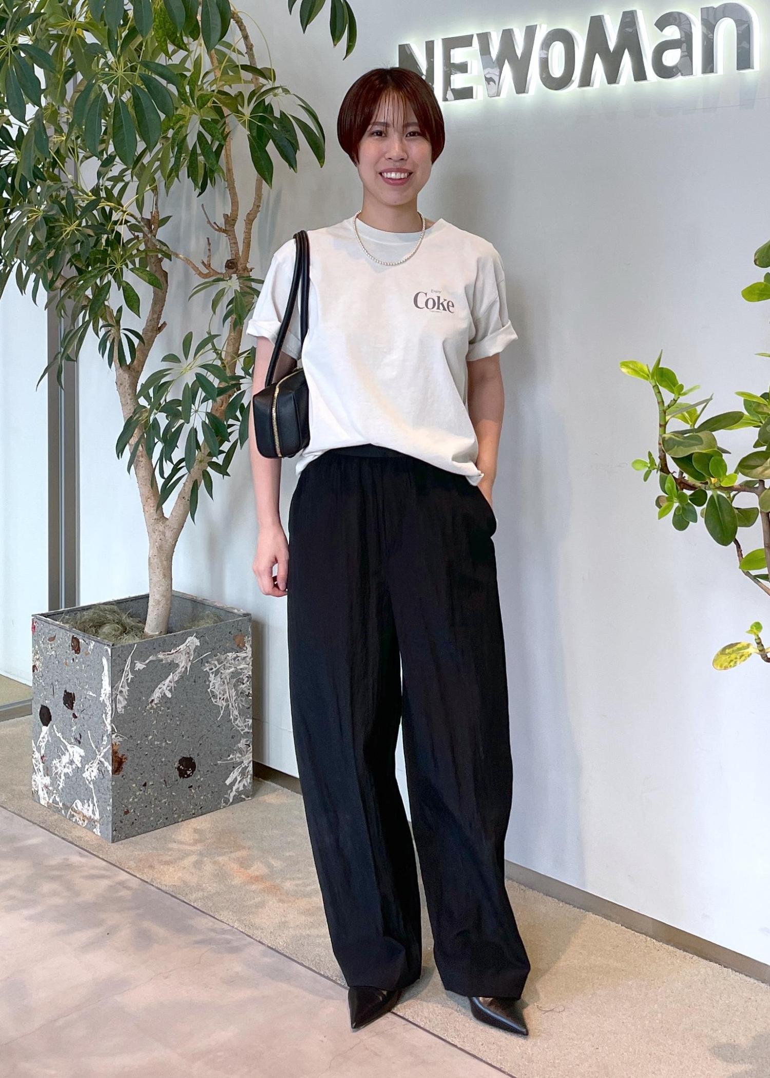 Coca-Cola Tシャツに、ゆるっとリラクシーなパンツを合わせた、秋のカジュアルコーデ。