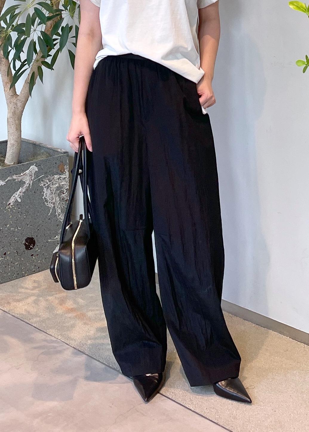 アウトレットSALON adam et ropéウールナイロンワッシャーパンツブラック / F¥10,120レビューウエストゴムでイージーな履き心地。