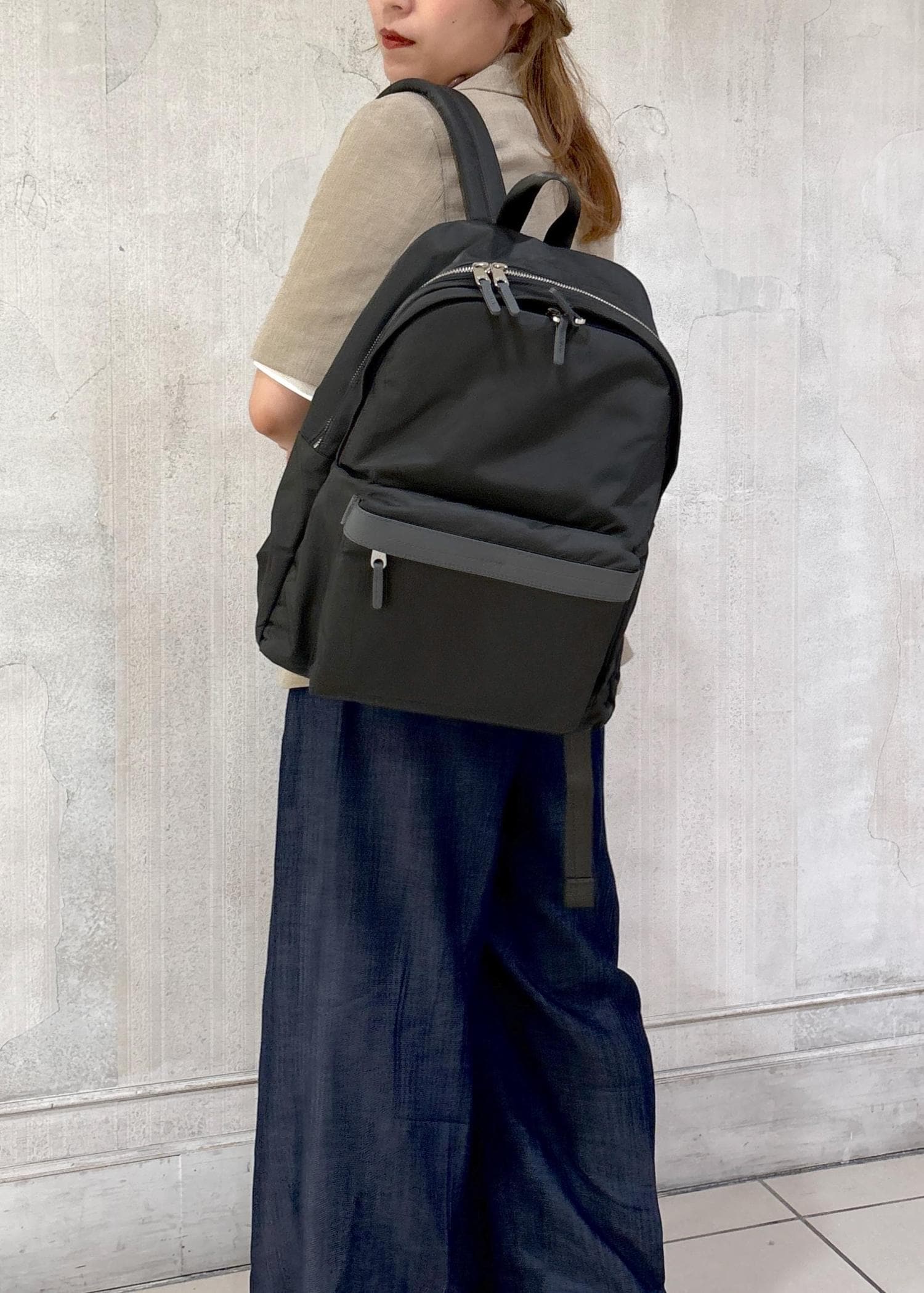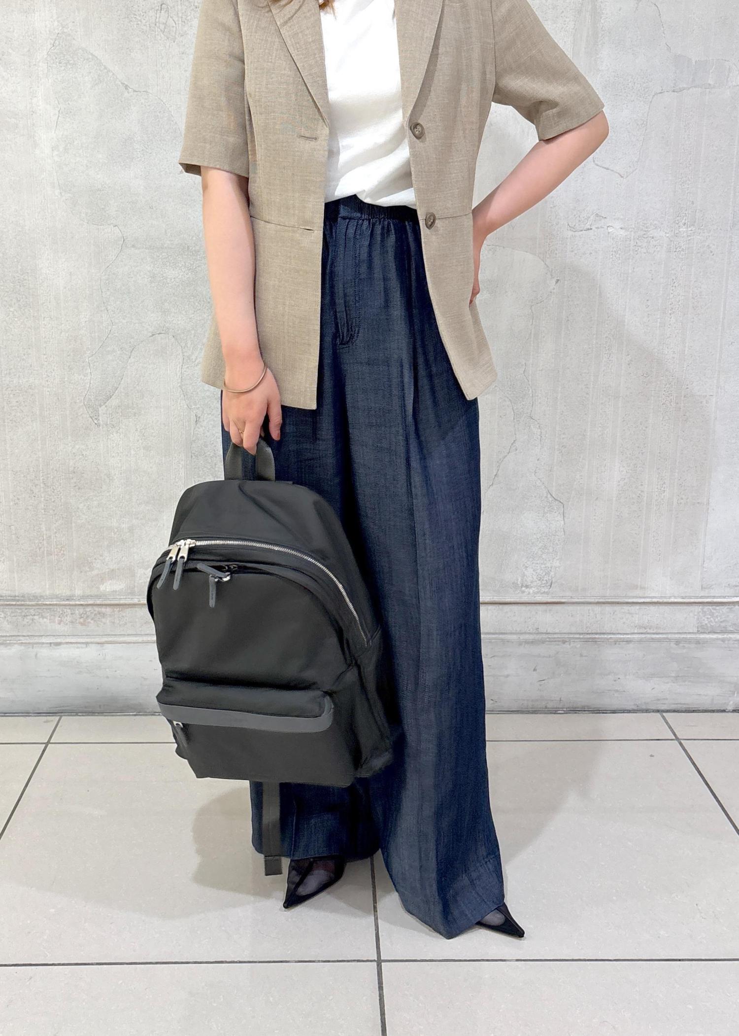 とにかく軽くてスマートなリュックで、きちんとしたスタイリングにも、カジュアルなスタイリングにもぴったりとハマるデザインとなります。