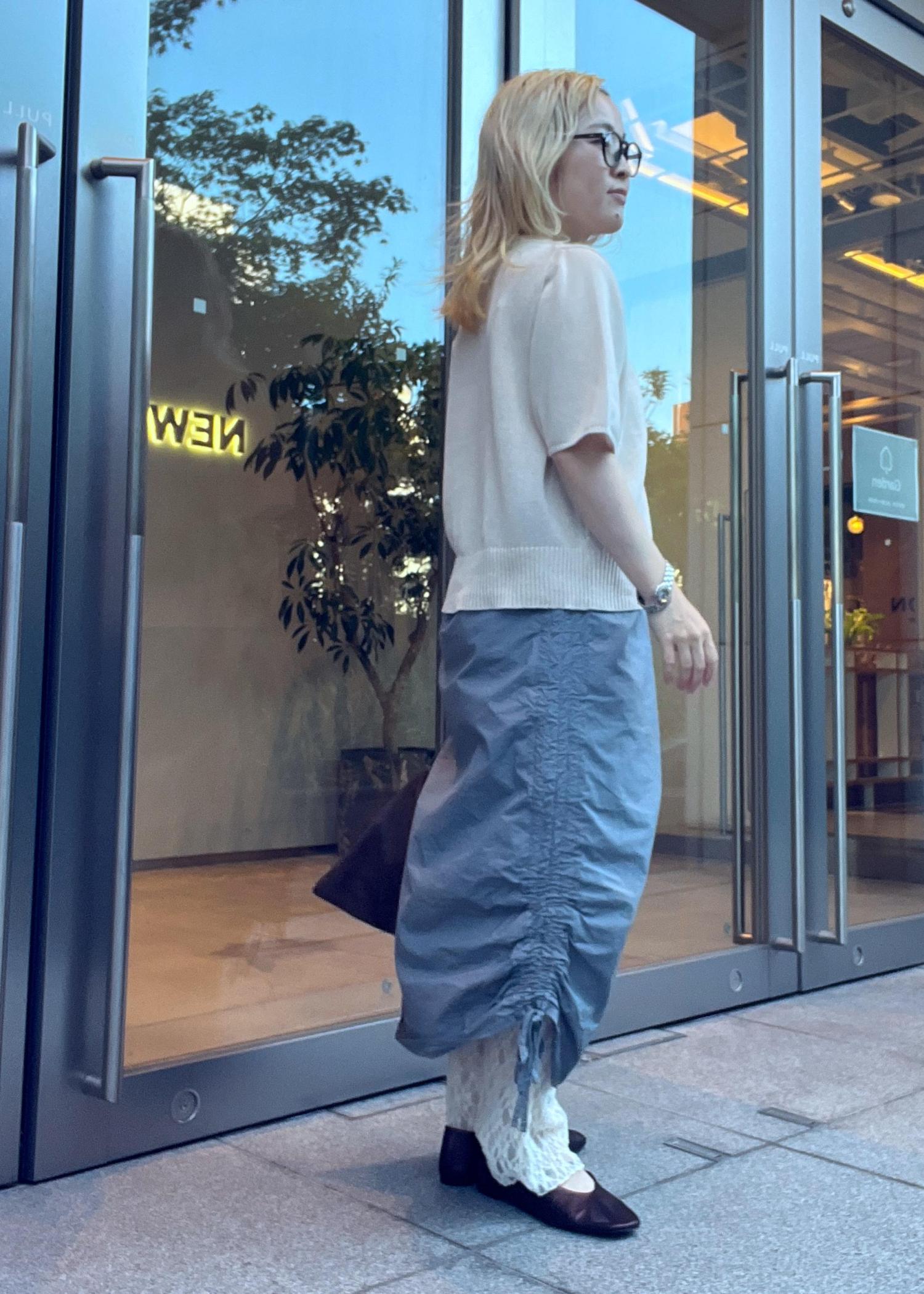 SALON adam et ropéシアーレースレギンス[ストレッチ]オフホワイト / F¥15,400レビュー丈は長過ぎず152cmの私でも底のある靴であればちょうど良いです。足にフィットする着用感です。