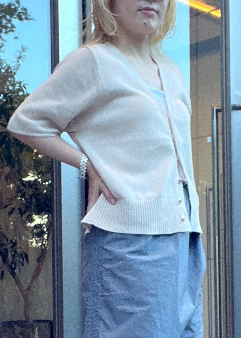 SALON adam et ropéドライコットンハーフスリーブメタルボタンカーディガンオフホワイト / F¥6,600レビュー厚手ながらドライな質感でサラッとしているので、酷暑の日にも◎。