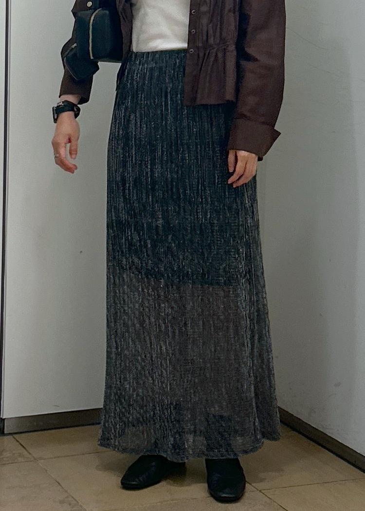 SALON adam et ropéシアーラメスカート[ストレッチ]シルバー / F¥7,920レビューウエストはゴムなので腰回りは楽。