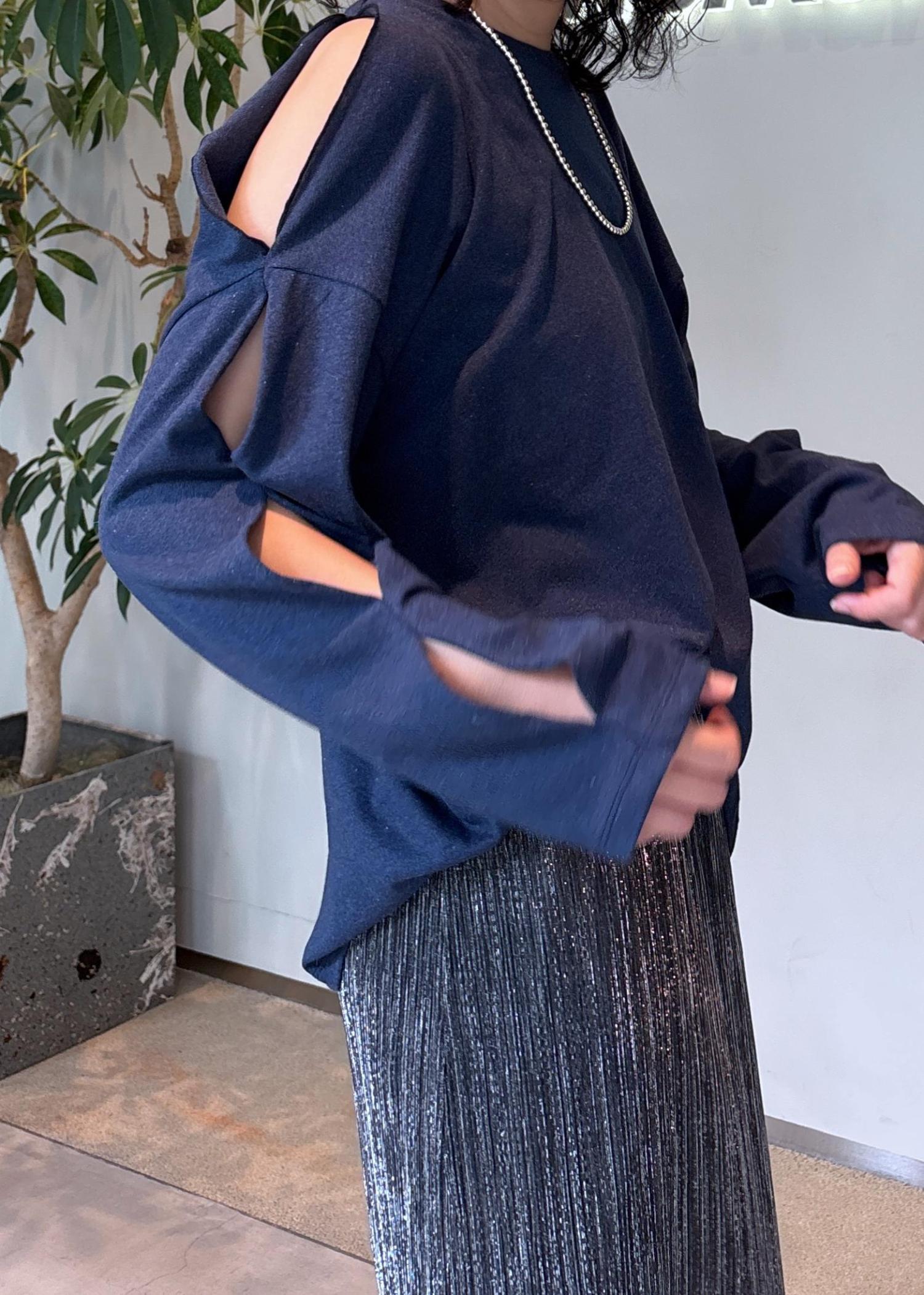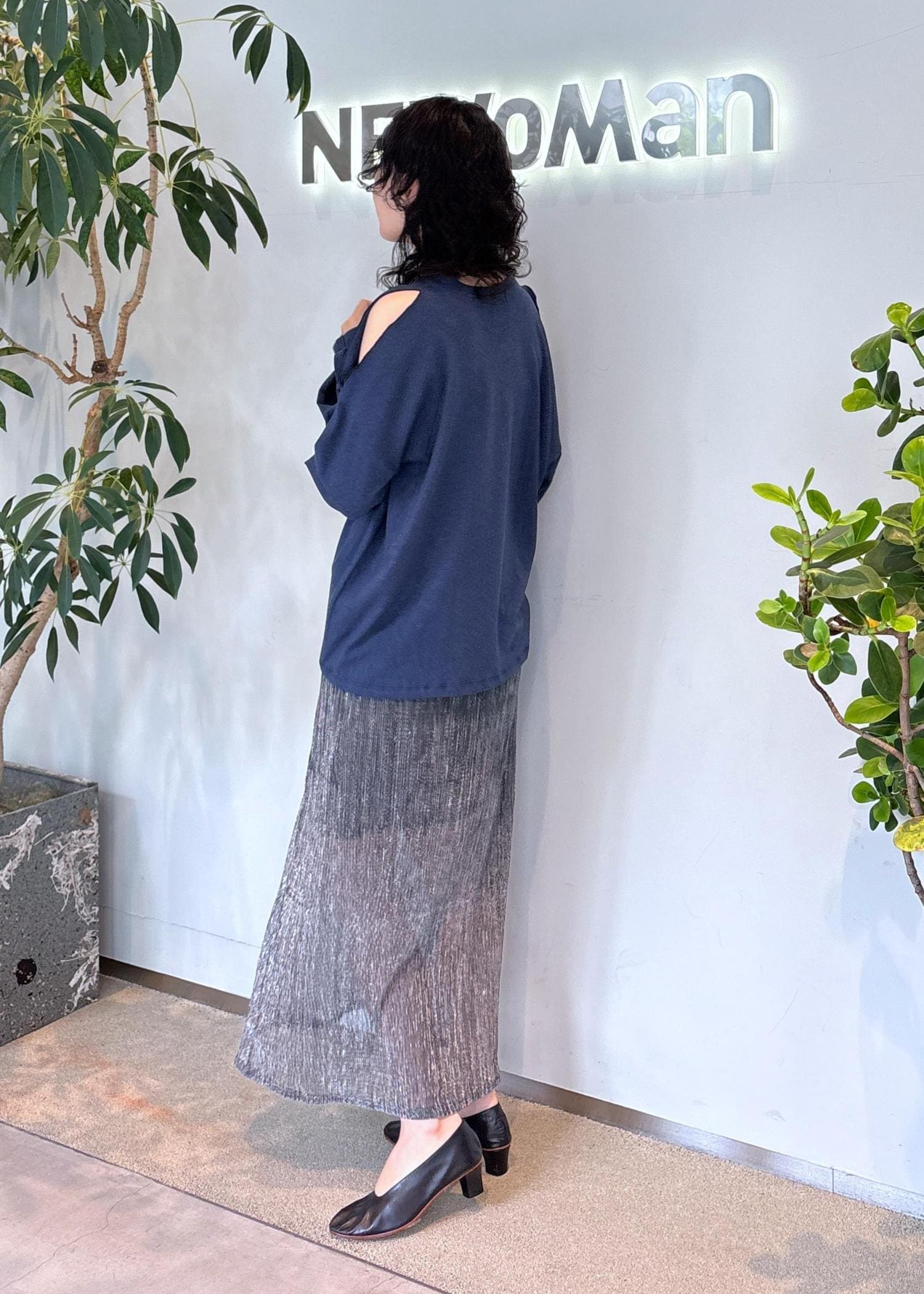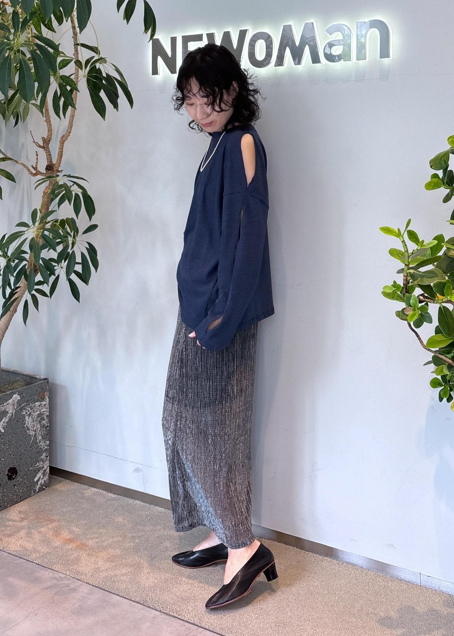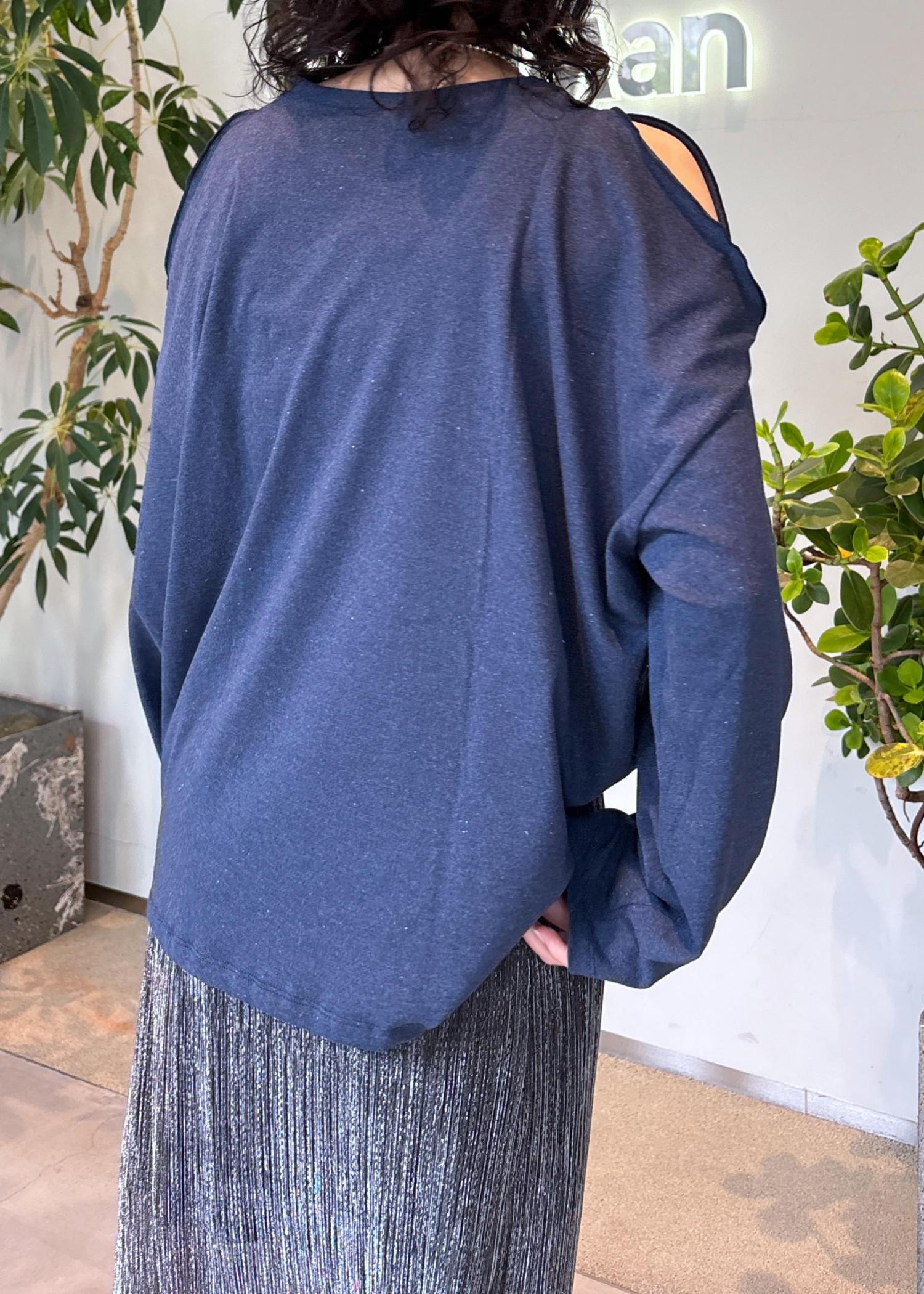 ゆったりシルエットで楽に着用出来ますが、肩部分のスリットが程よい肌見せで女性らしいヘルシーさあり!